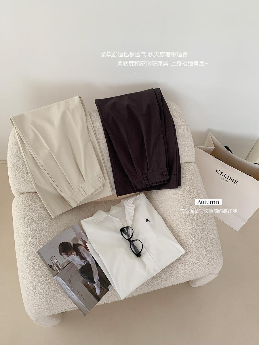 2025 Nuevo Estilo Coreano Suelto Simple Adelgazante Pantalones Casuales para Mujer Suelto Estilo Perezoso Pantalones de Pierna Ancha Pantalones de Pierna Recta Pantalones Largos para Mujer