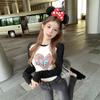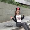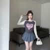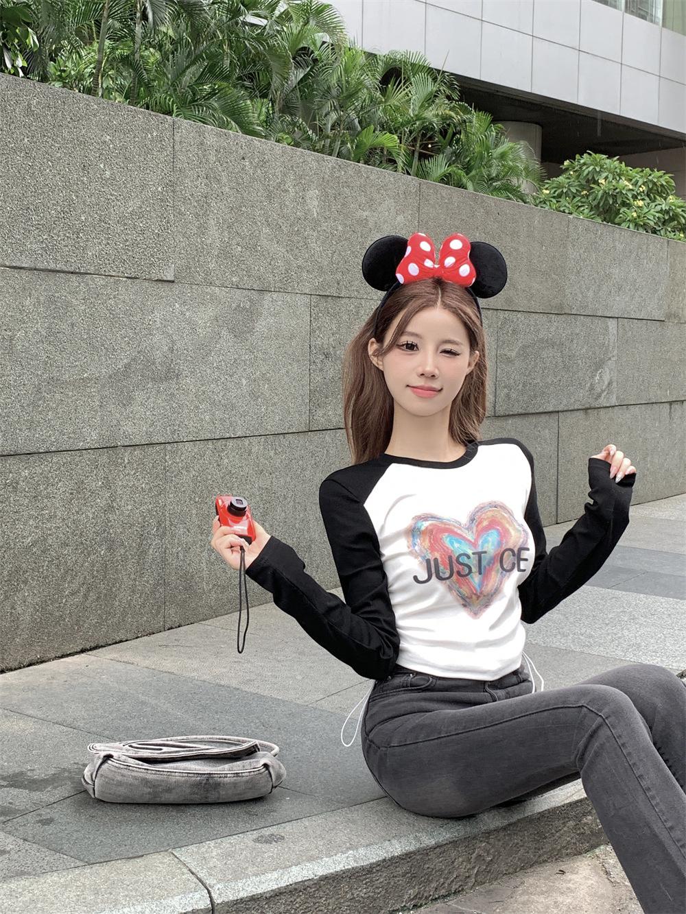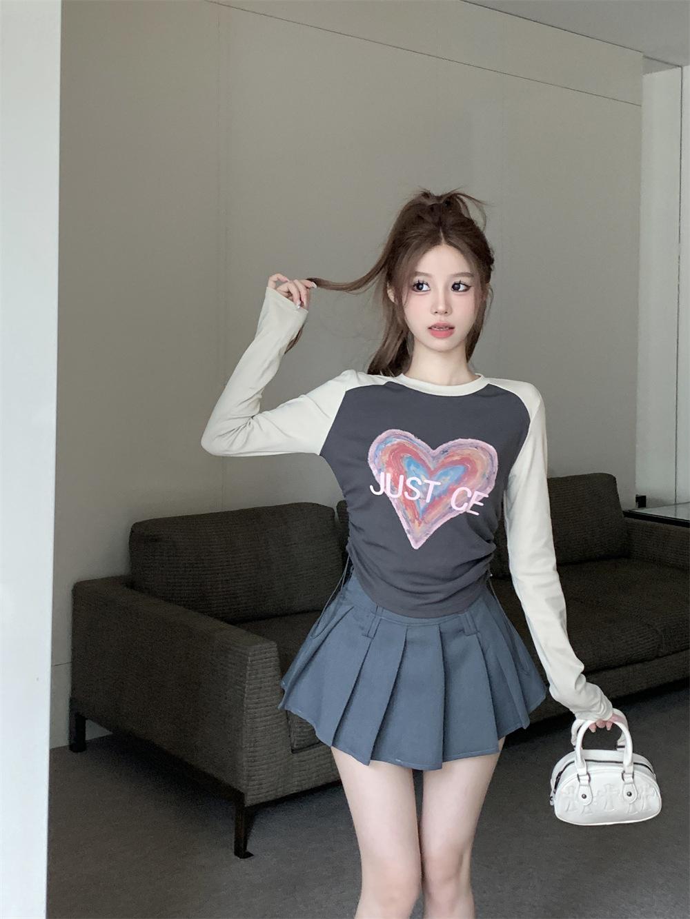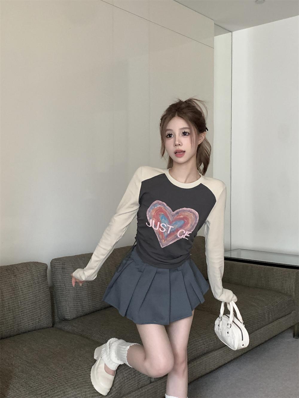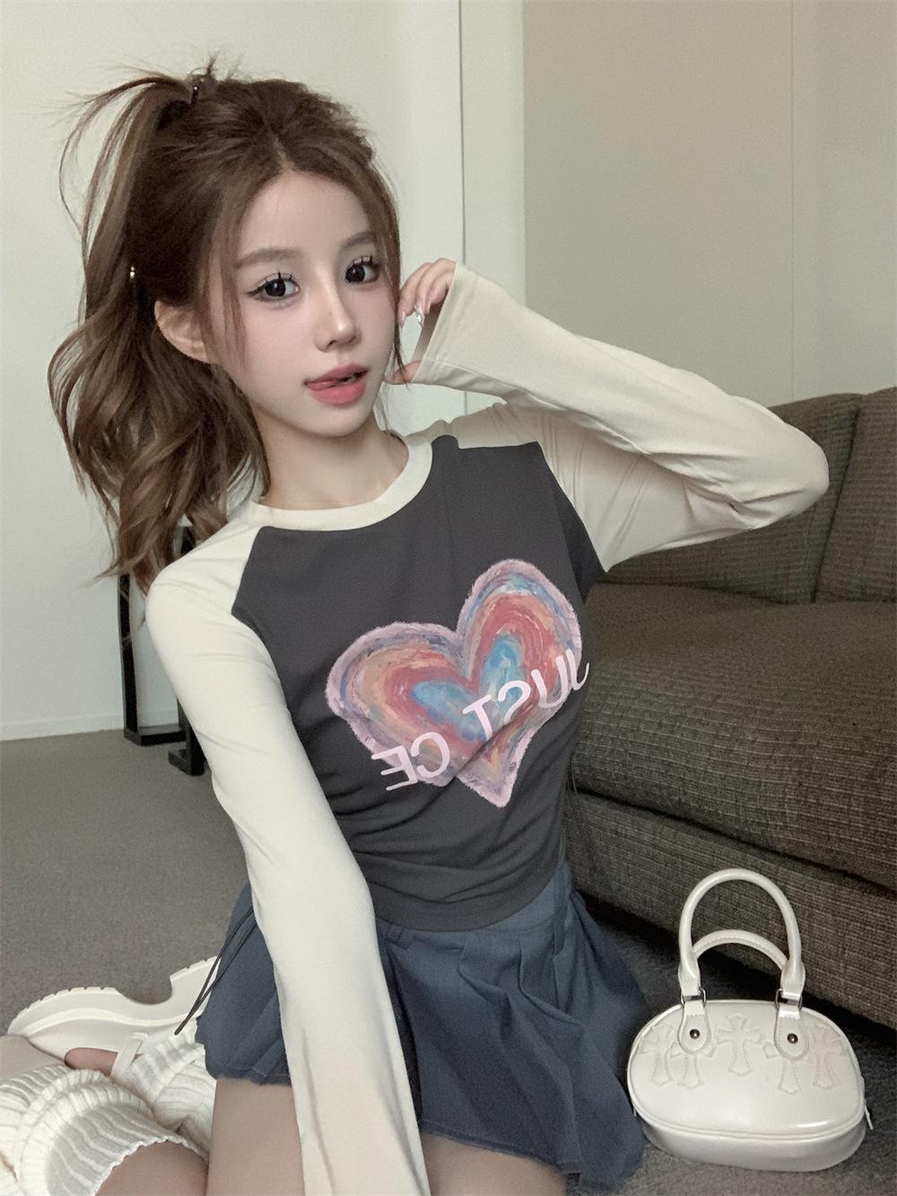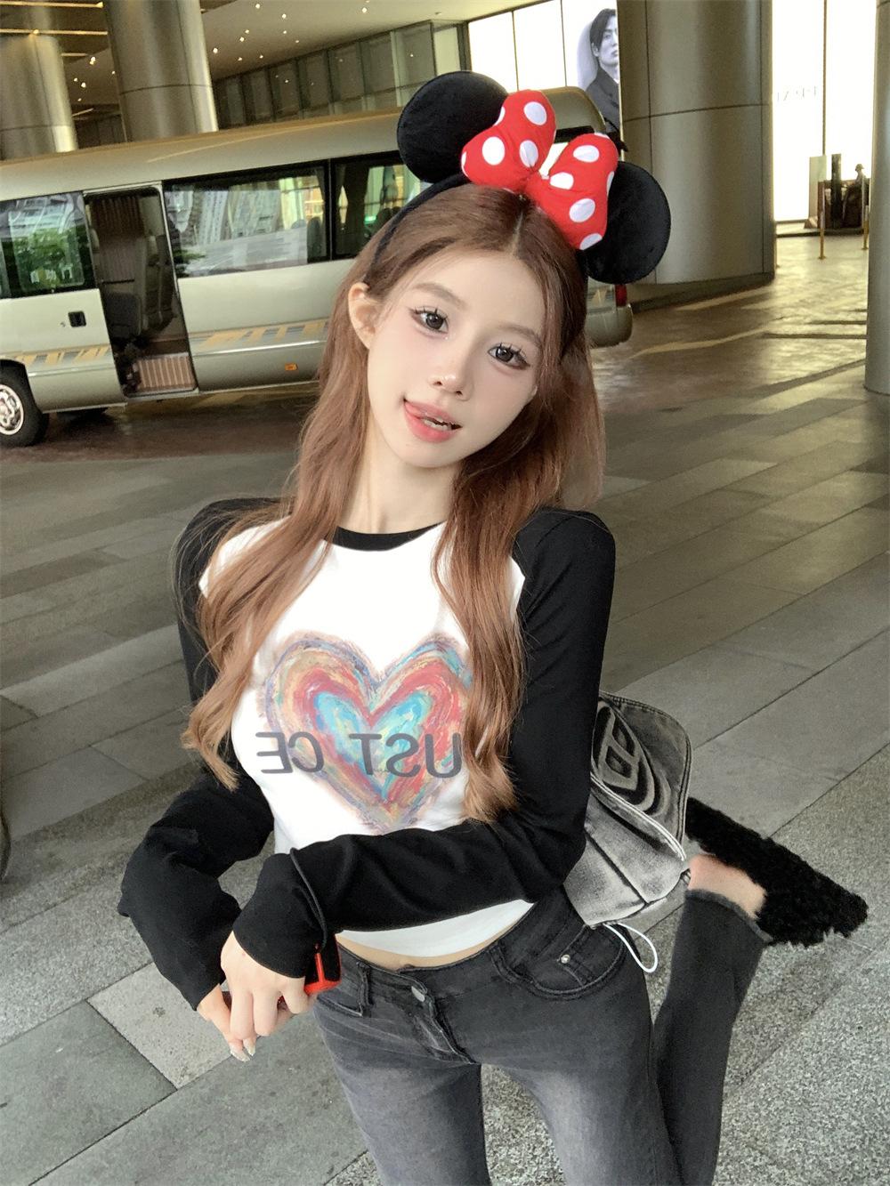Camiseta de manga larga con estampado de corazón de marca estadounidense de moda para mujer, otoño temprano 2025, corte ajustado, adelgazante, top corto para chica guapa, ins