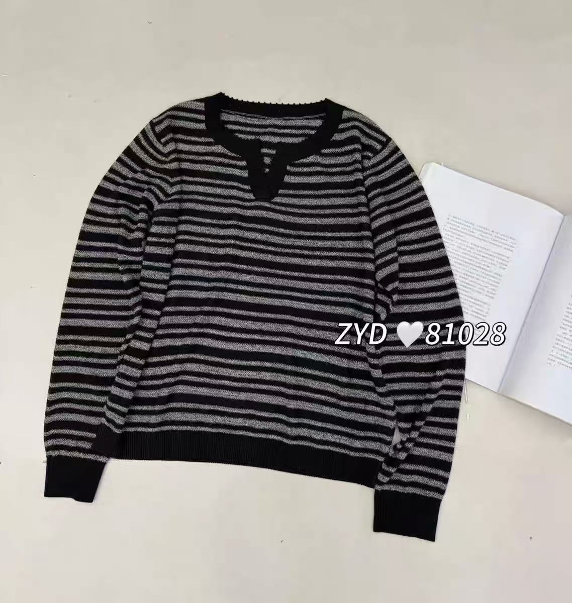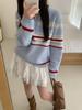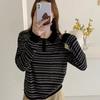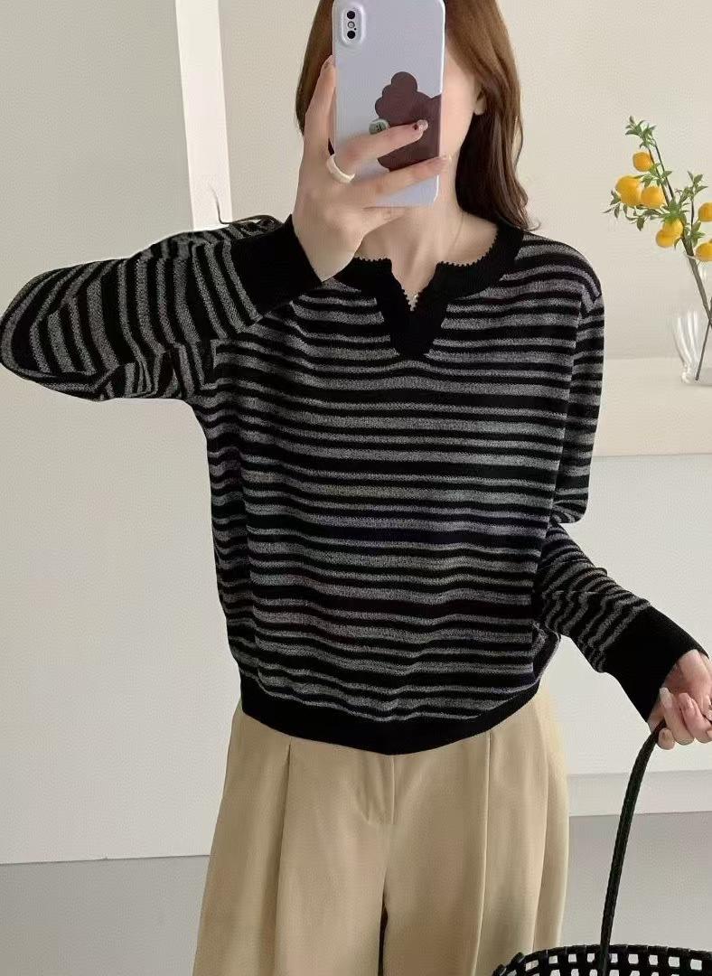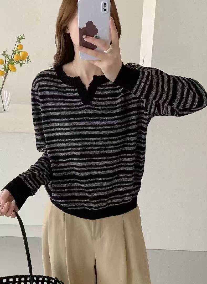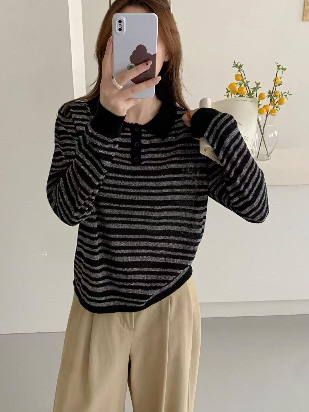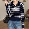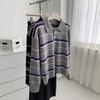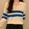 Suéter de rayas con cuello polo para mujer 2025 otoño e invierno nuevo punto de solapa estilo holgado perezoso top de estilo moderno y extranjero