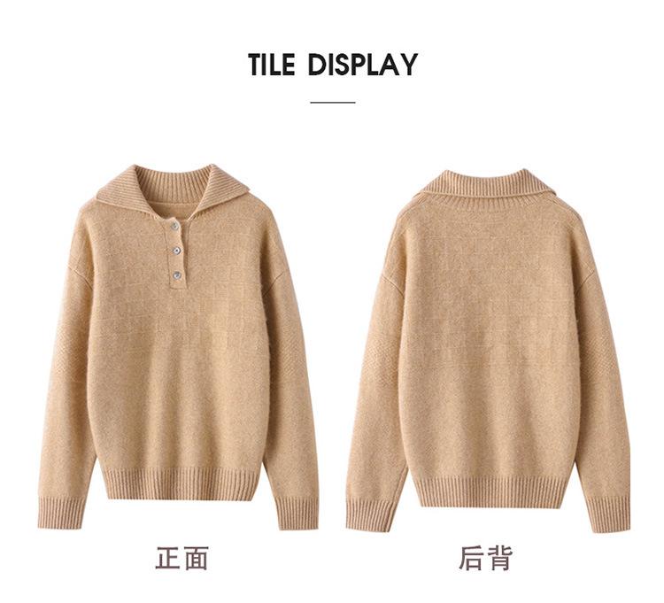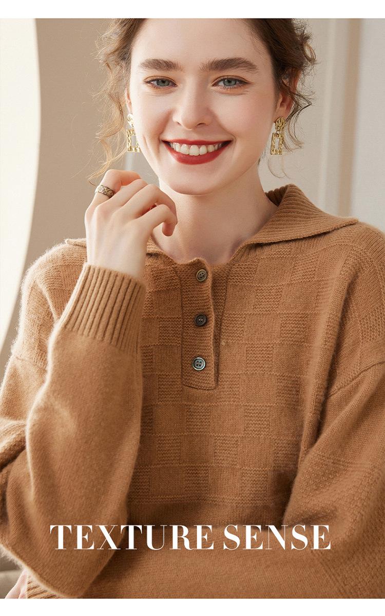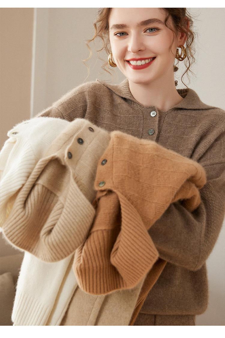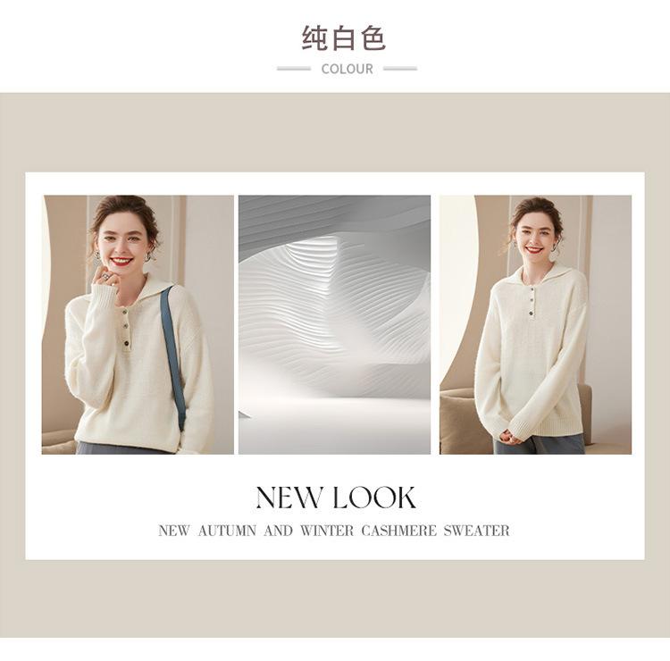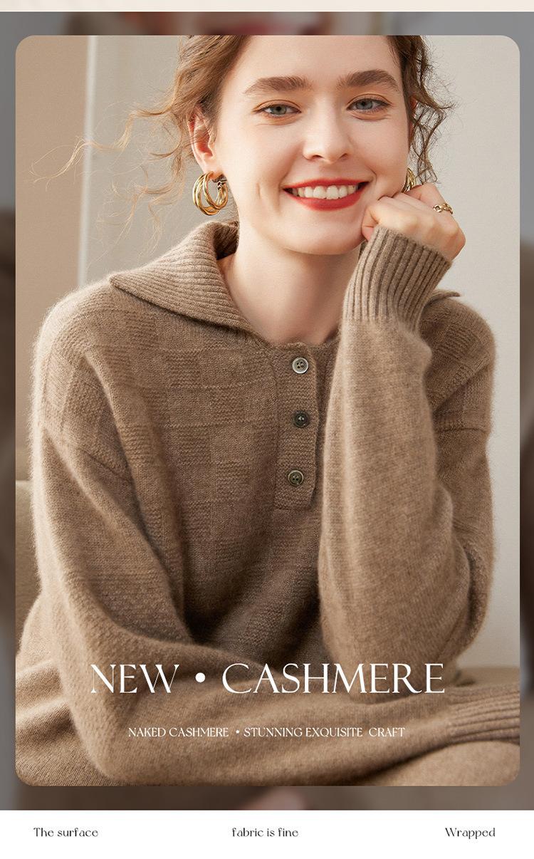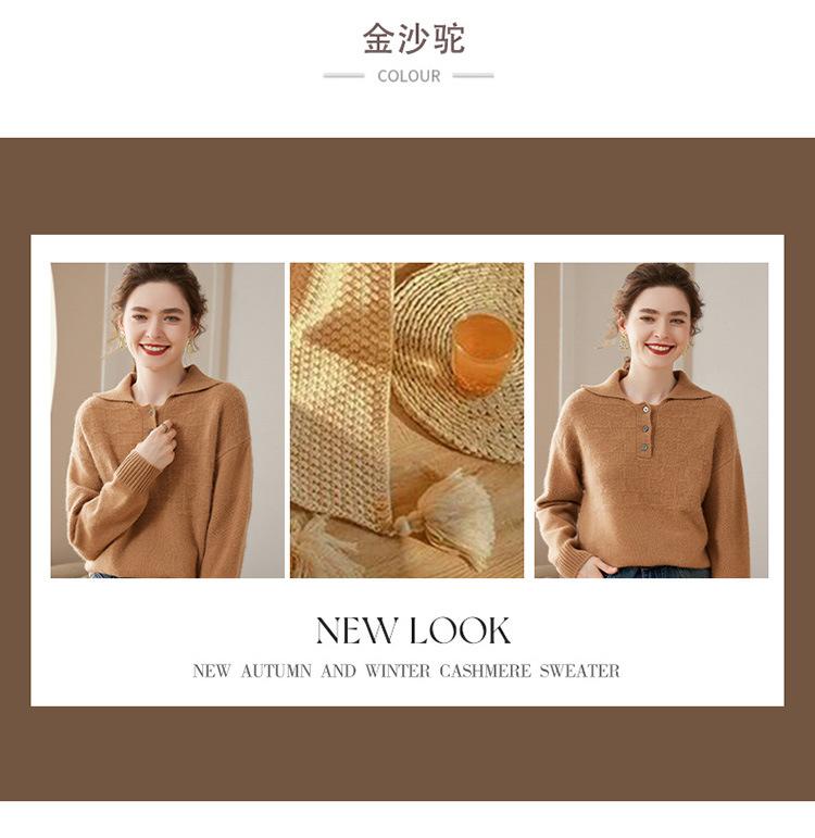 Nueva Camiseta Base Tejida de Otoño e Invierno Suave y Cómoda Color Sólido Delicada con la Piel Solapa con Hebilla Suéter de Cachemira para Mujer Sencillo