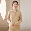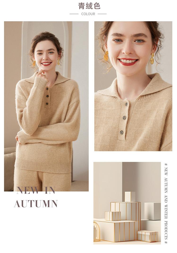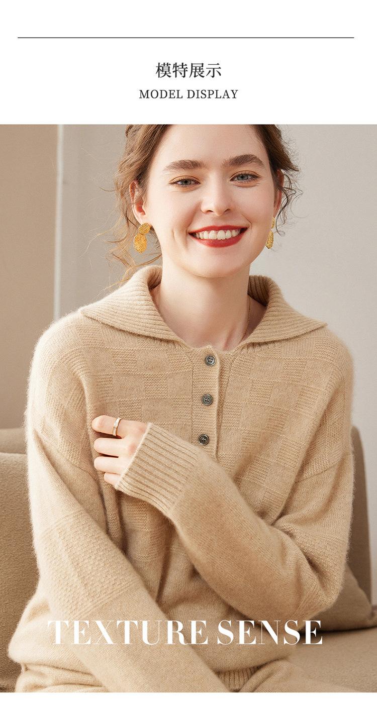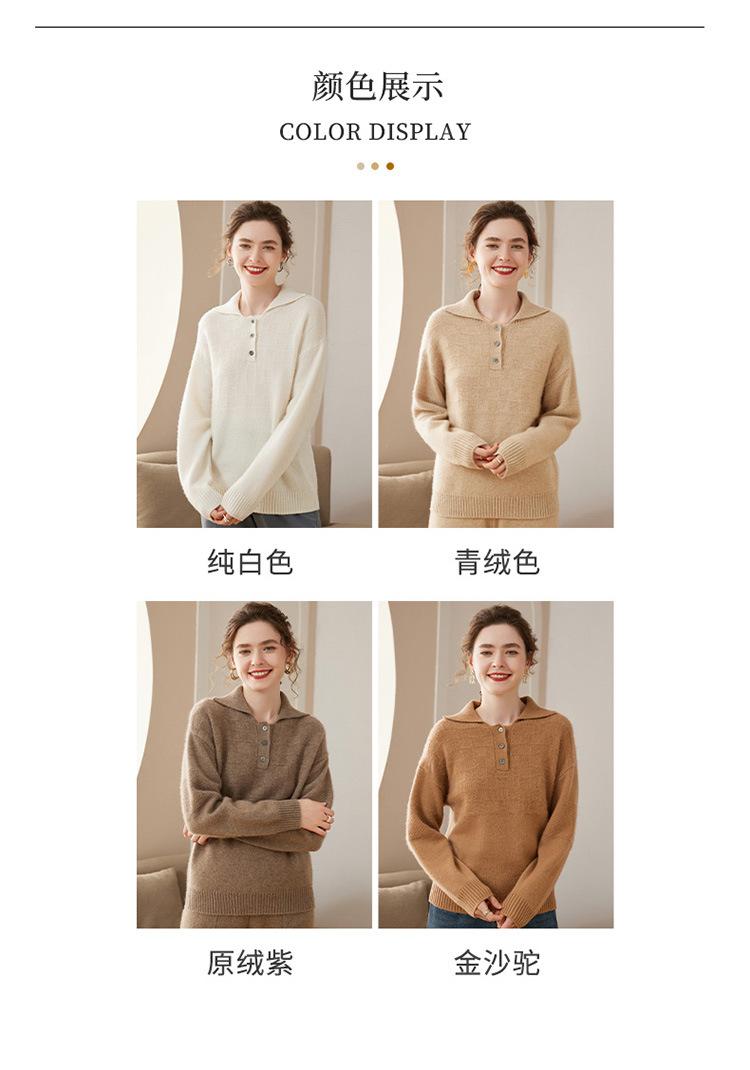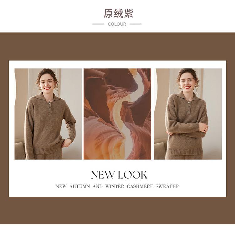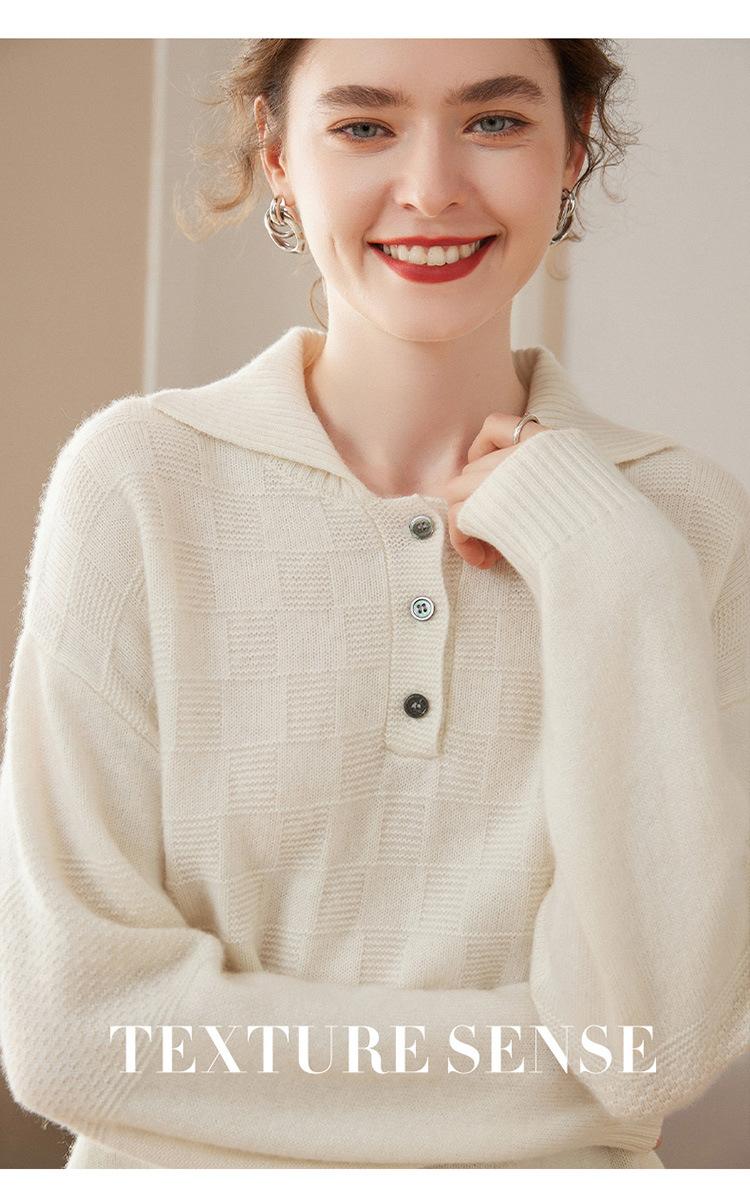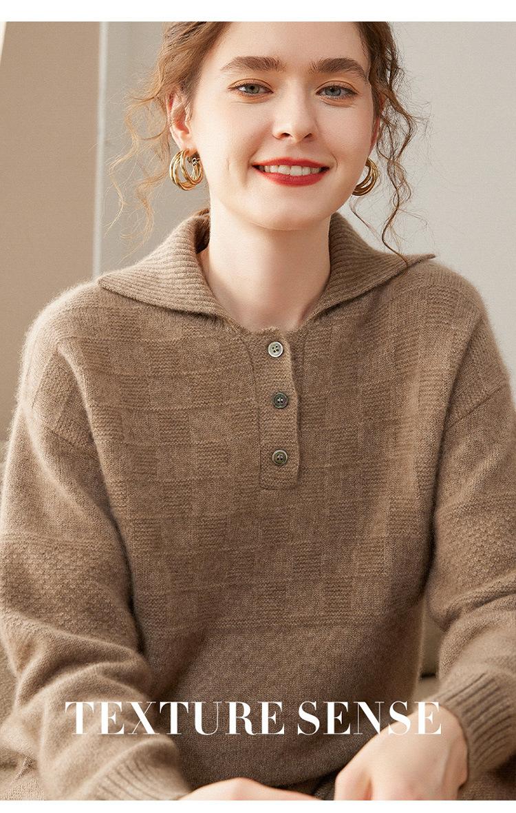 Nueva Camiseta Base Tejida de Otoño e Invierno Suave y Cómoda Color Sólido Delicada con la Piel Solapa con Hebilla Suéter de Cachemira para Mujer Sencillo