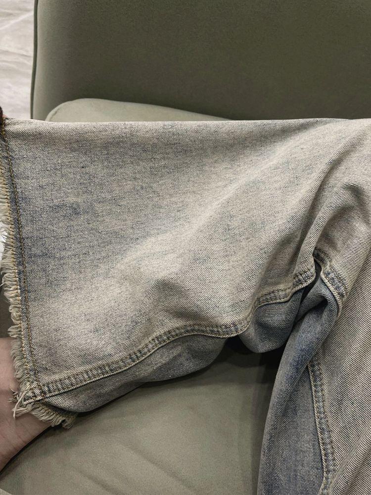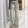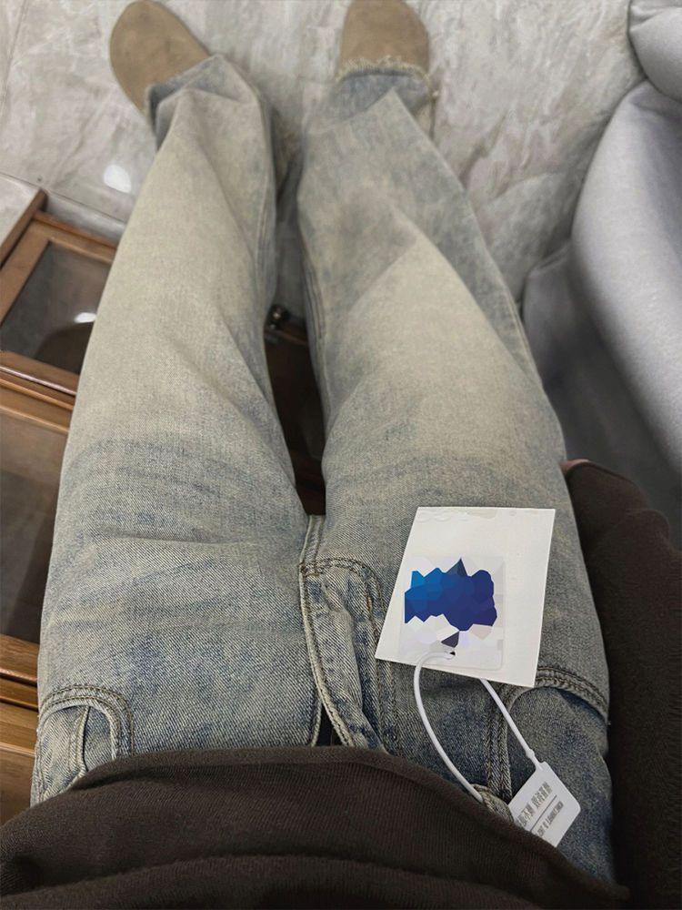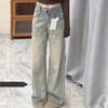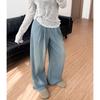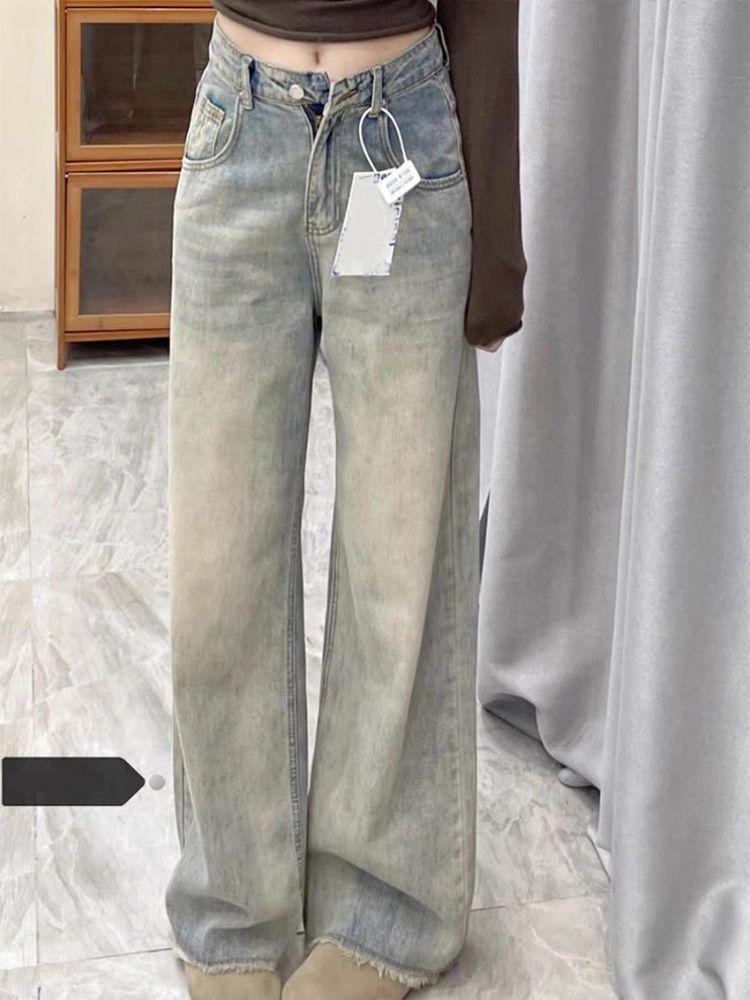 Jeans de Mujer Otoño 2025 Nuevo Diseño Azul Nostálgico Cintura Alta Sentido del Diseño Borde Crudo Suelto Adelgazante Pierna Recta Pierna Ancha