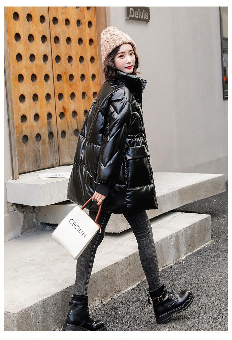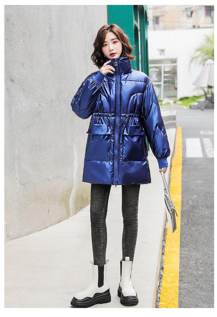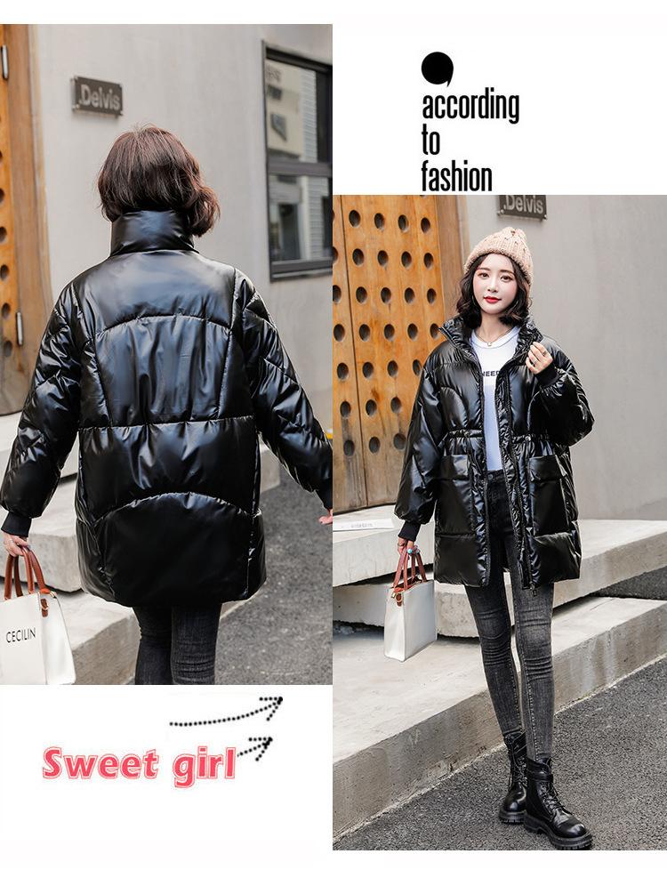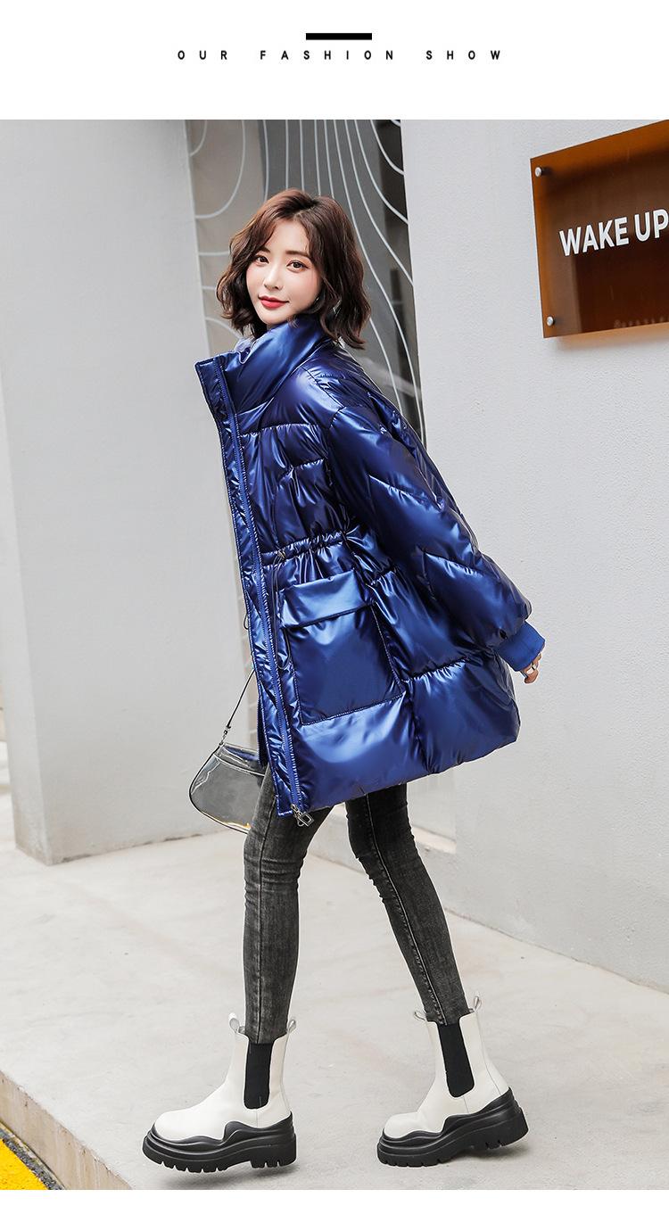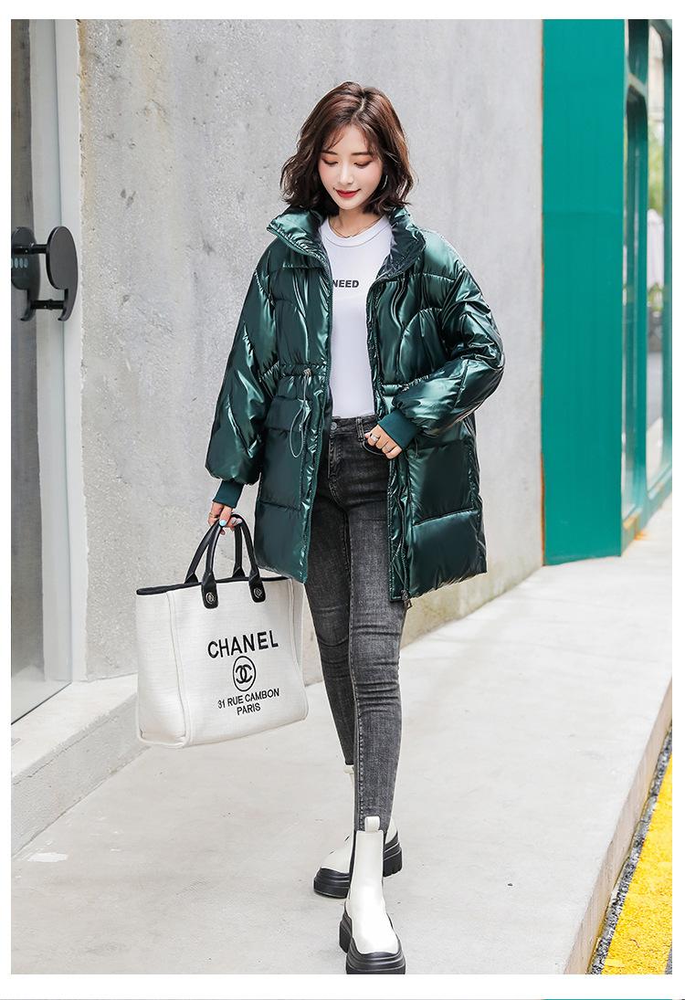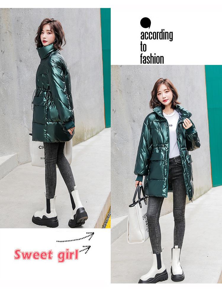 Abrigo de Algodón Acolchado Brillante de Largo Medio Estilo Coreano para Mujer, Abrigo de Algodón Suelto a la Moda para Invierno, Chaqueta Cálida con Cinturón
