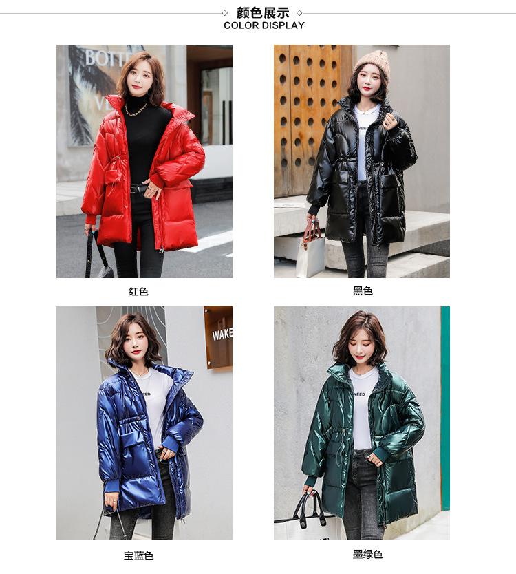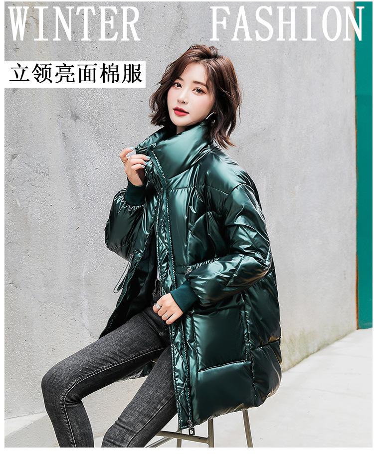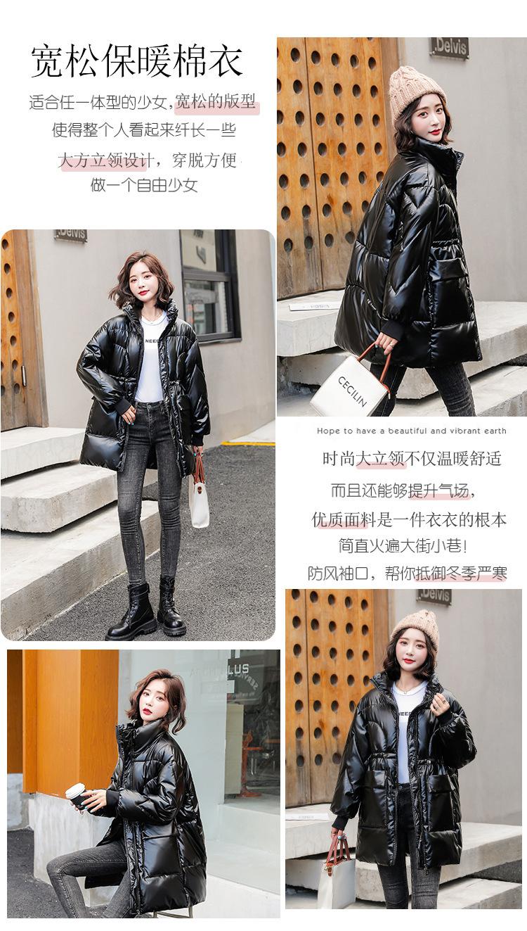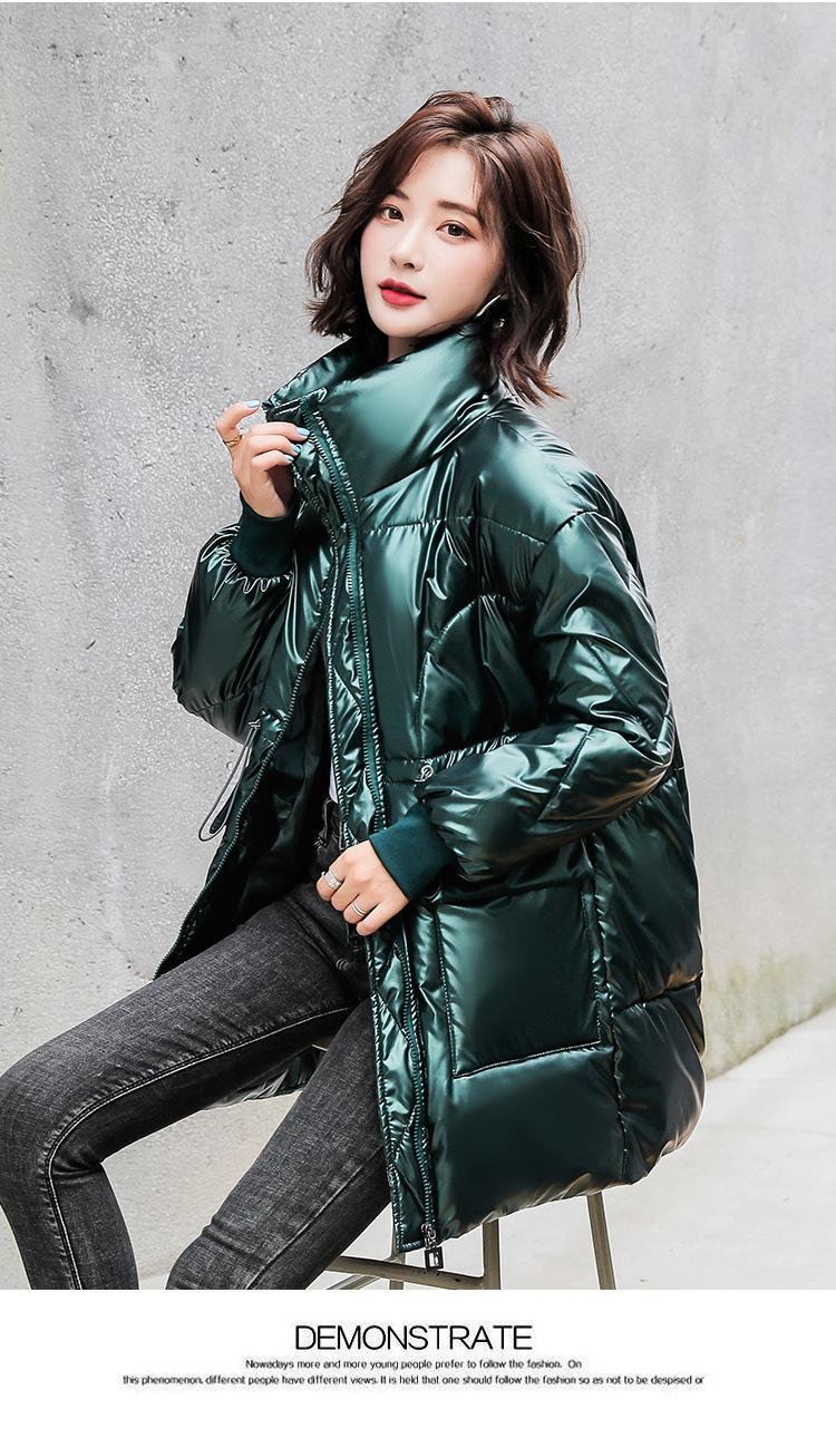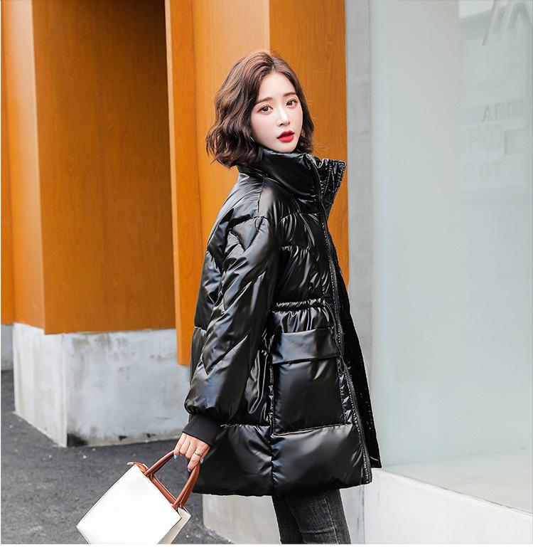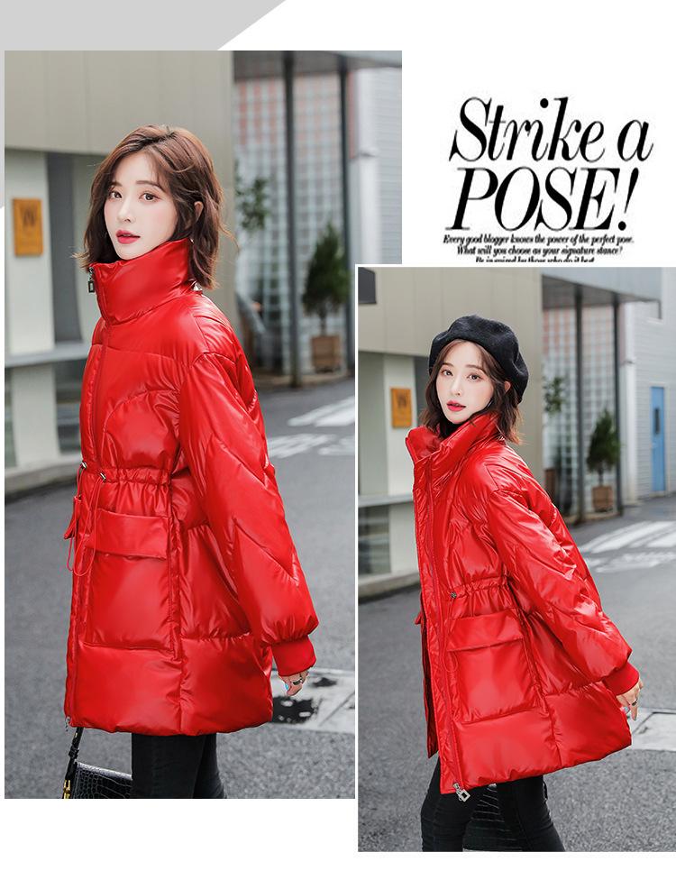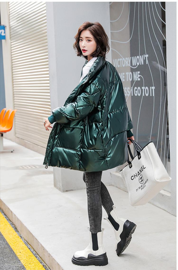 Abrigo de Algodón Acolchado Brillante de Largo Medio Estilo Coreano para Mujer, Abrigo de Algodón Suelto a la Moda para Invierno, Chaqueta Cálida con Cinturón