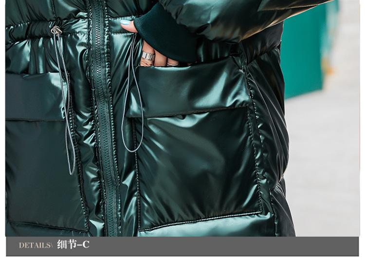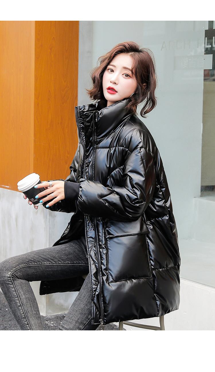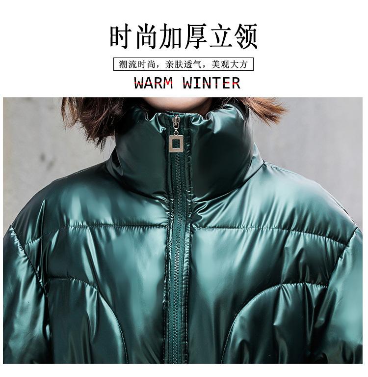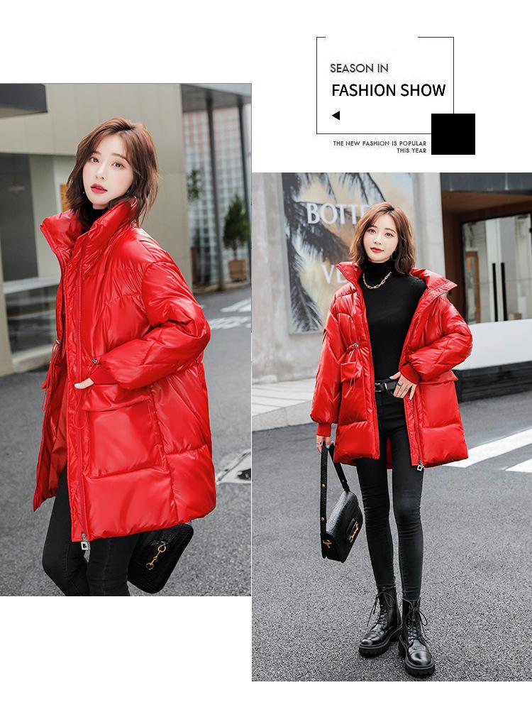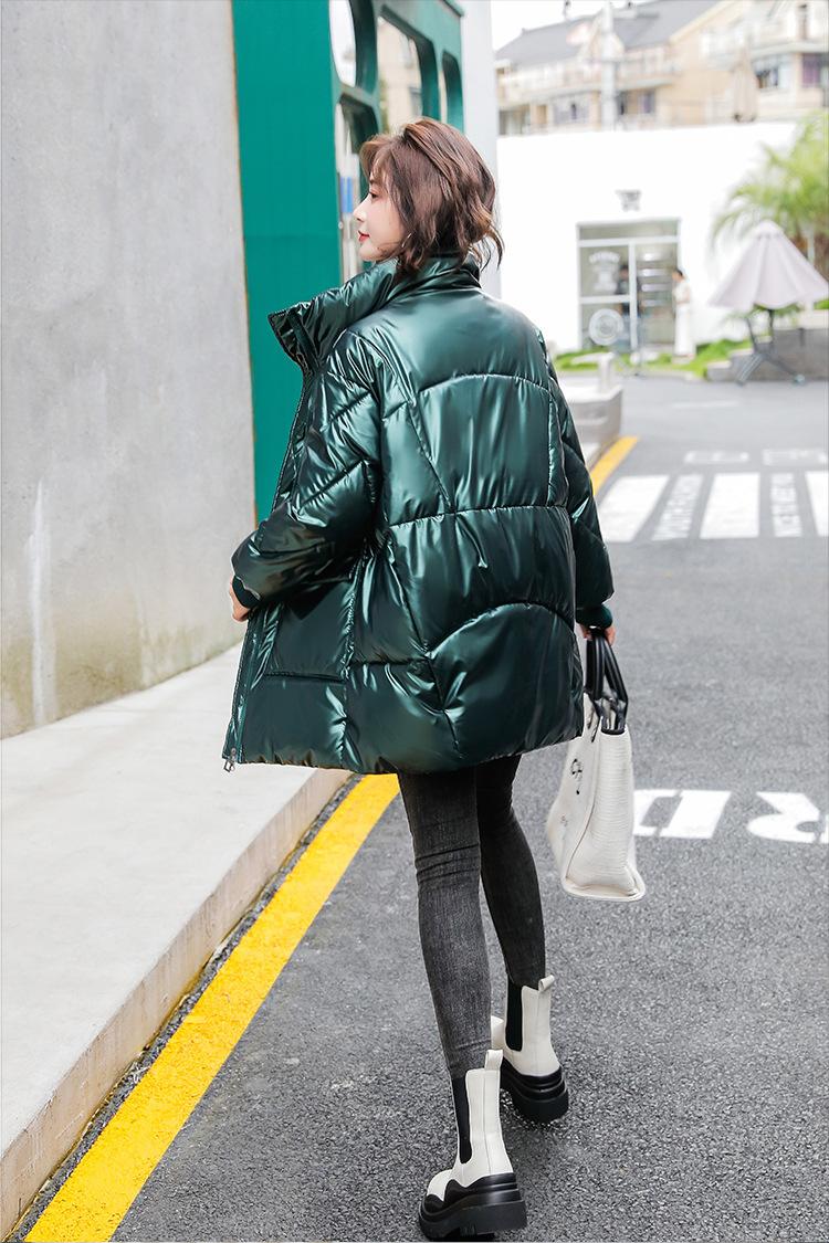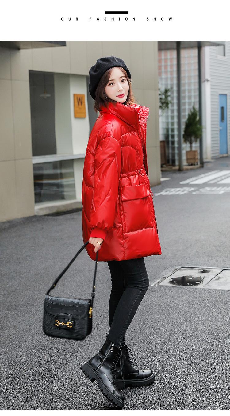 Abrigo de Algodón Acolchado Brillante de Largo Medio Estilo Coreano para Mujer, Abrigo de Algodón Suelto a la Moda para Invierno, Chaqueta Cálida con Cinturón