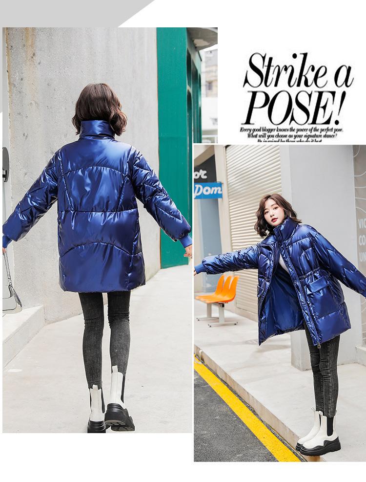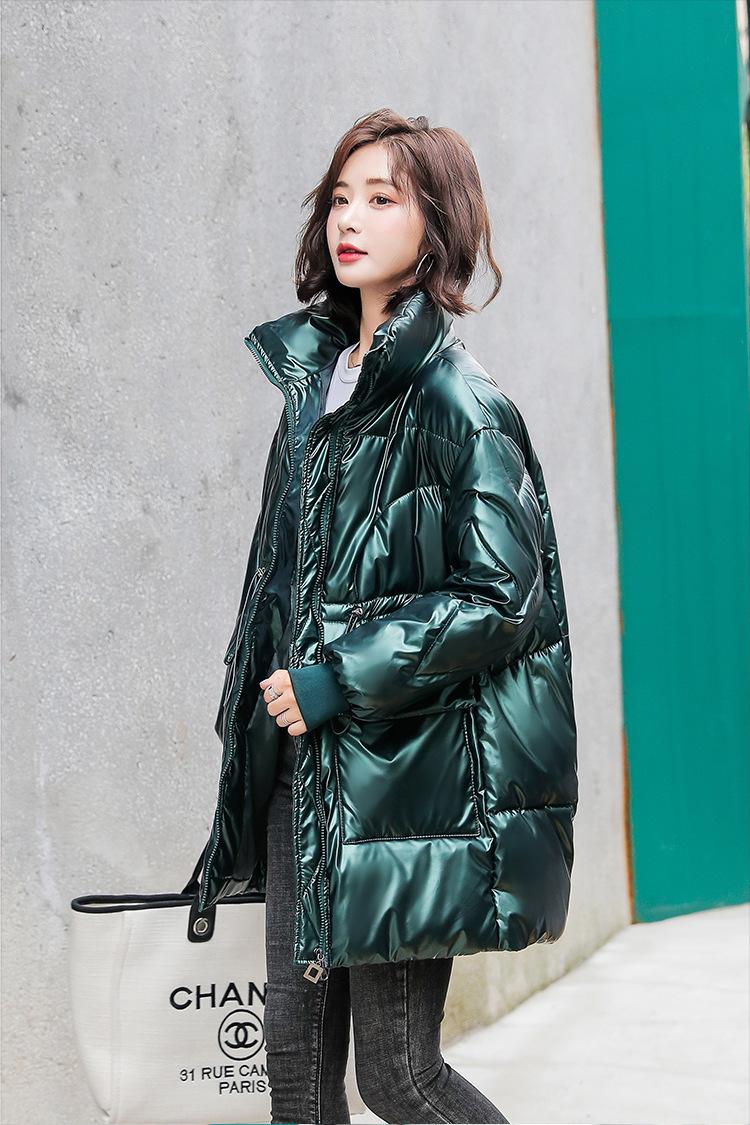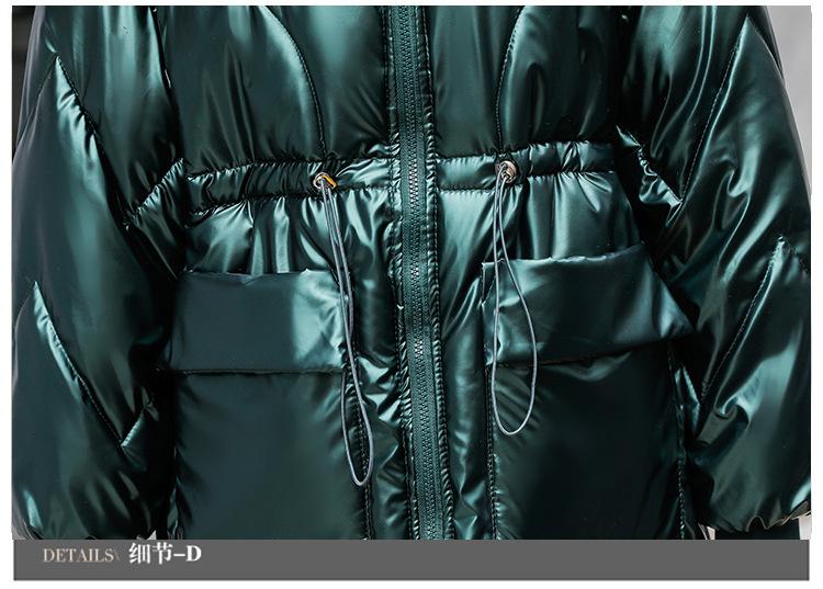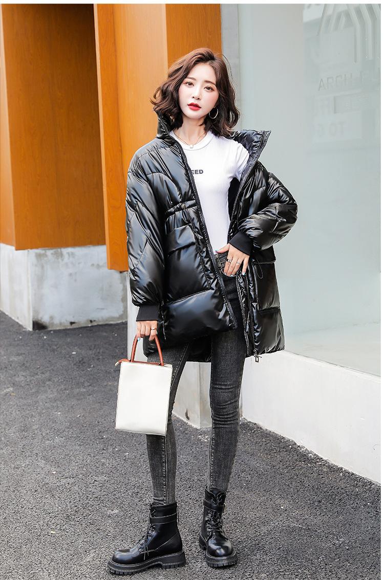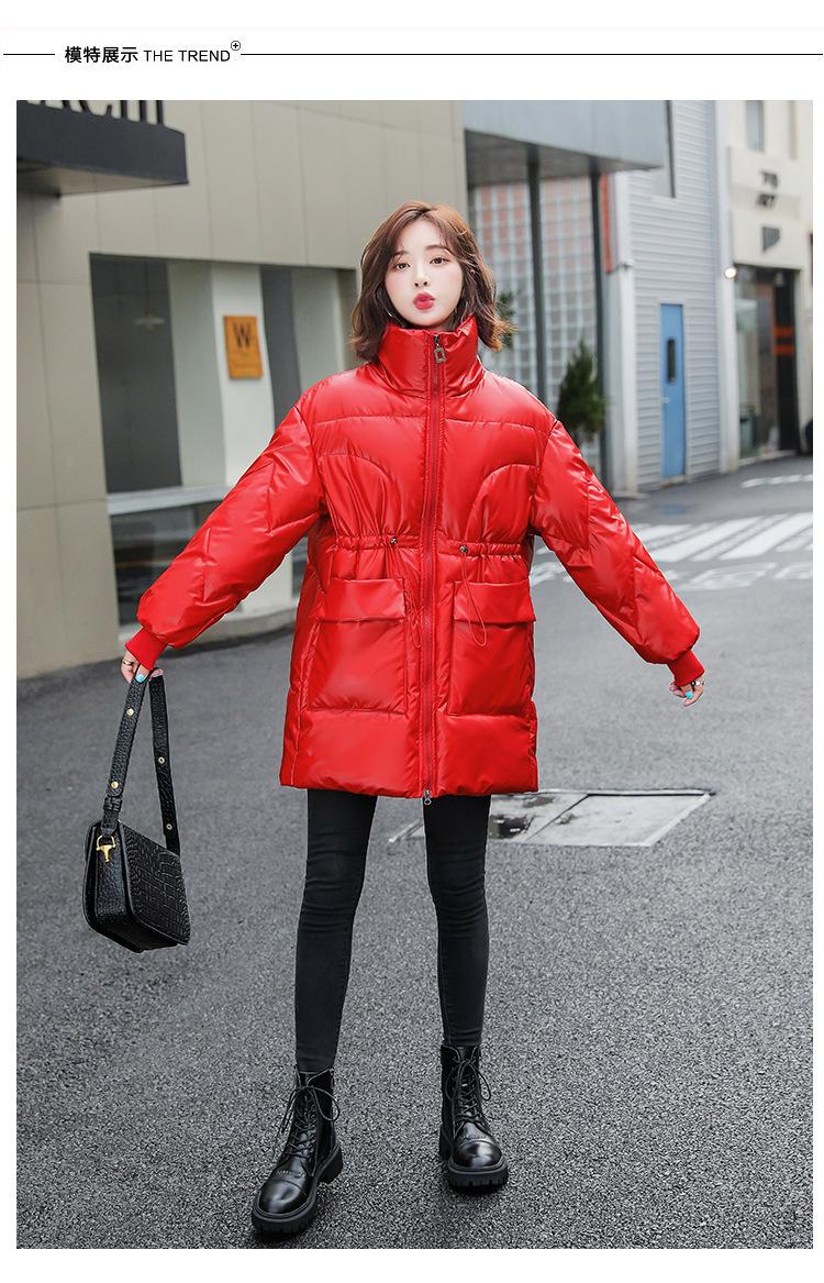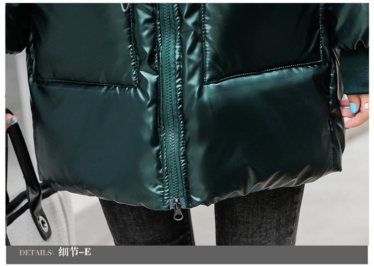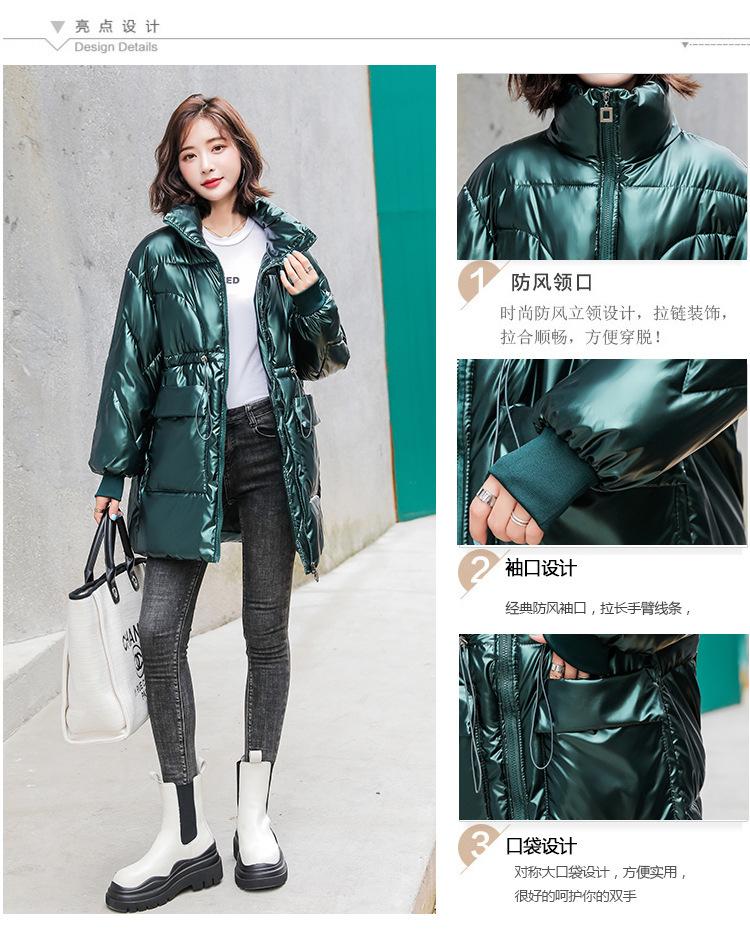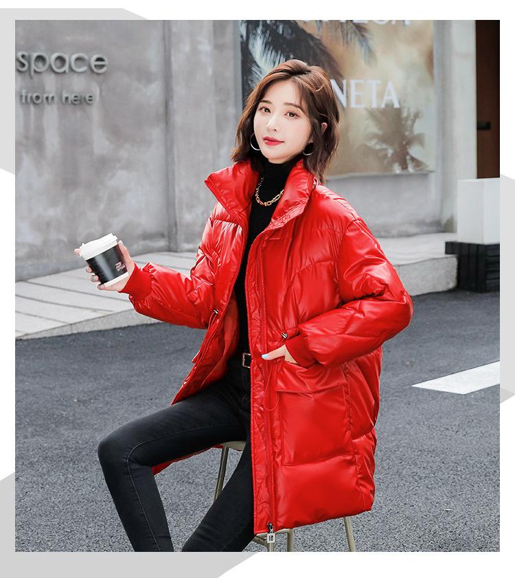 Abrigo de Algodón Acolchado Brillante de Largo Medio Estilo Coreano para Mujer, Abrigo de Algodón Suelto a la Moda para Invierno, Chaqueta Cálida con Cinturón