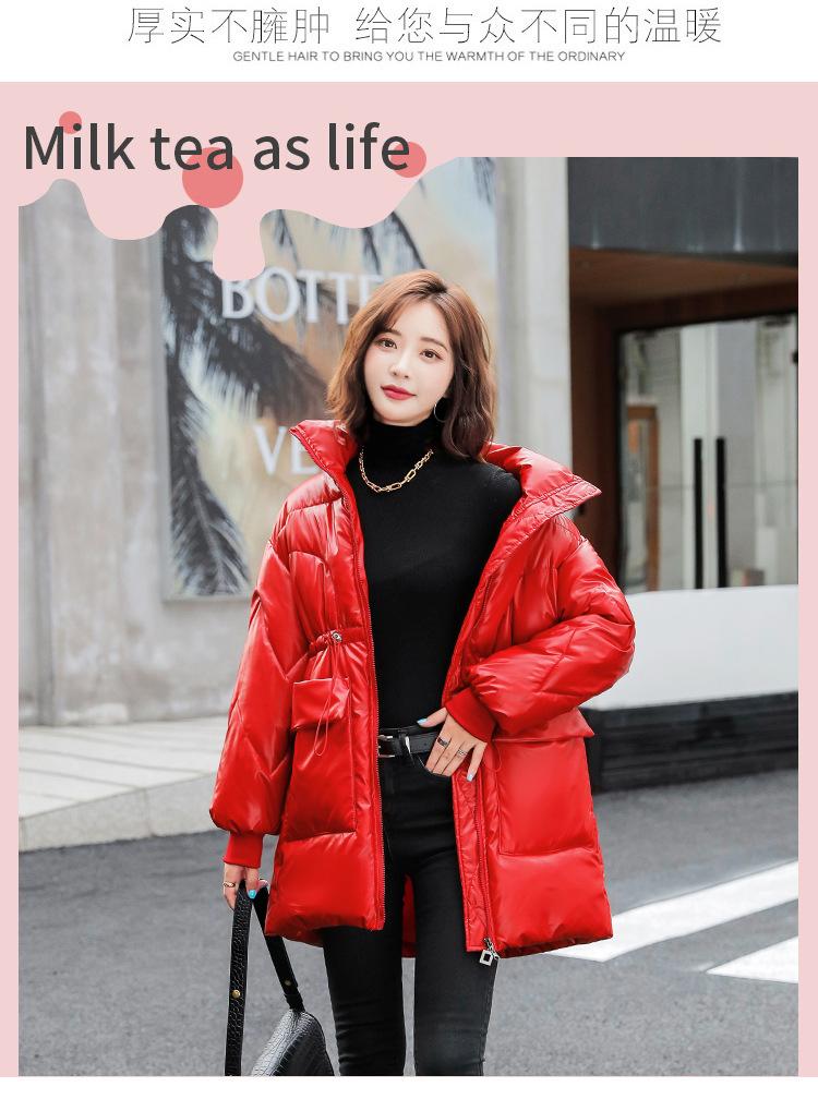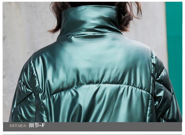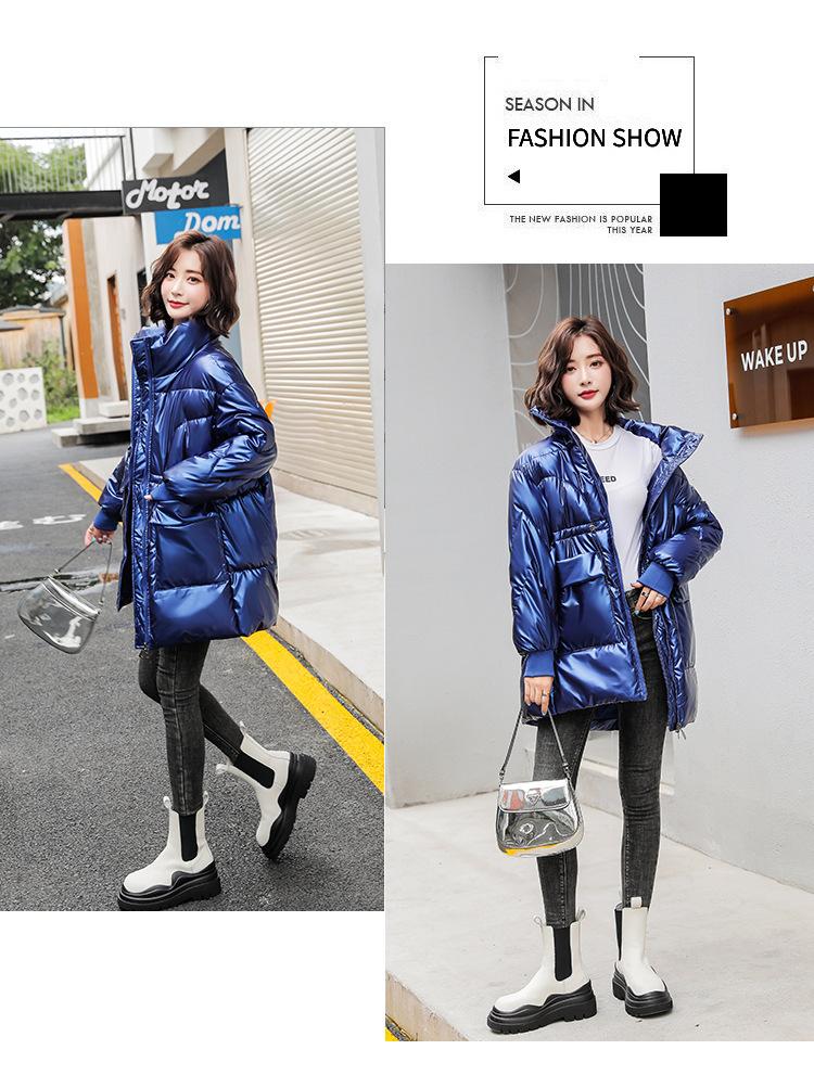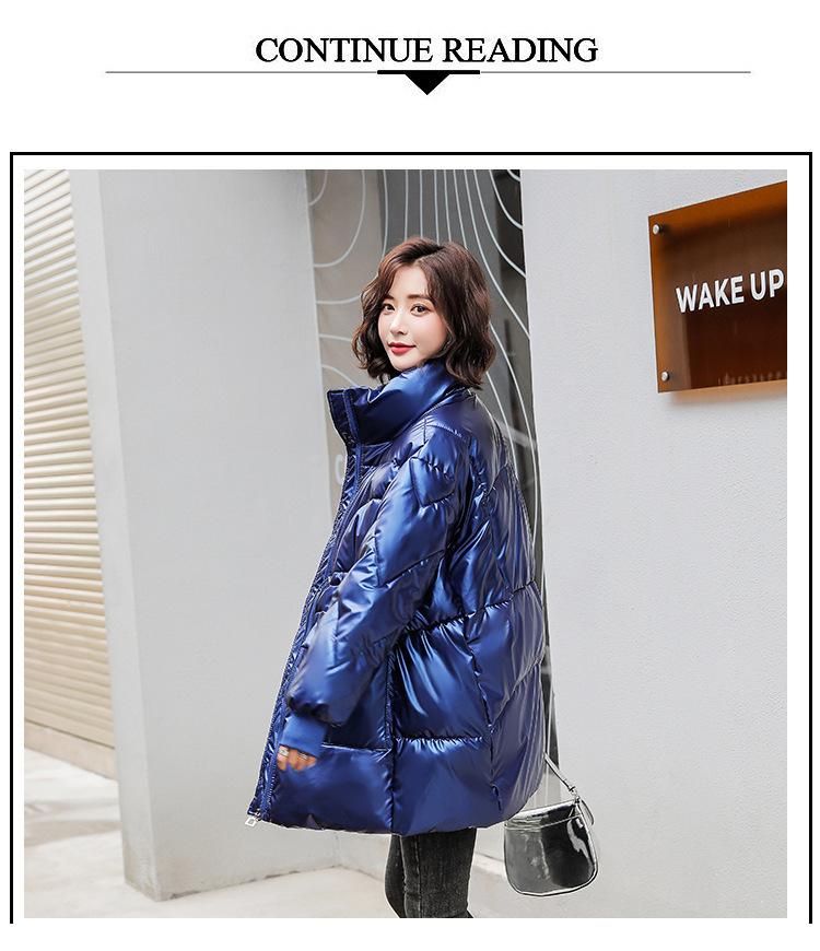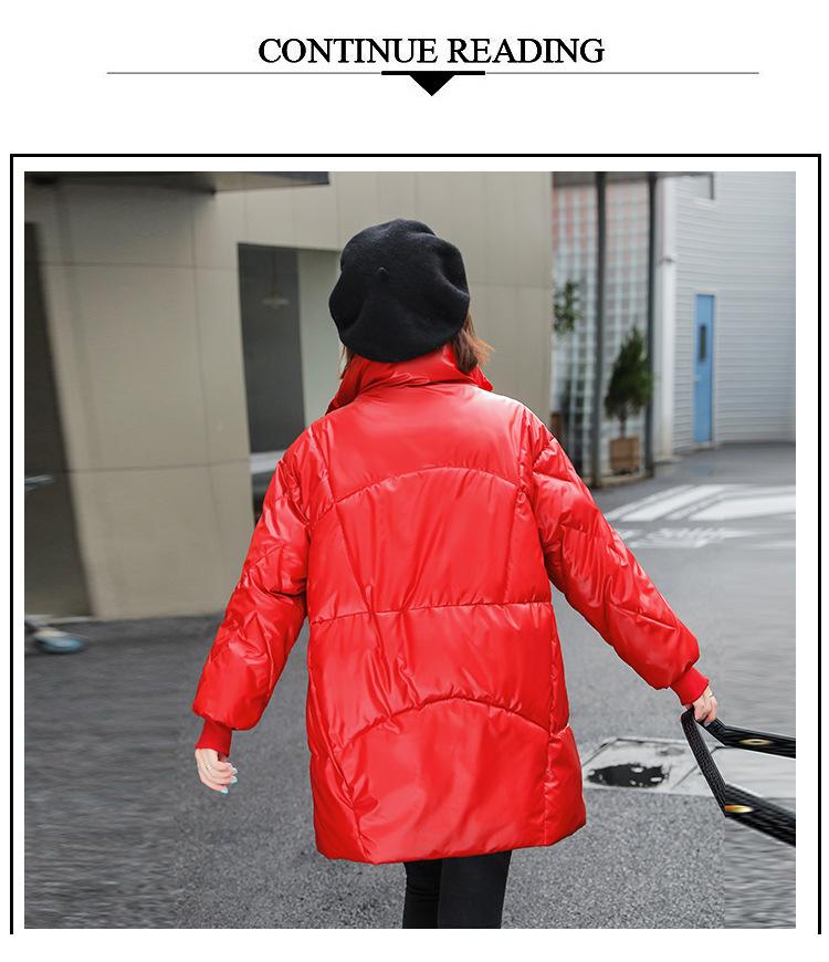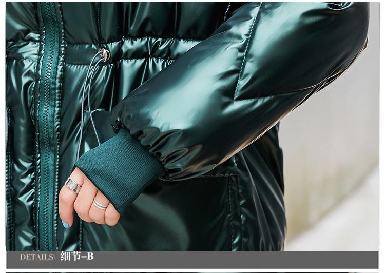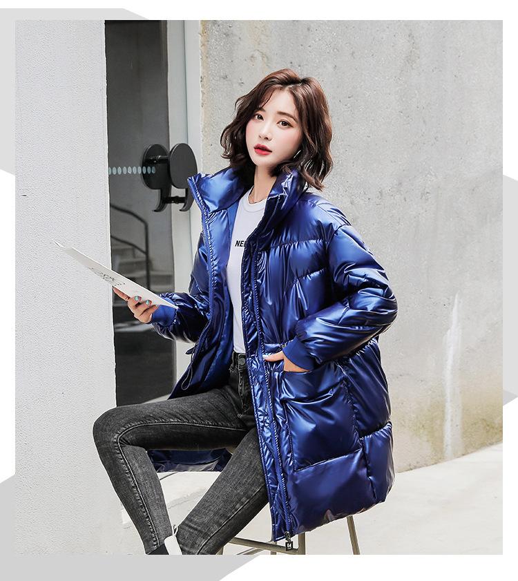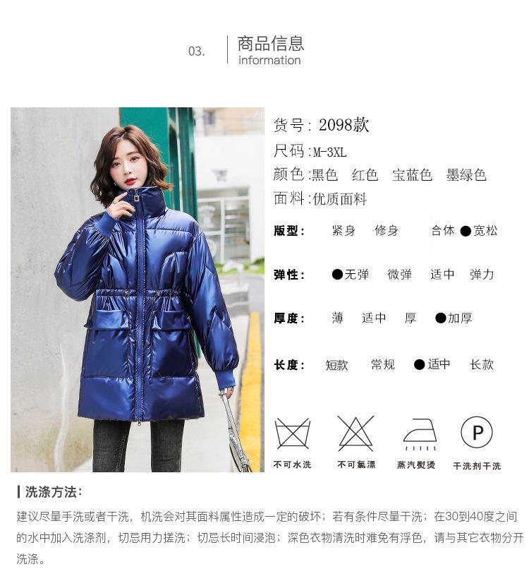 Abrigo de Algodón Acolchado Brillante de Largo Medio Estilo Coreano para Mujer, Abrigo de Algodón Suelto a la Moda para Invierno, Chaqueta Cálida con Cinturón
