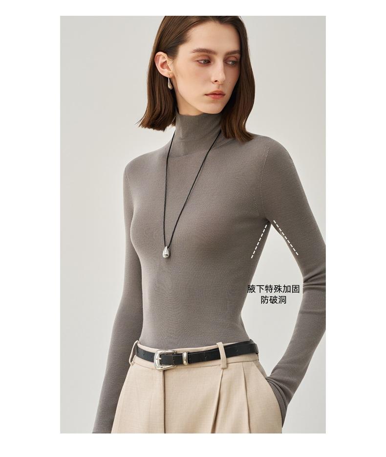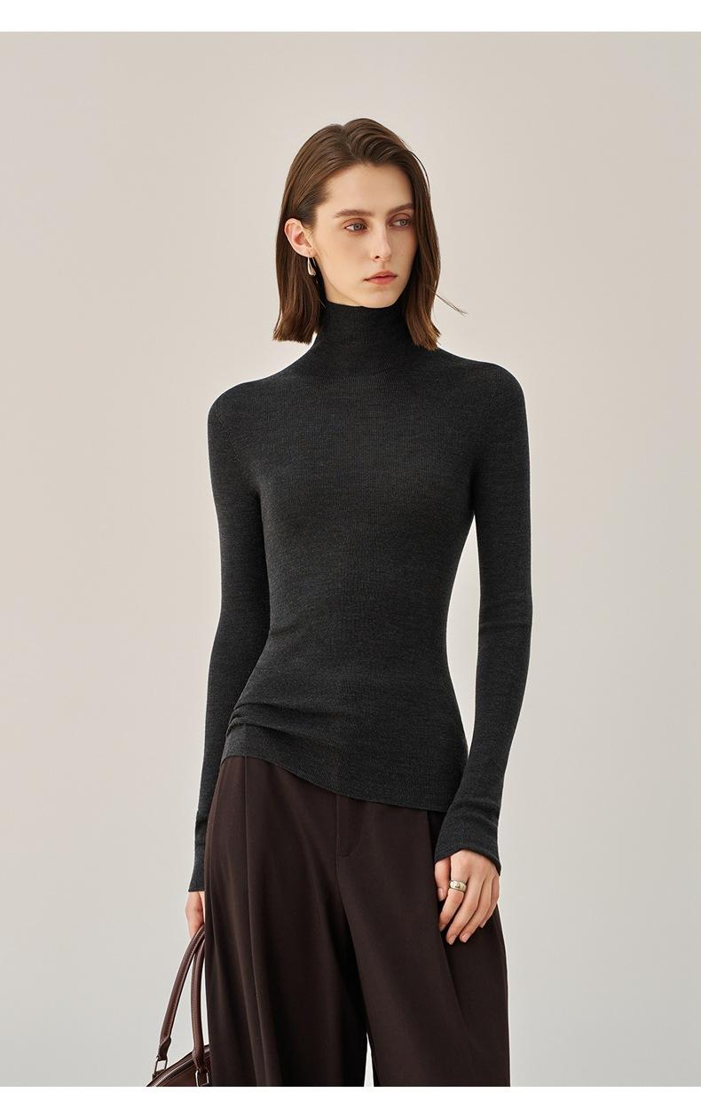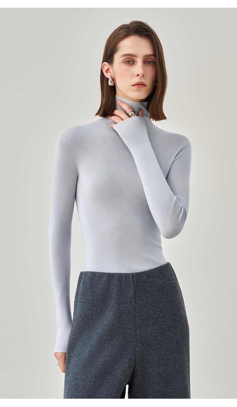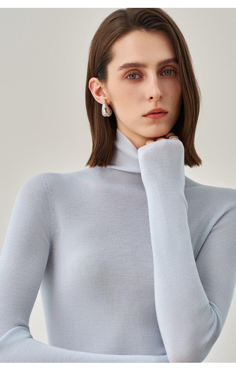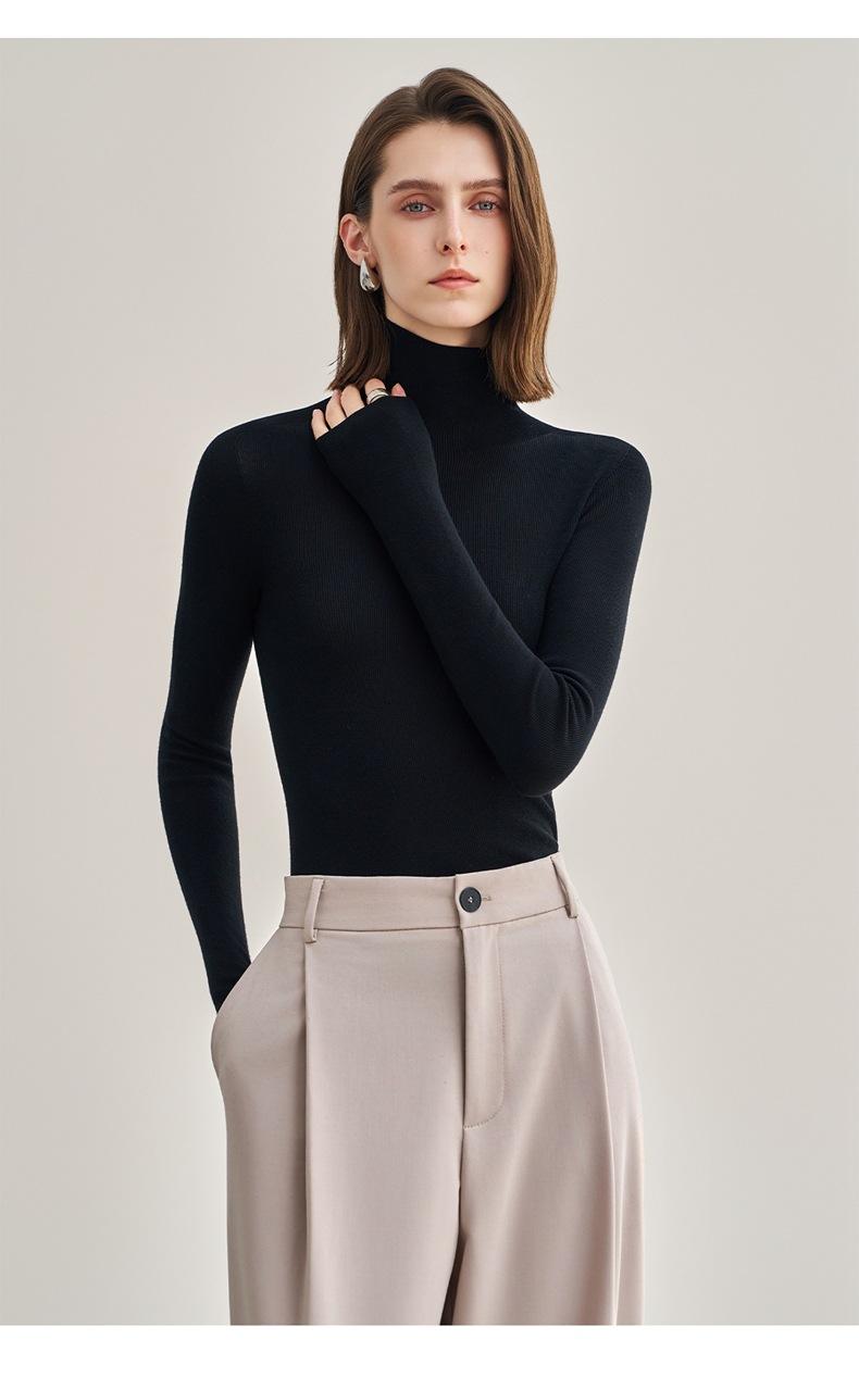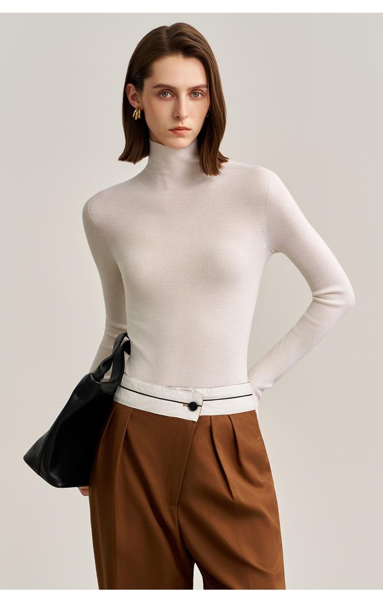 Suéter Mujer Otoño Invierno Nuevo Lana Pura Hilada Fina Prenda de Una Pieza Sin Costuras Cuello Alto Capa Interior Camisa Base Tejida para Mujer
