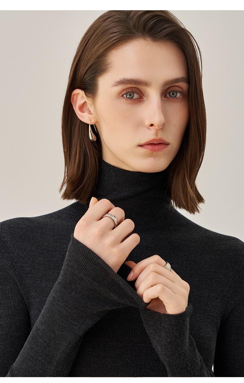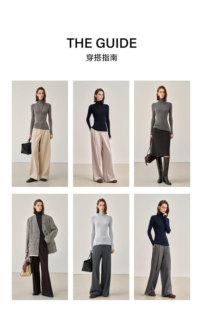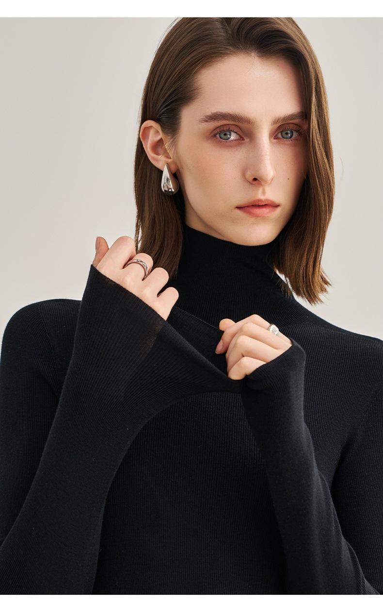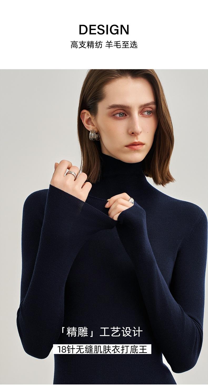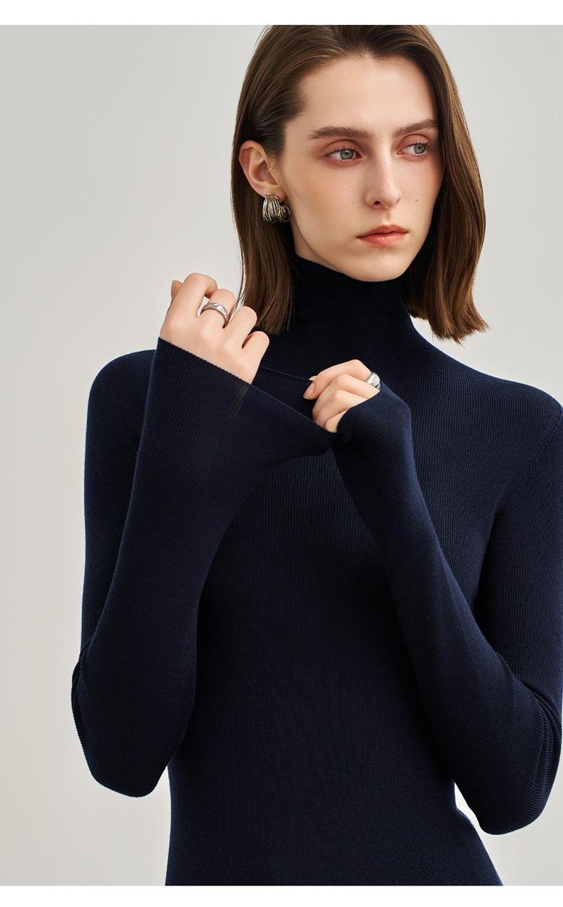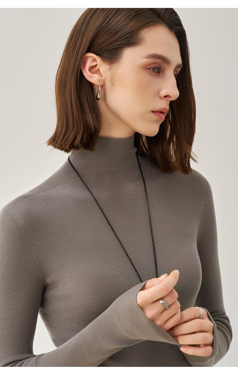 Suéter Mujer Otoño Invierno Nuevo Lana Pura Hilada Fina Prenda de Una Pieza Sin Costuras Cuello Alto Capa Interior Camisa Base Tejida para Mujer