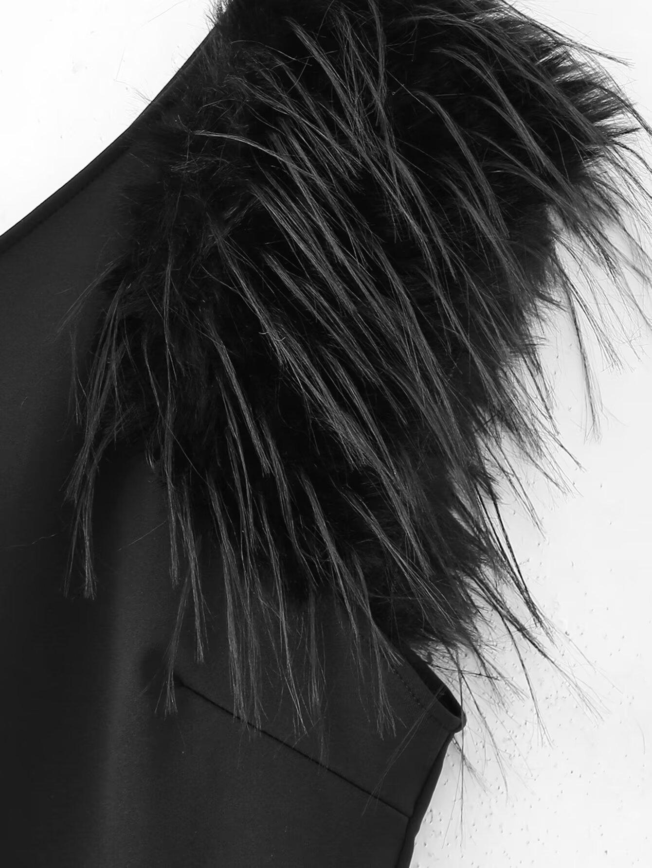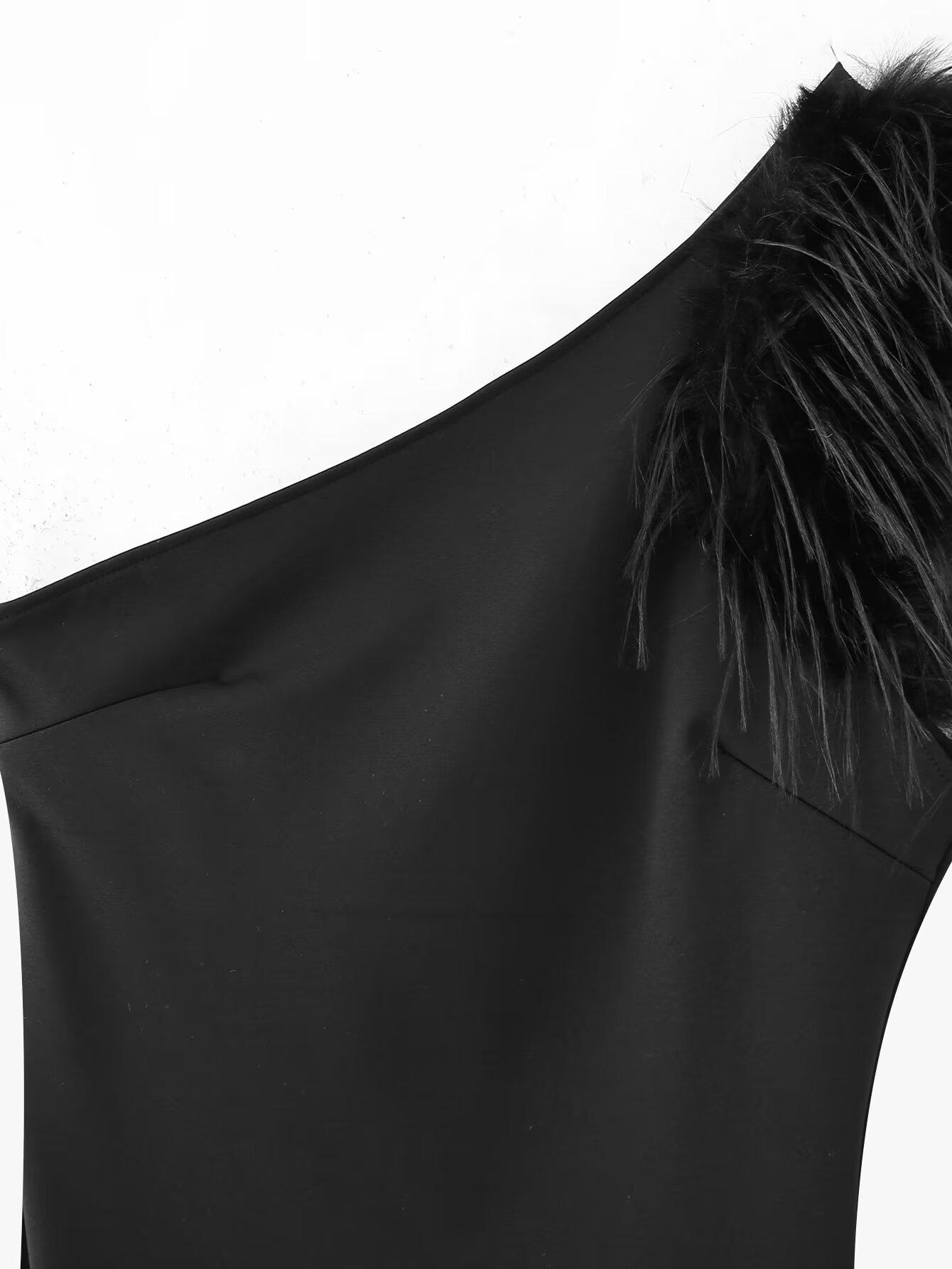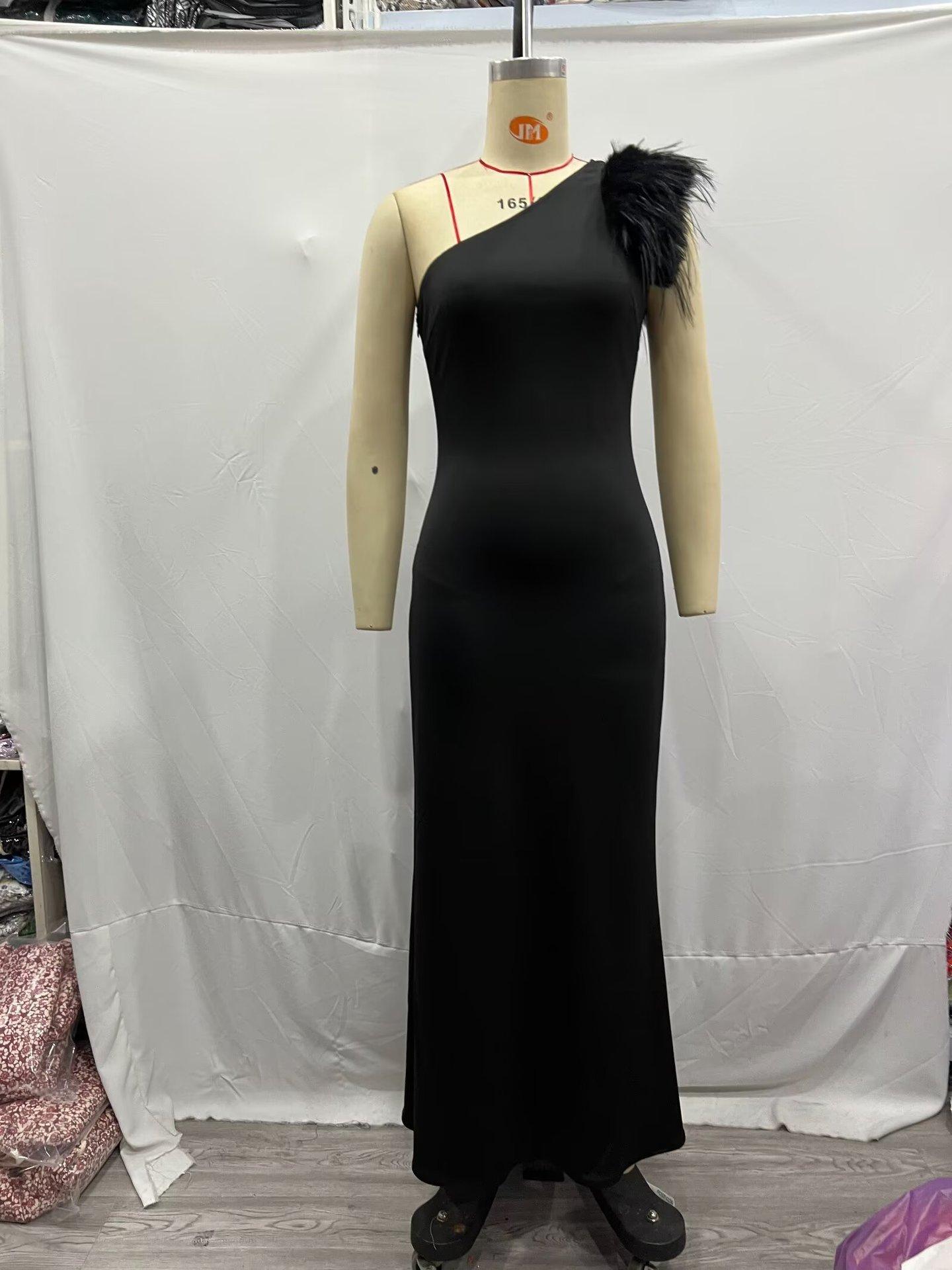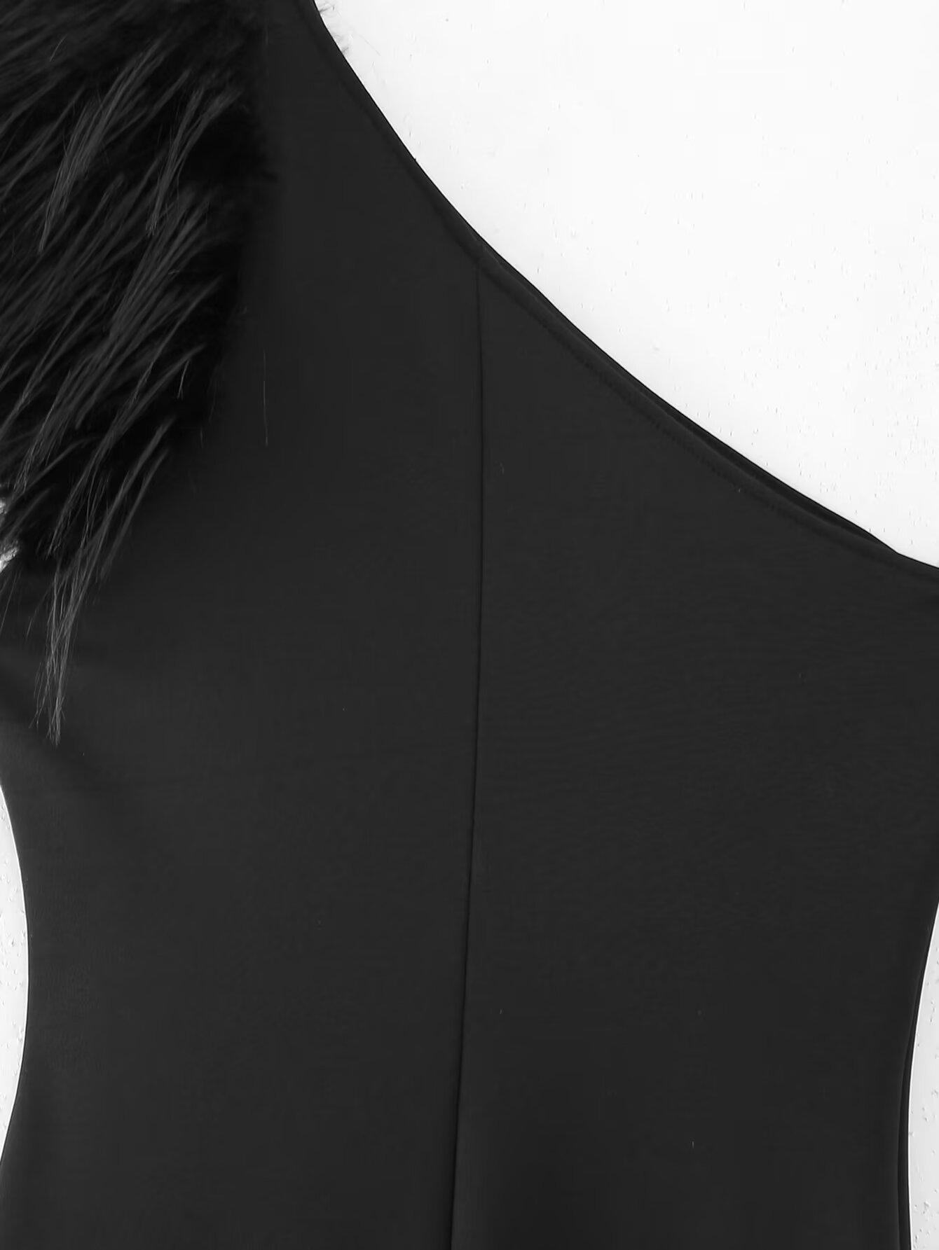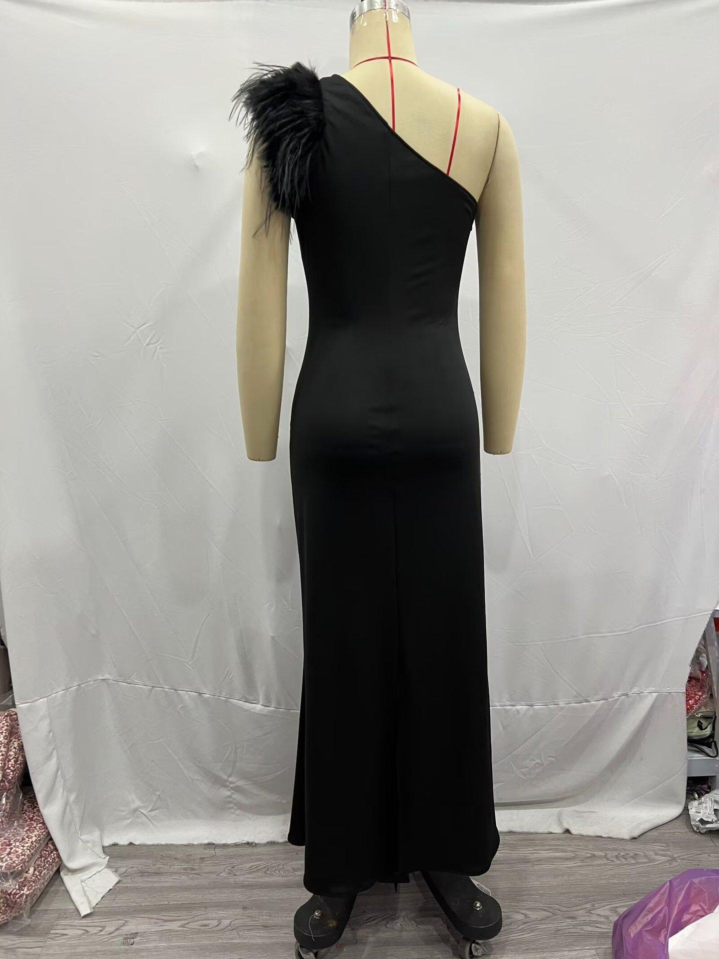 Vestido nuevo de plumas para hombros de estilo europeo y americano transfronterizo para mujer ZR en stock