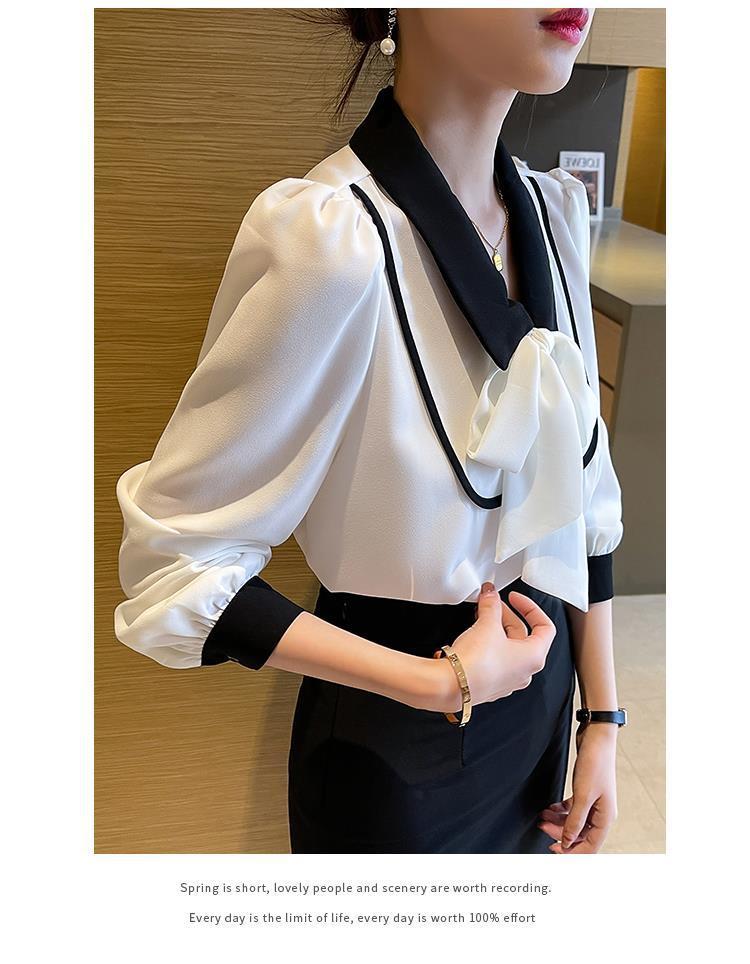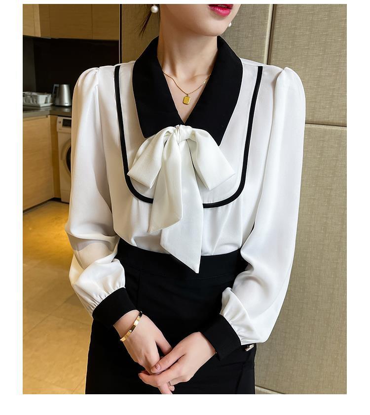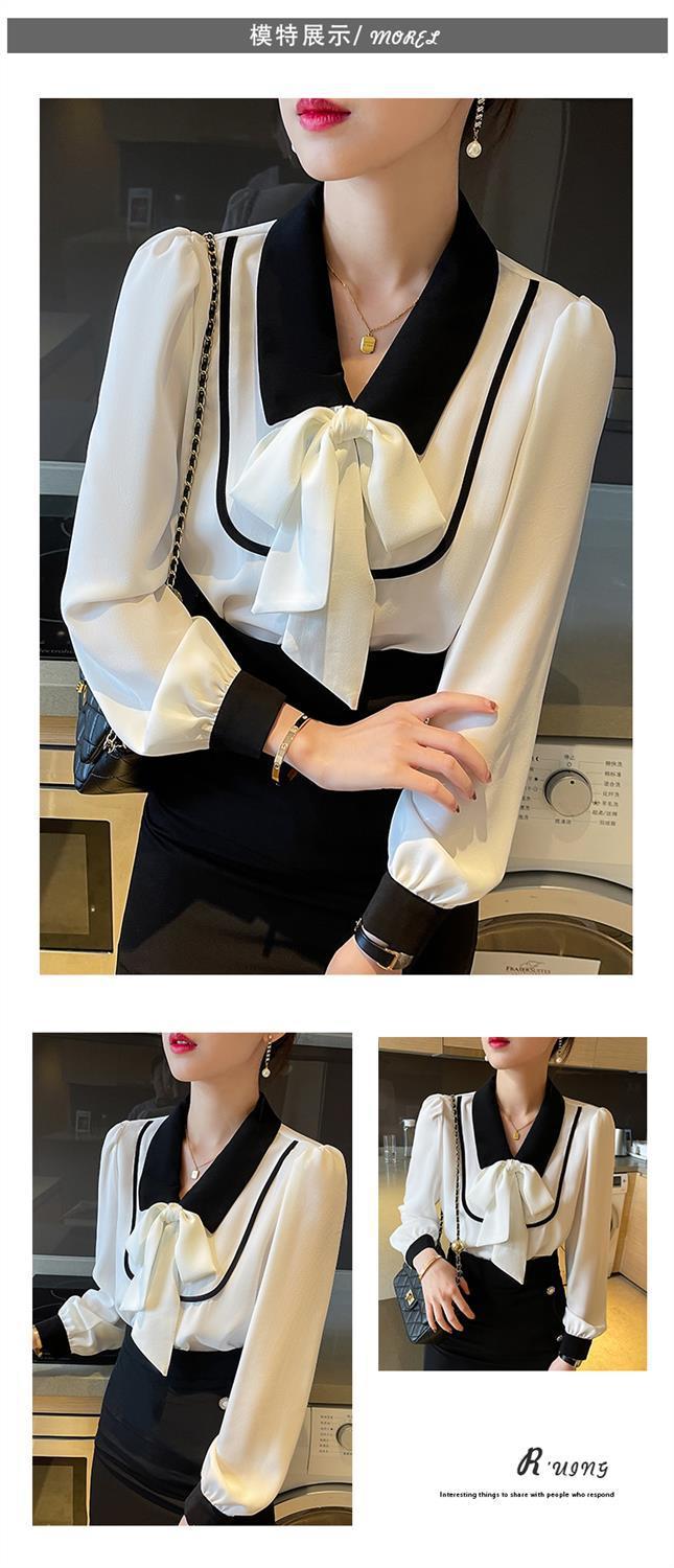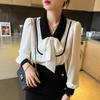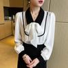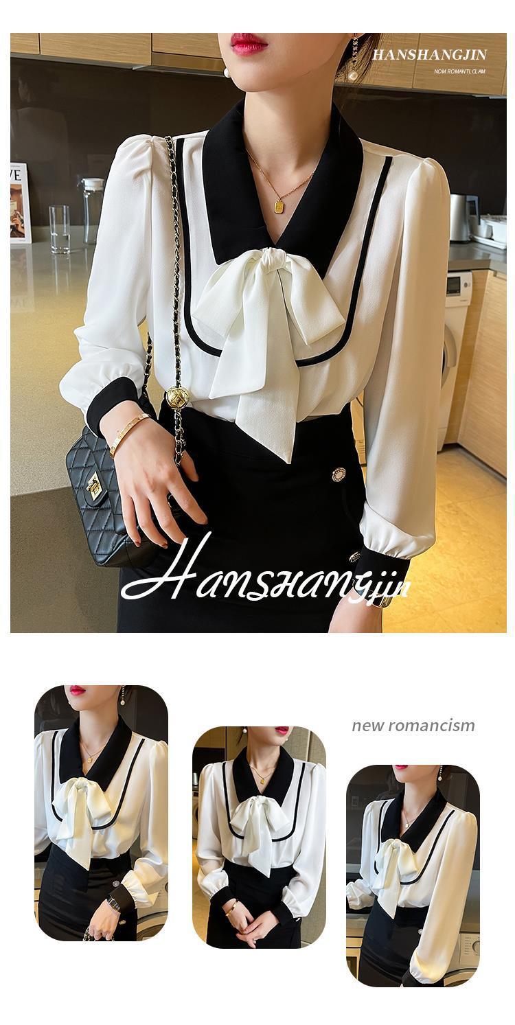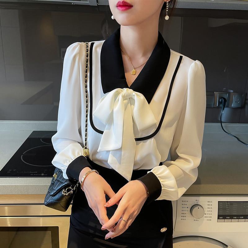 Primavera 2025 Nueva Blusa de Mujer Estilo Primavera Temprana Lazo Camisa Blanca de Mujer Chifón de Alta Gama Camisa Francesa