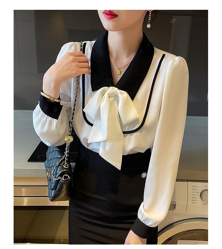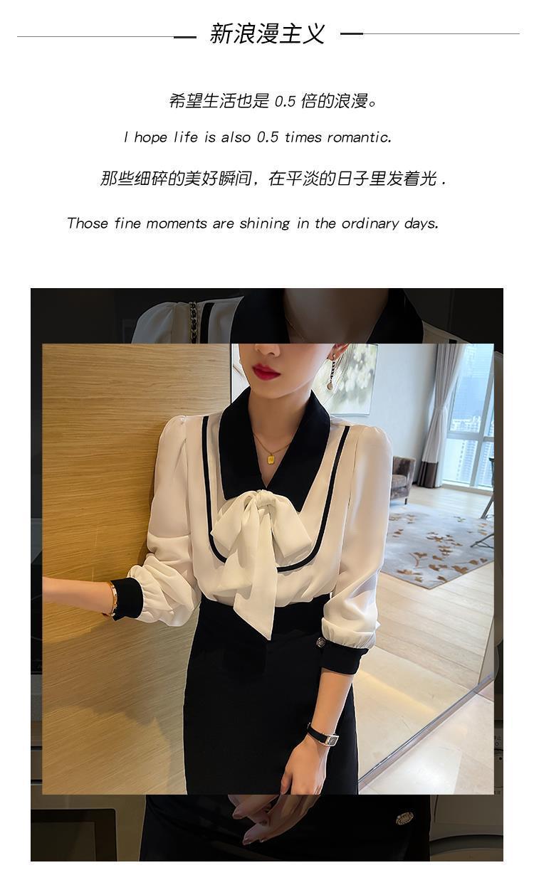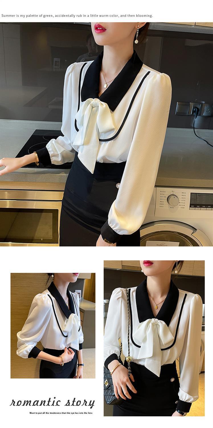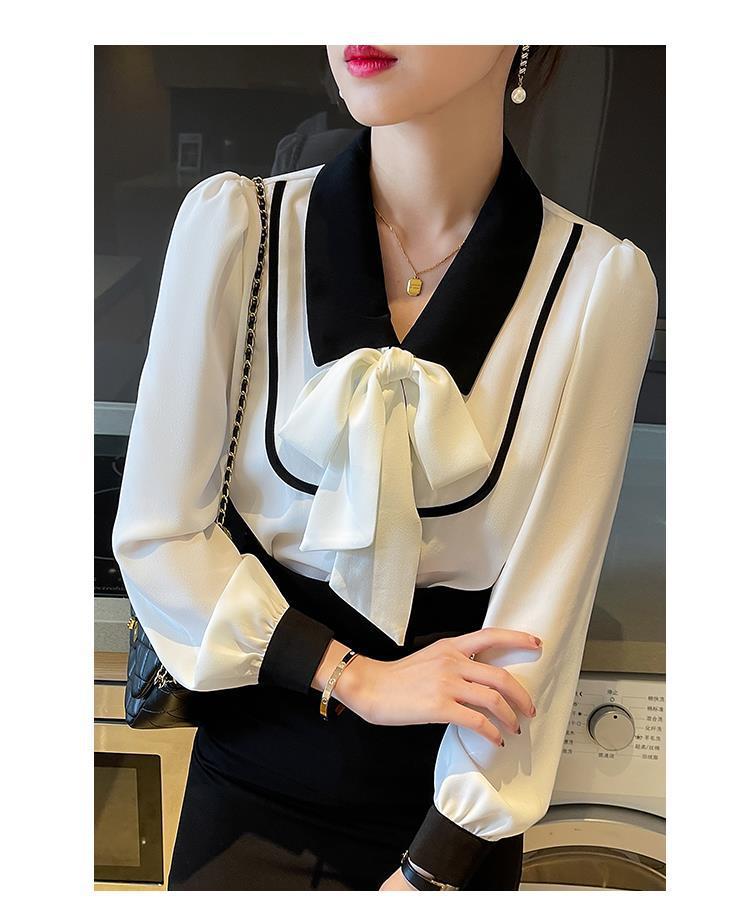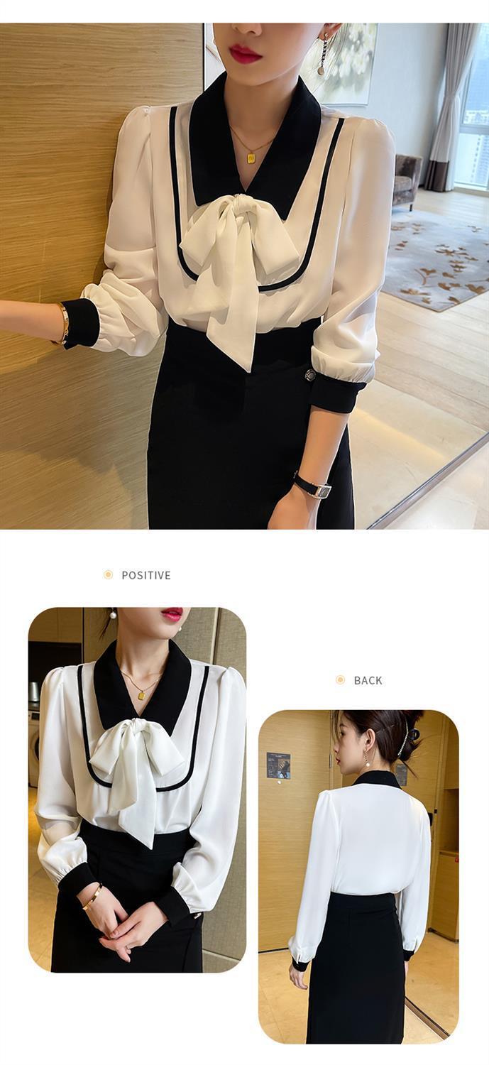 Primavera 2025 Nueva Blusa de Mujer Estilo Primavera Temprana Lazo Camisa Blanca de Mujer Chifón de Alta Gama Camisa Francesa