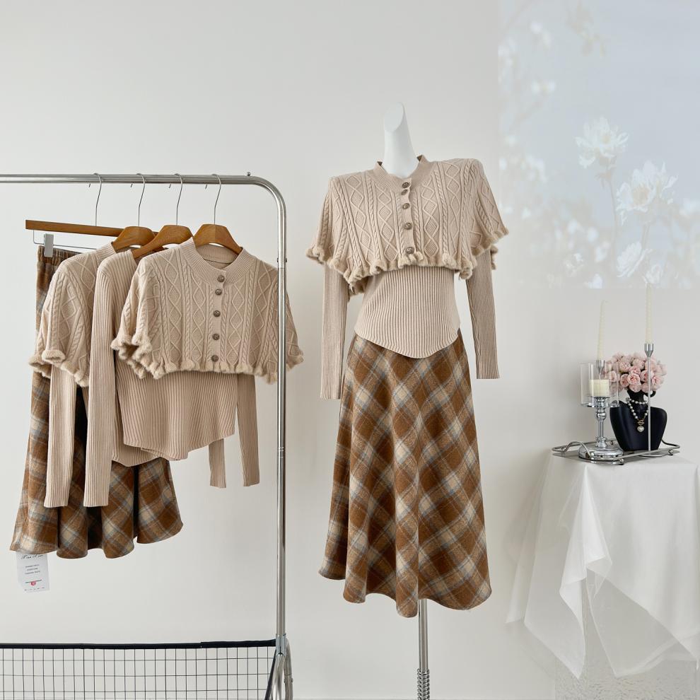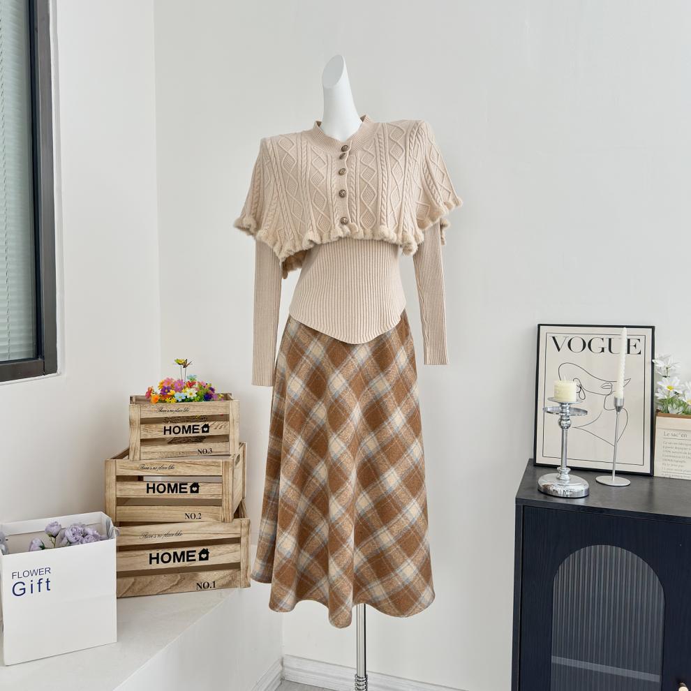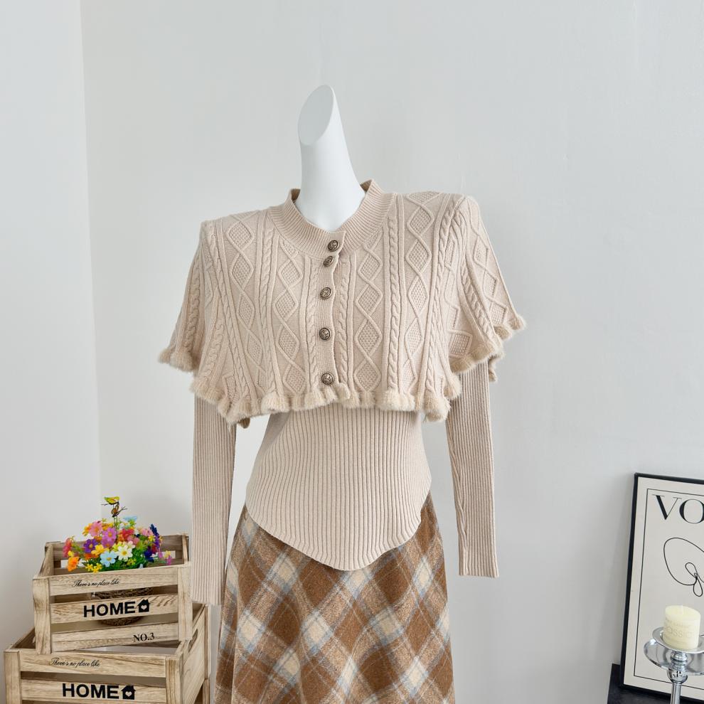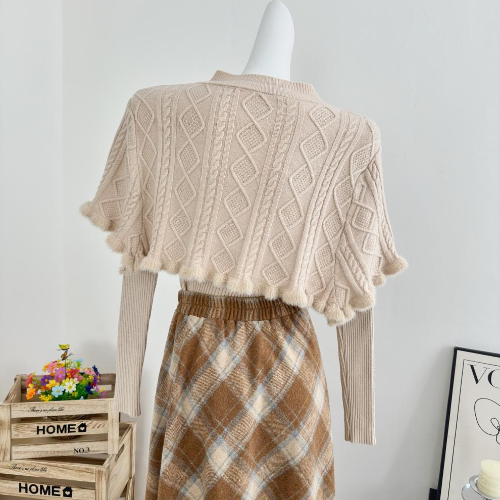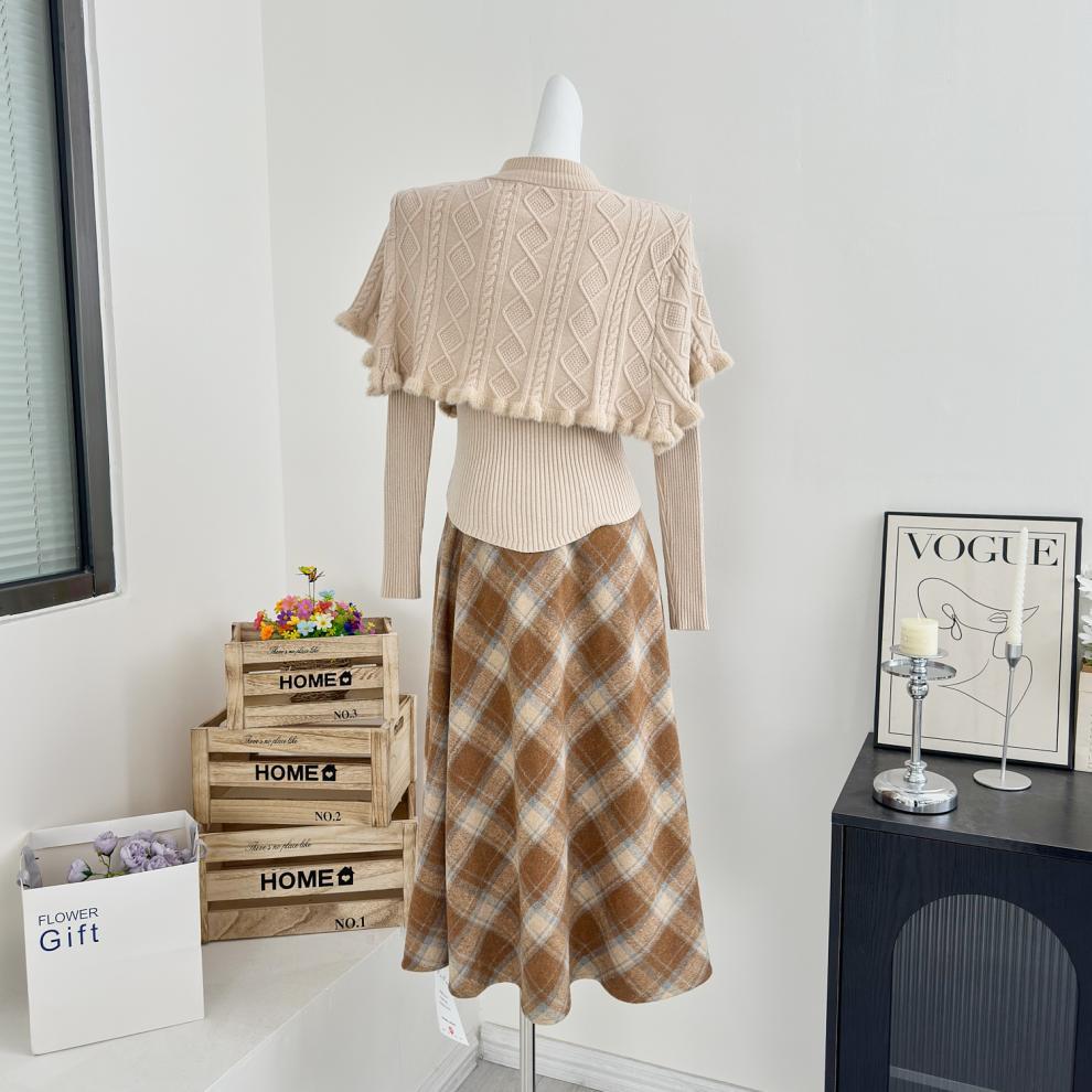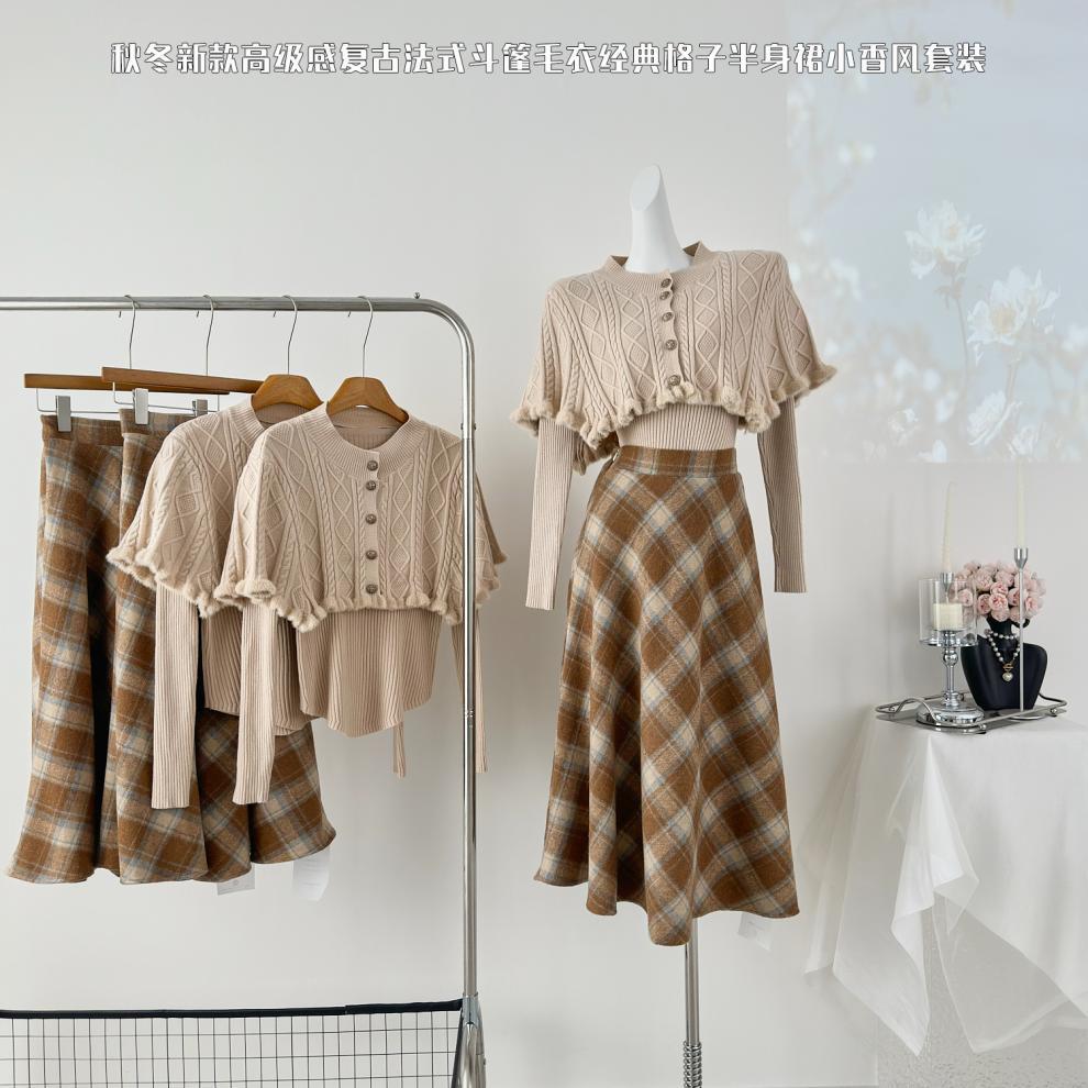 Vestido suéter tipo capa estilo niña rica francesa para mujer otoño e invierno 2025 nuevo conjunto de alta gama estilo Chanel para persona pequeña