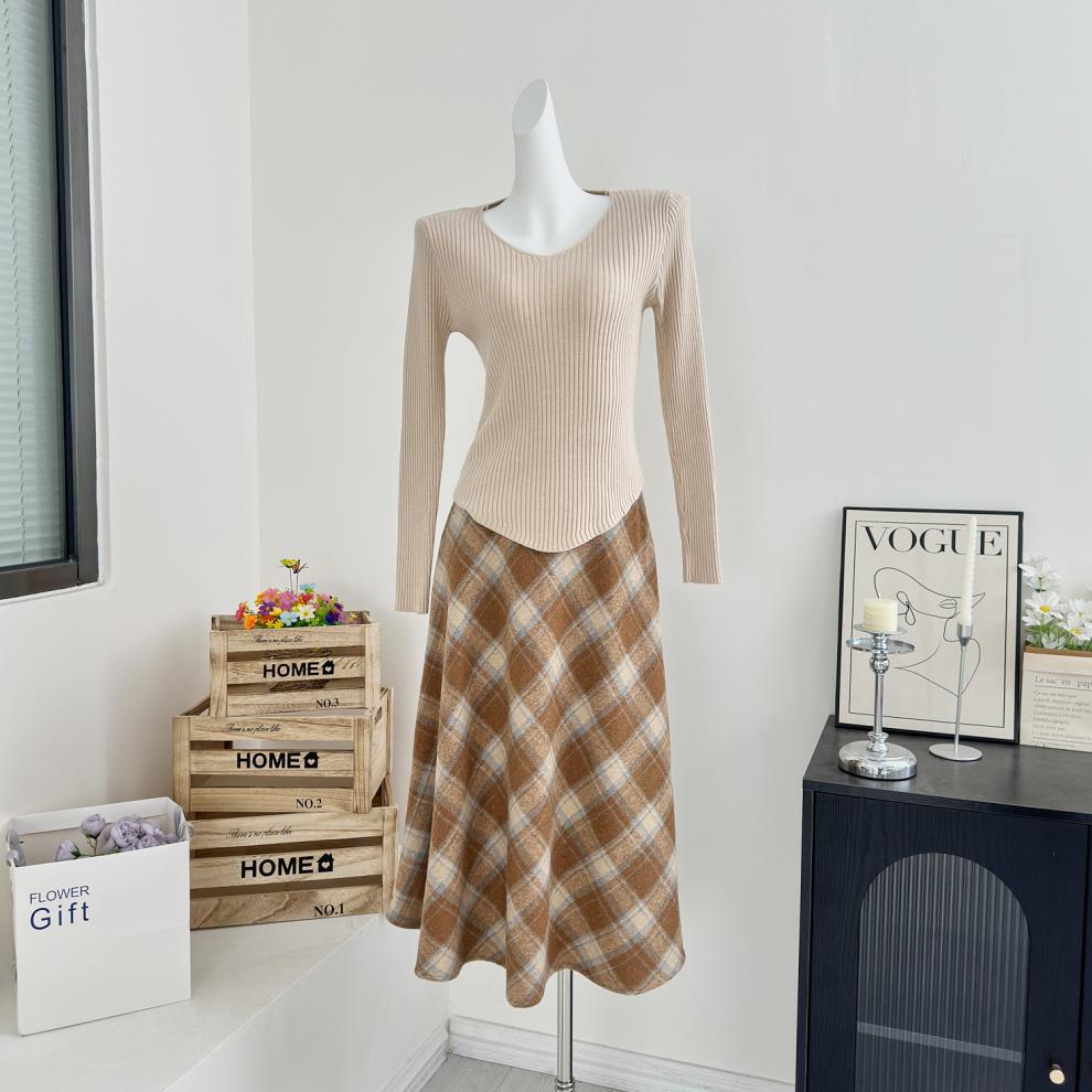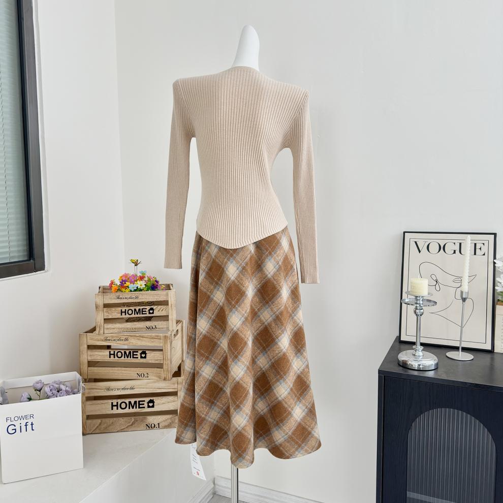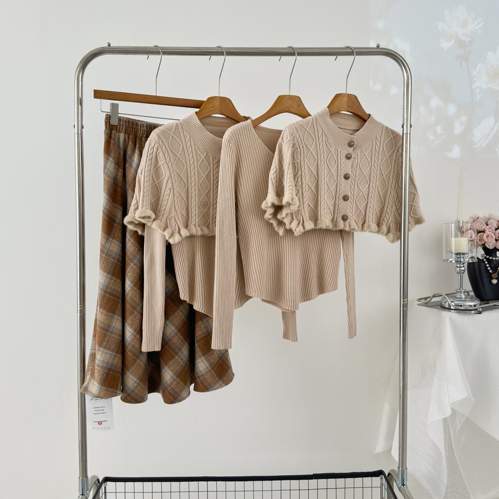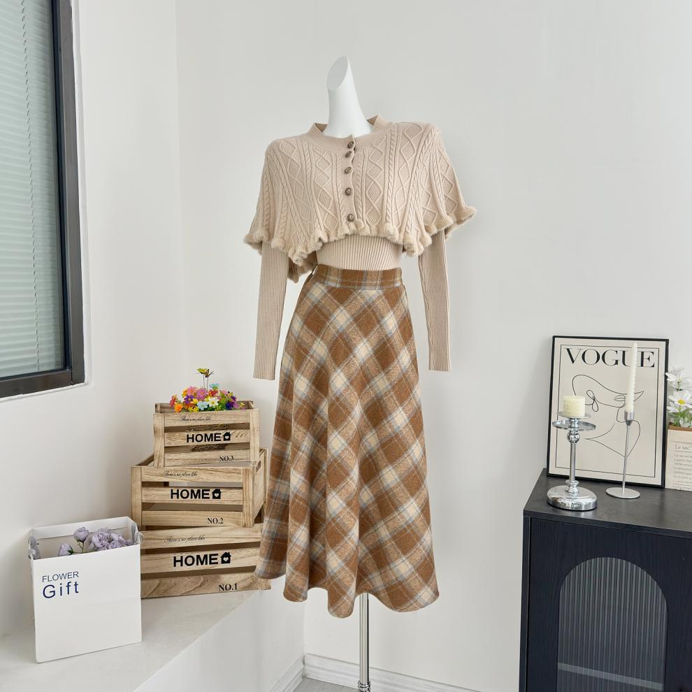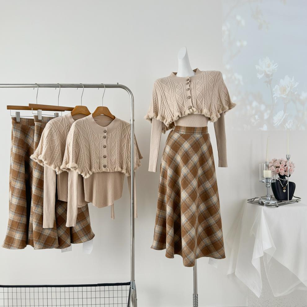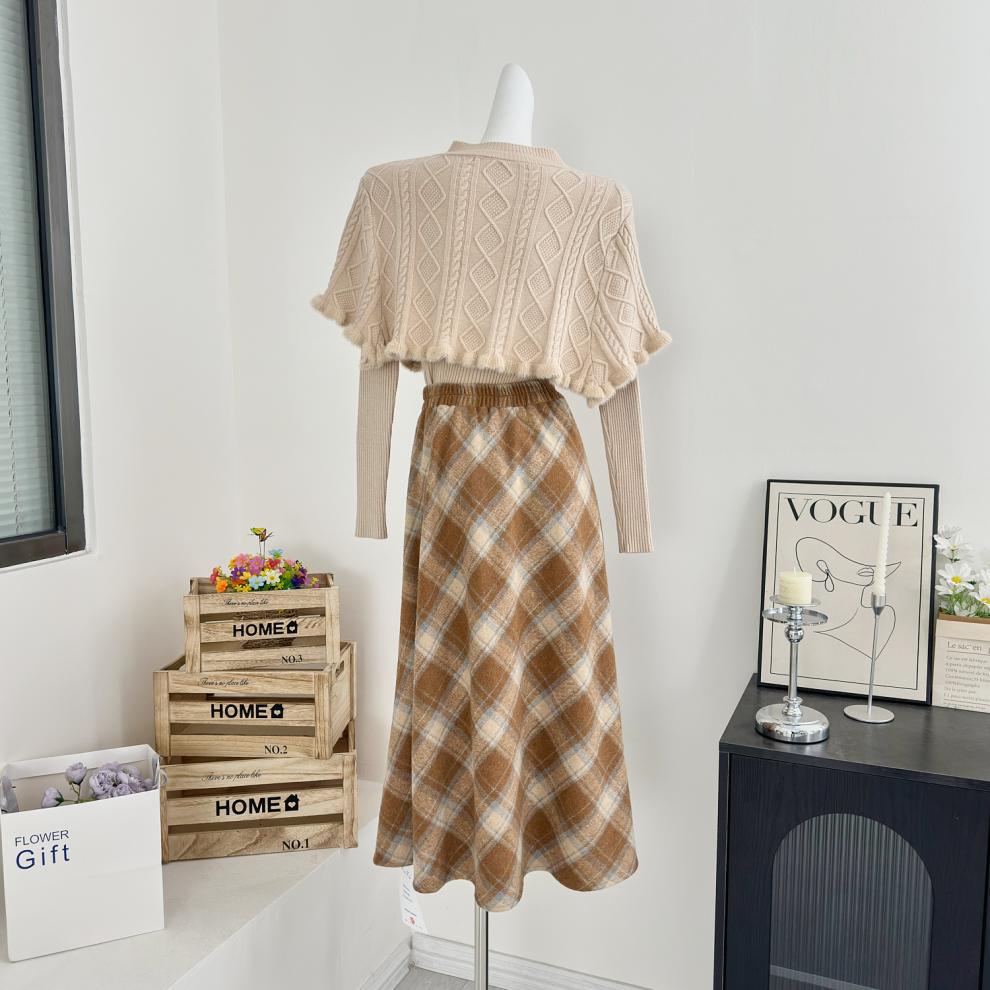 Vestido suéter tipo capa estilo niña rica francesa para mujer otoño e invierno 2025 nuevo conjunto de alta gama estilo Chanel para persona pequeña