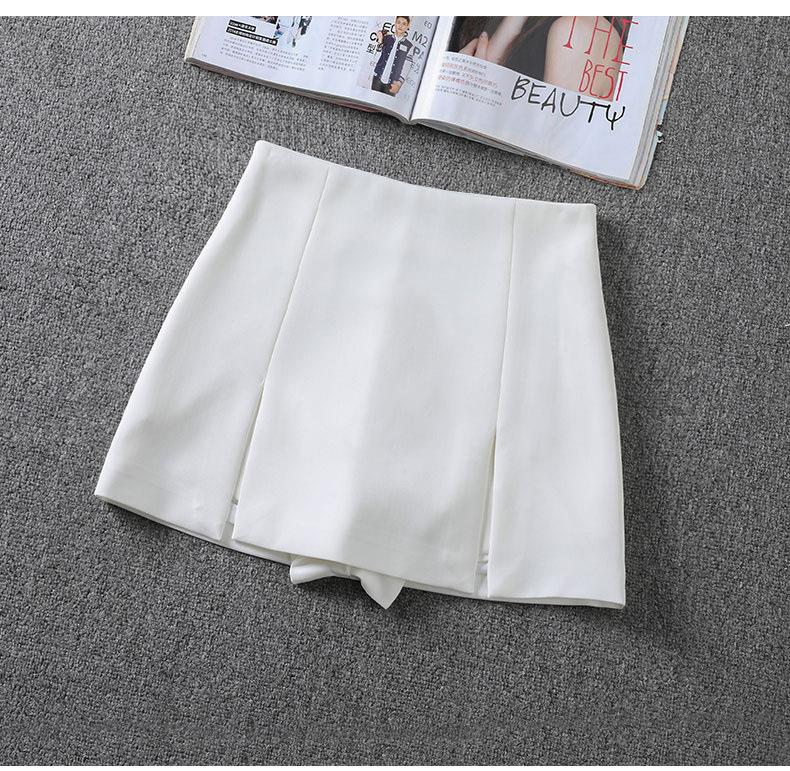Falda de Abertura de Cintura Alta para Mujer 2022 Primavera y Verano Nueva Moda Versátil Culottes Anti-Exposición Falda Corta Negra Línea A