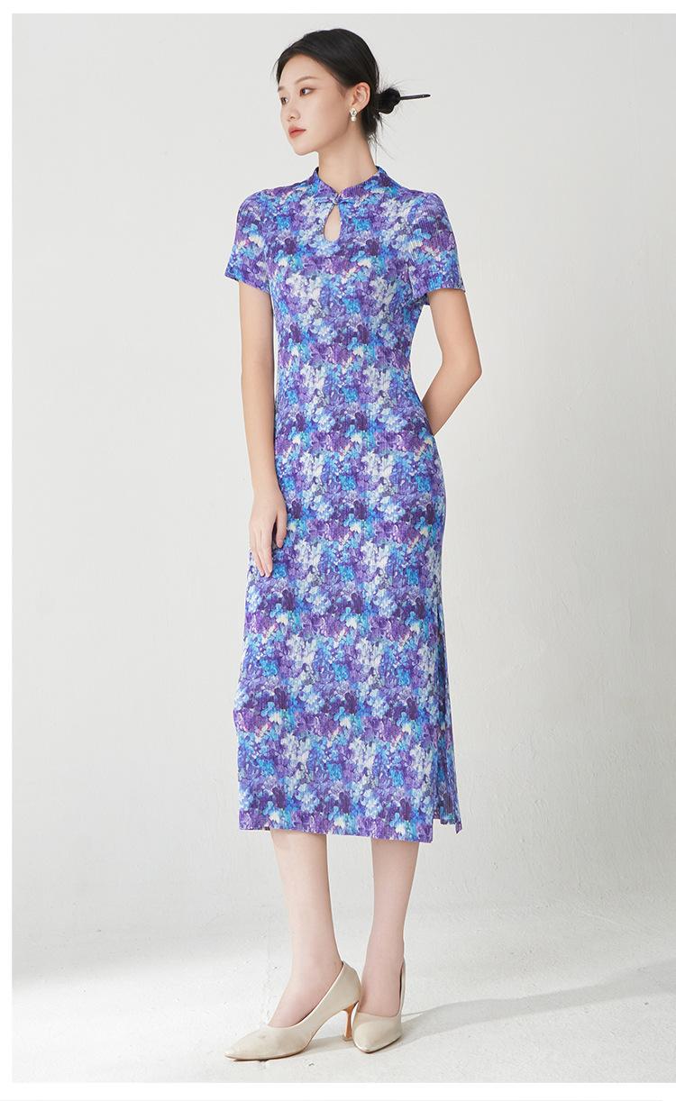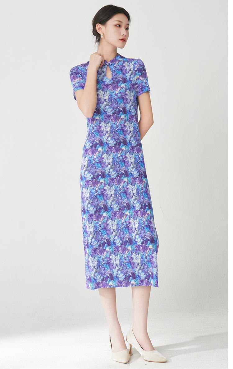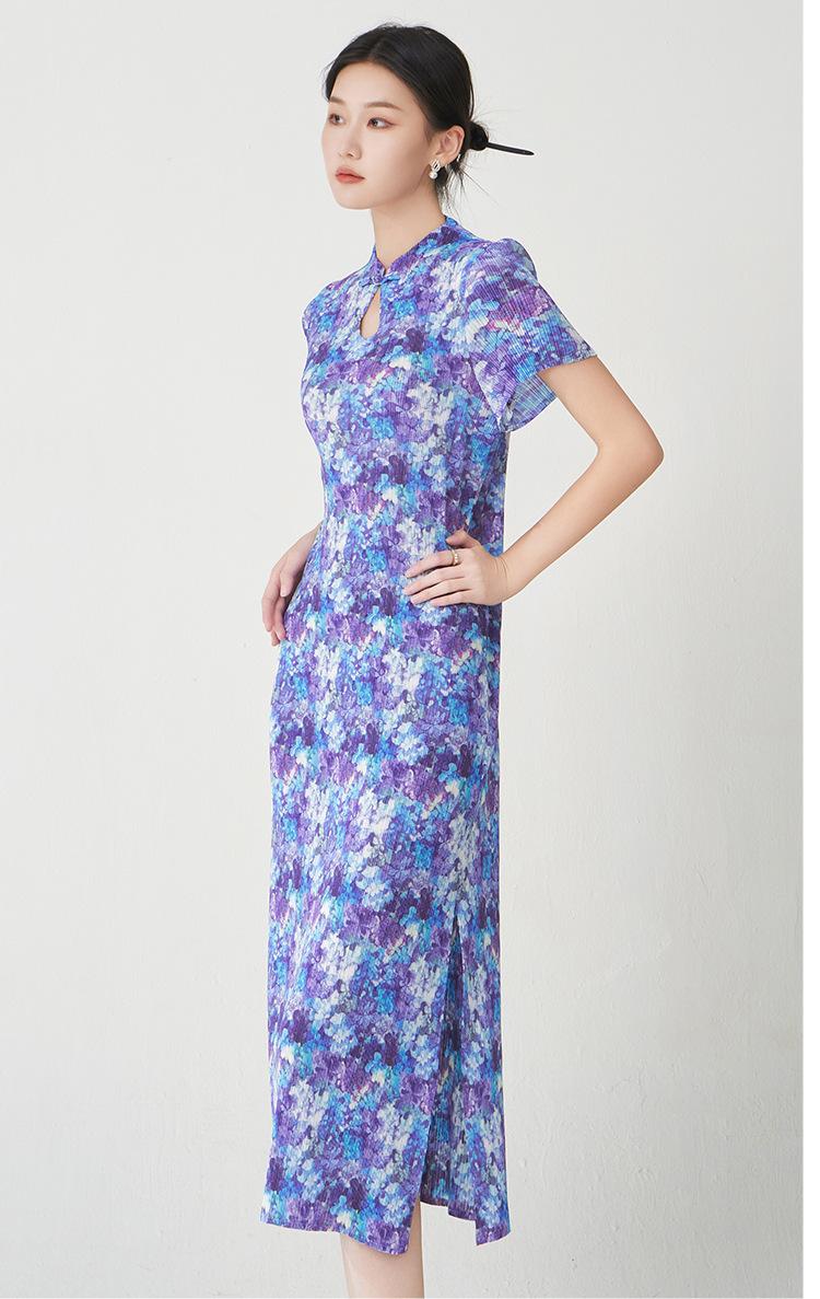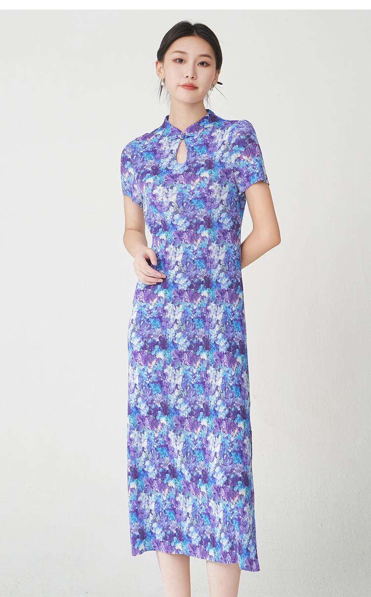 Vestido Plisado Mujer Verano 2025 Nuevo Estampado de Alta Gama Manga Corta Abertura Nueva Versión China Mejorada Elegante Cheongsam