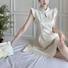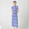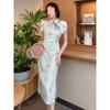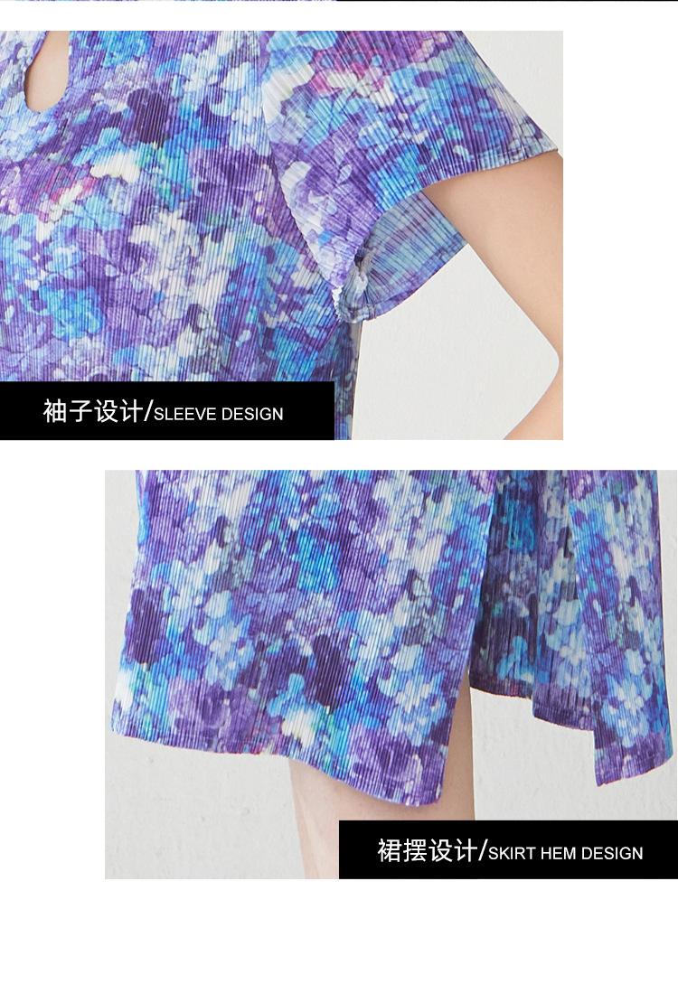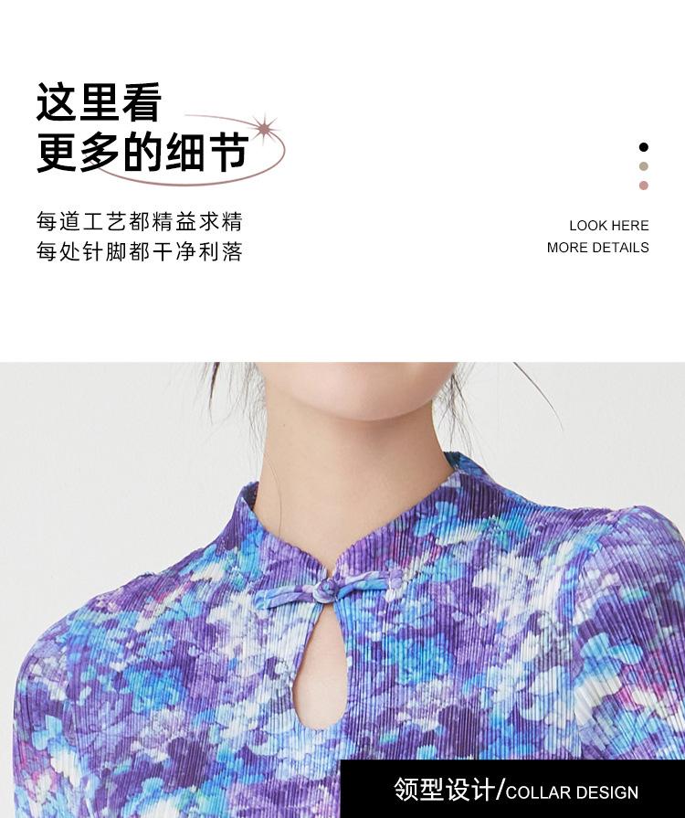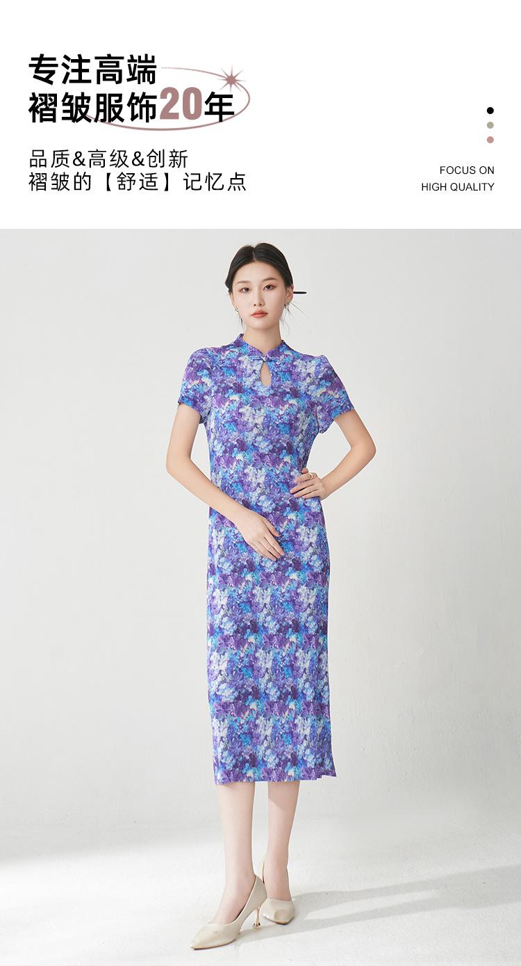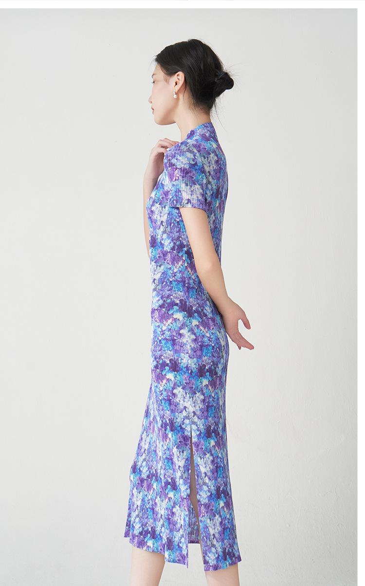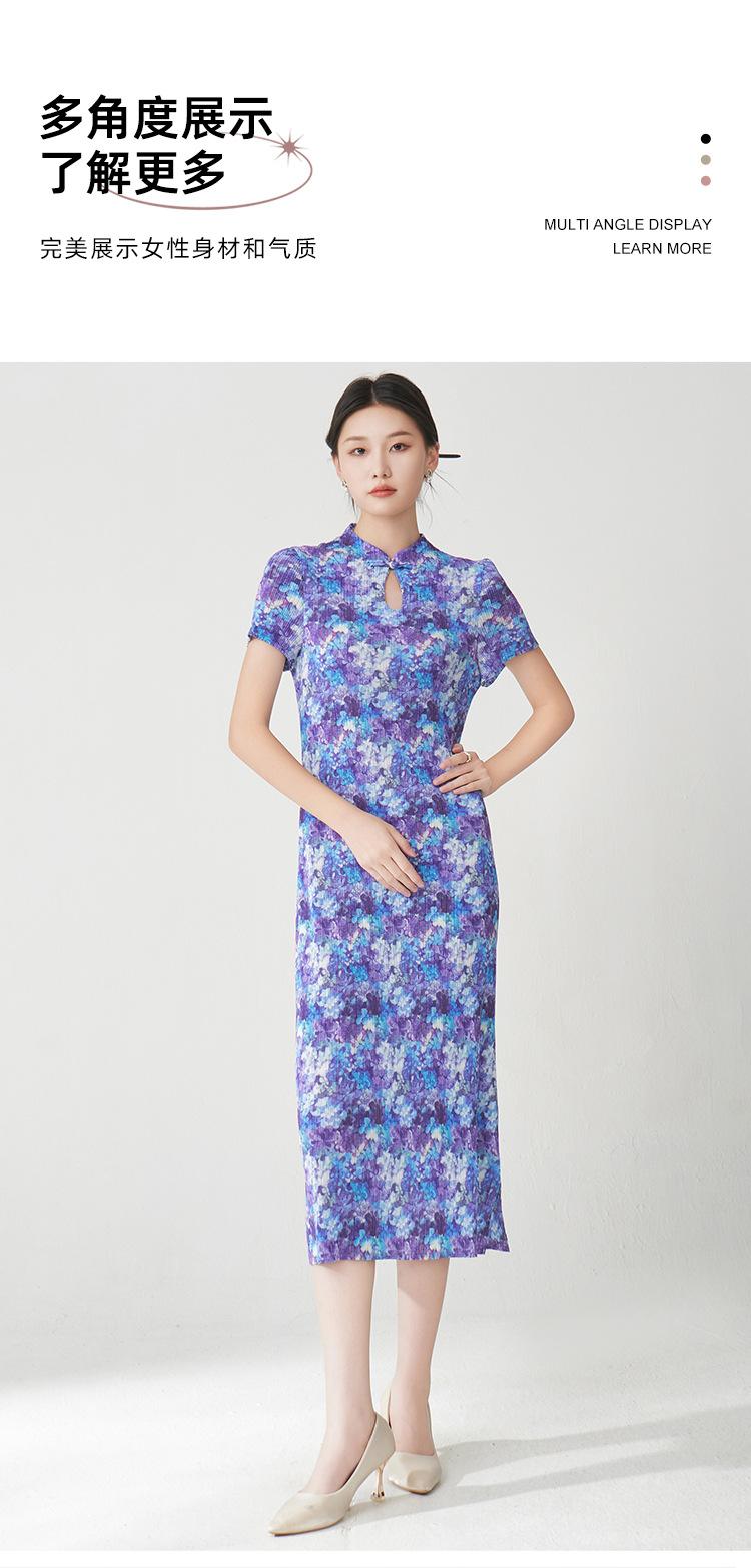 Vestido Plisado Mujer Verano 2025 Nuevo Estampado de Alta Gama Manga Corta Abertura Nueva Versión China Mejorada Elegante Cheongsam
