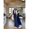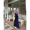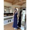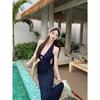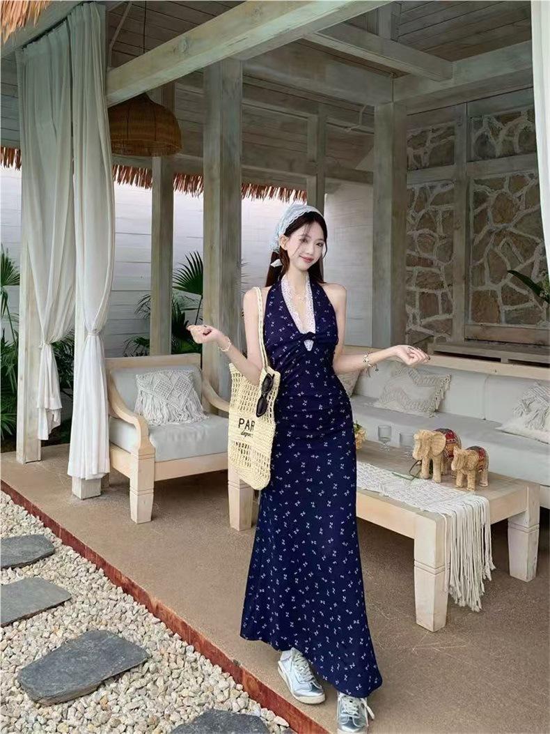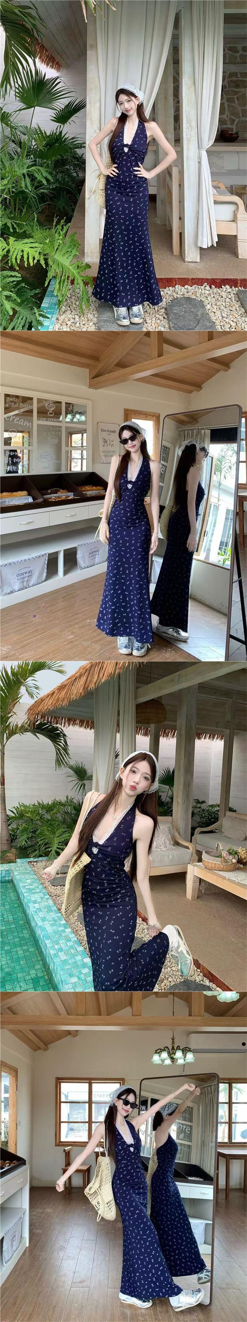 Floral Verano Nuevo Vestido Halter Encaje Patchwork Recorte Mostrar Figura Cubrir Carne Adelgazante Cintura Caderas Cola de Pez Vestido Largo