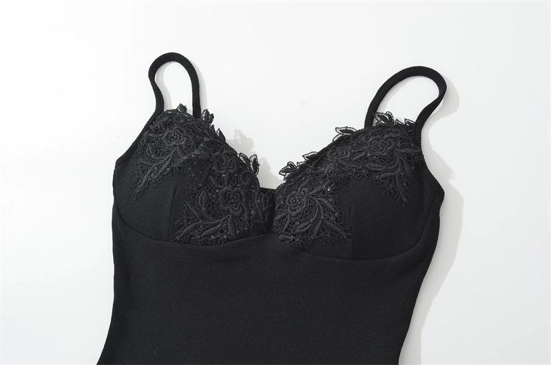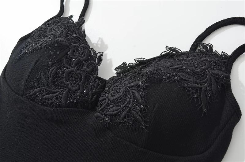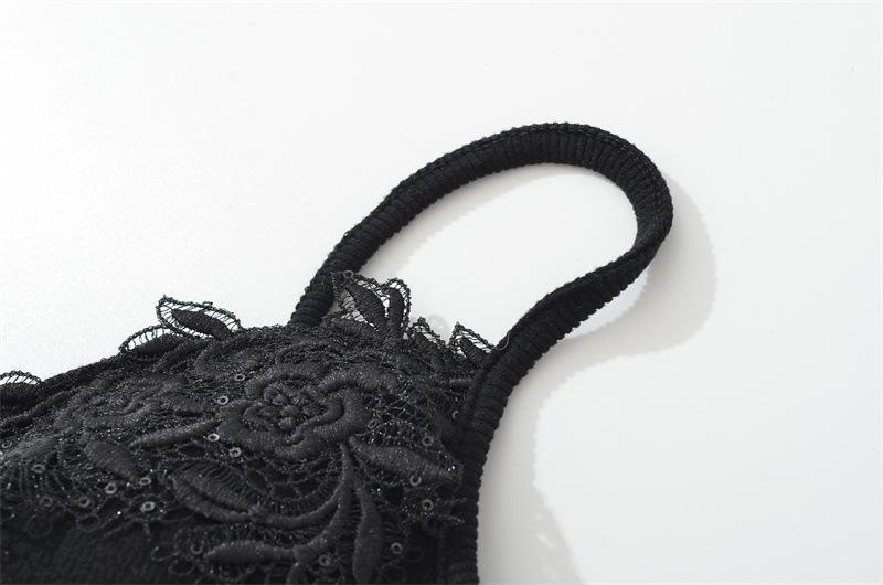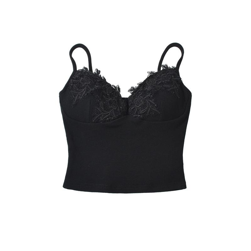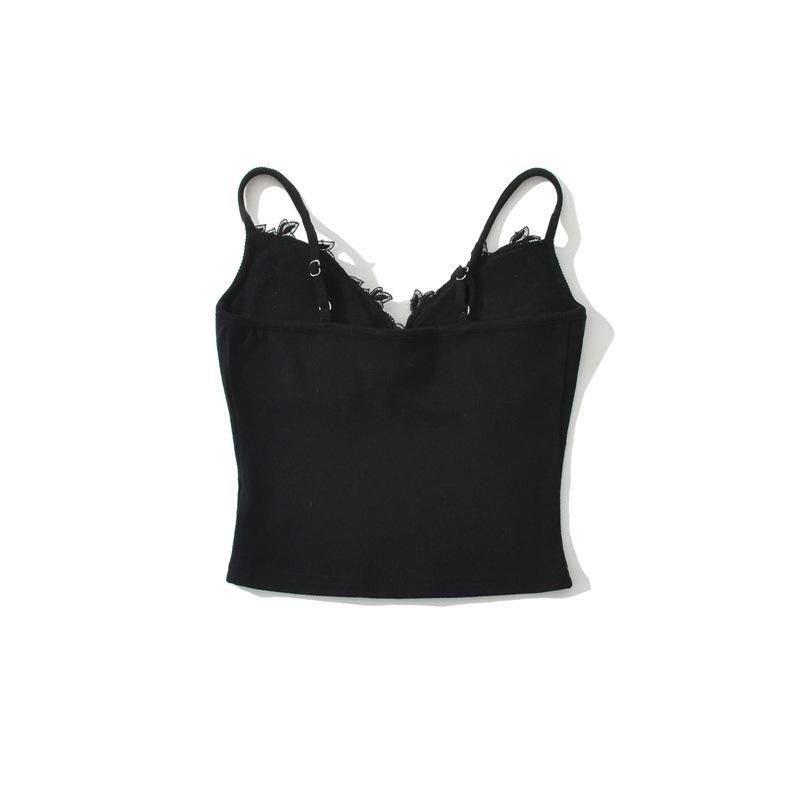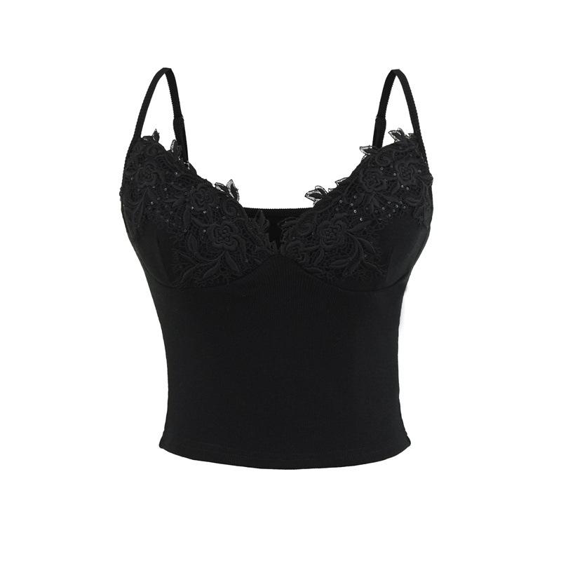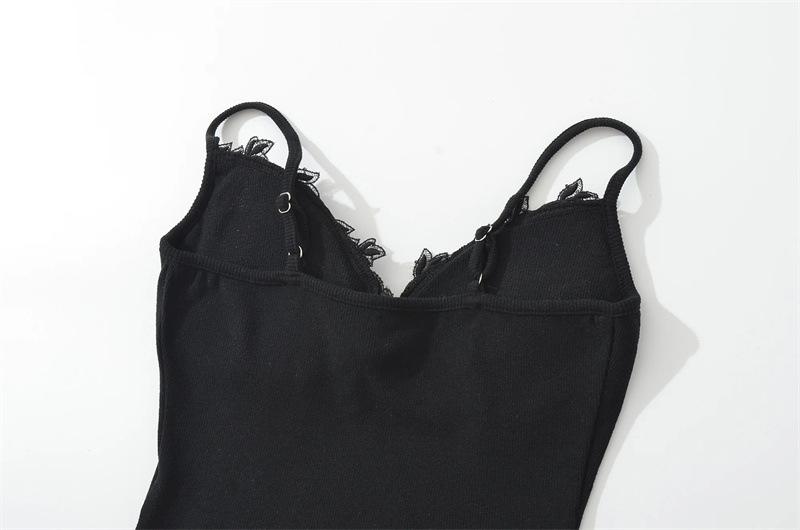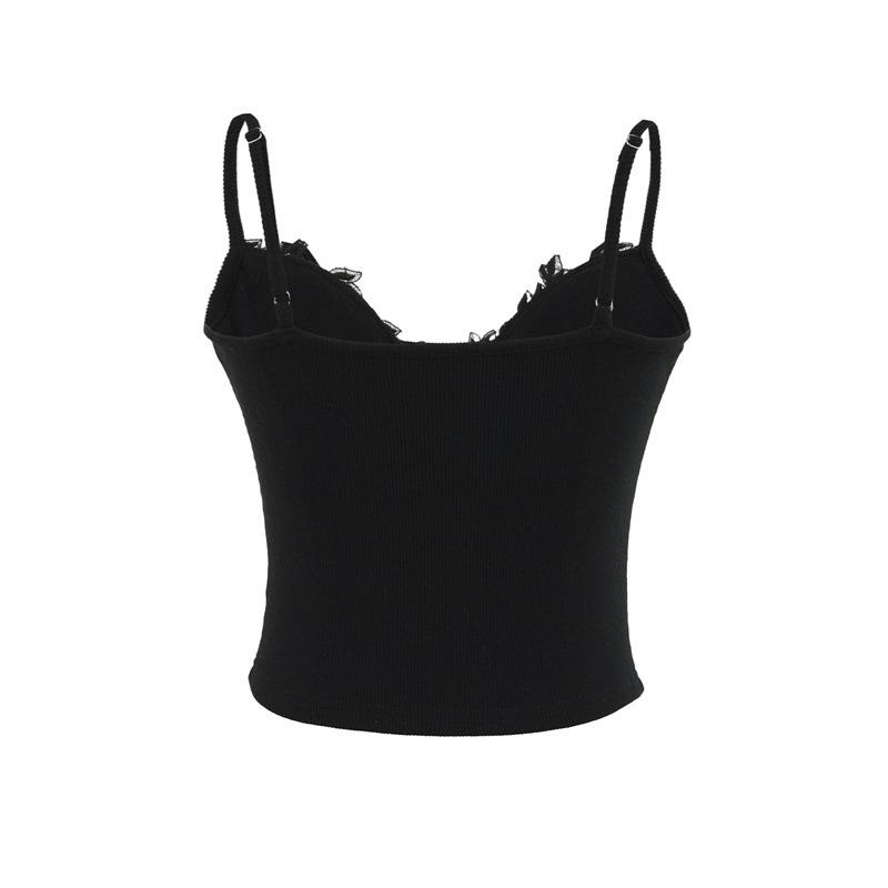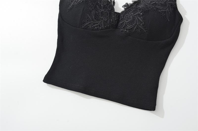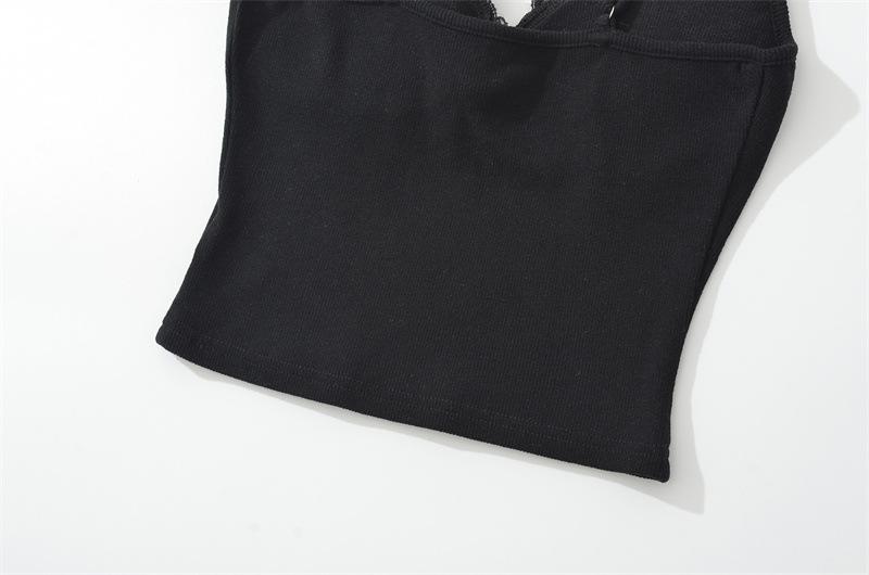 Estilo Lujuria Pura Sexy Cuello en V Encaje Borde Recorte Calado Camisola Verano Nuevo Delgado Corto Sexy Top