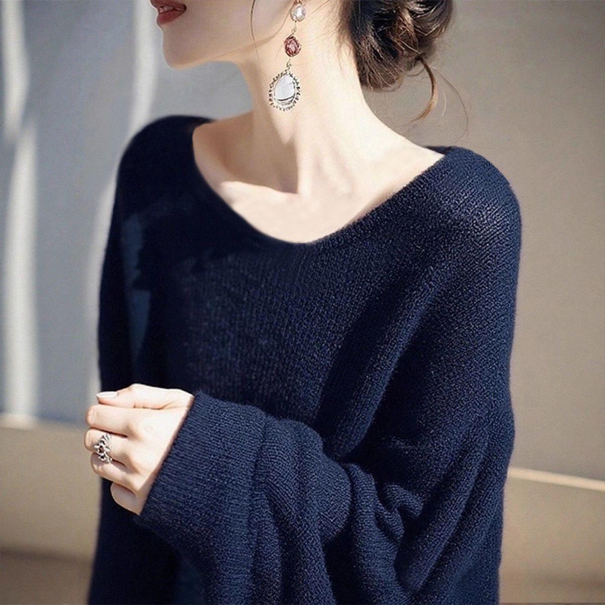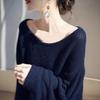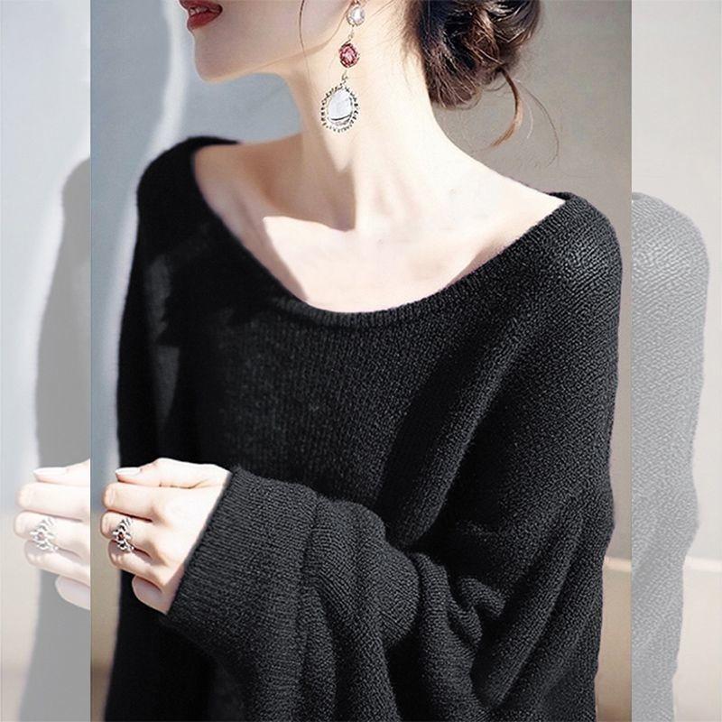 Suéter de Punto de Manga Larga para Desplazamiento Simple para Mujer Otoño/Invierno 2025 Nuevo Estilo Perezoso Estilo Coreano Camiseta Base Top para Mujer