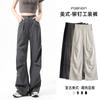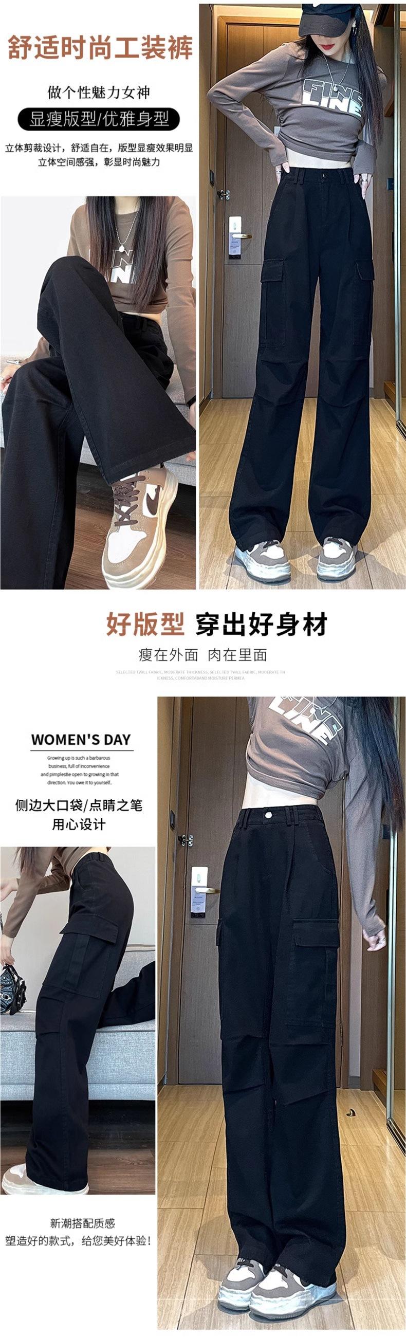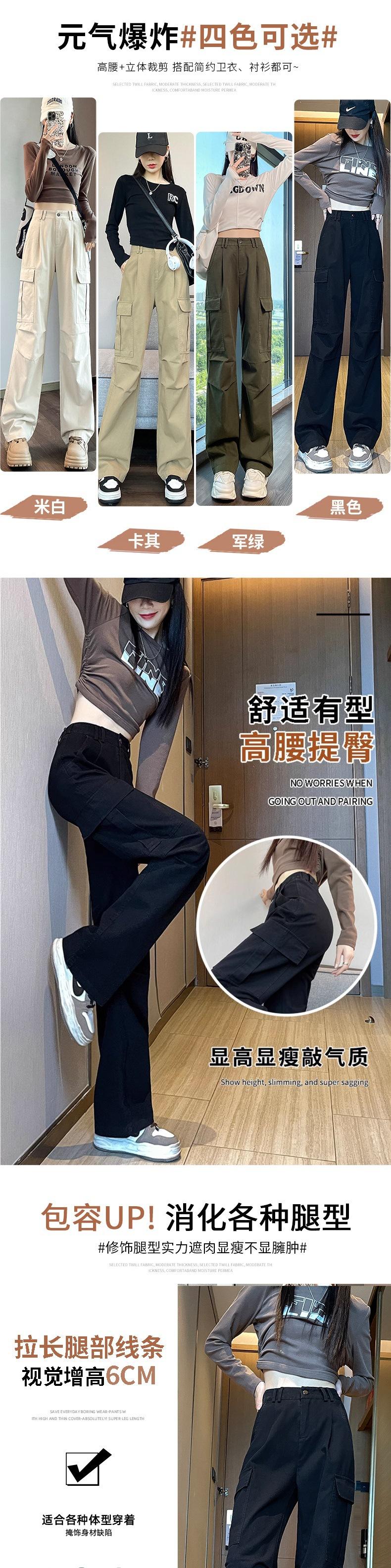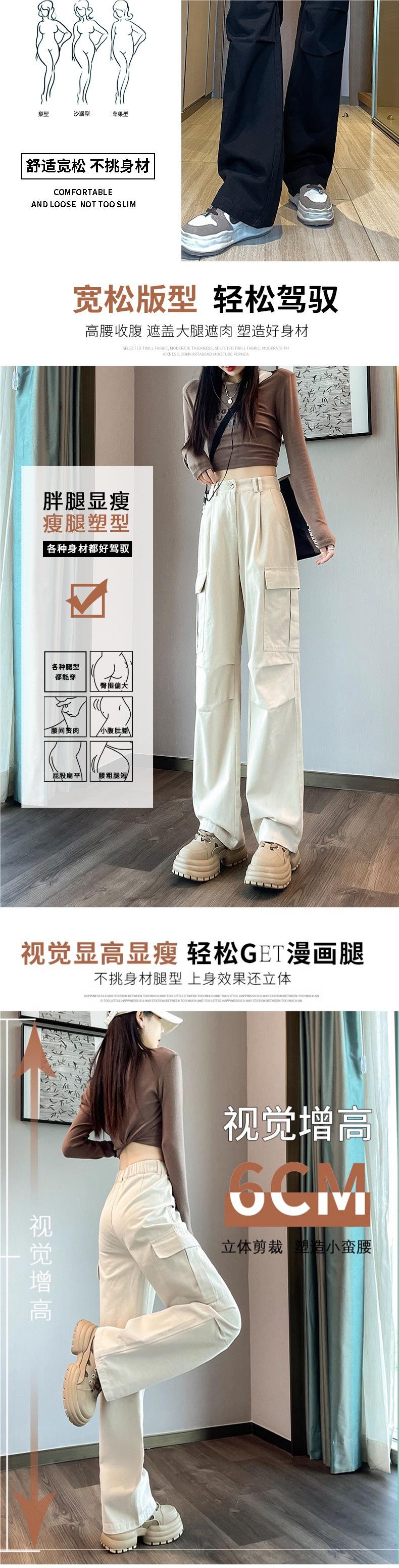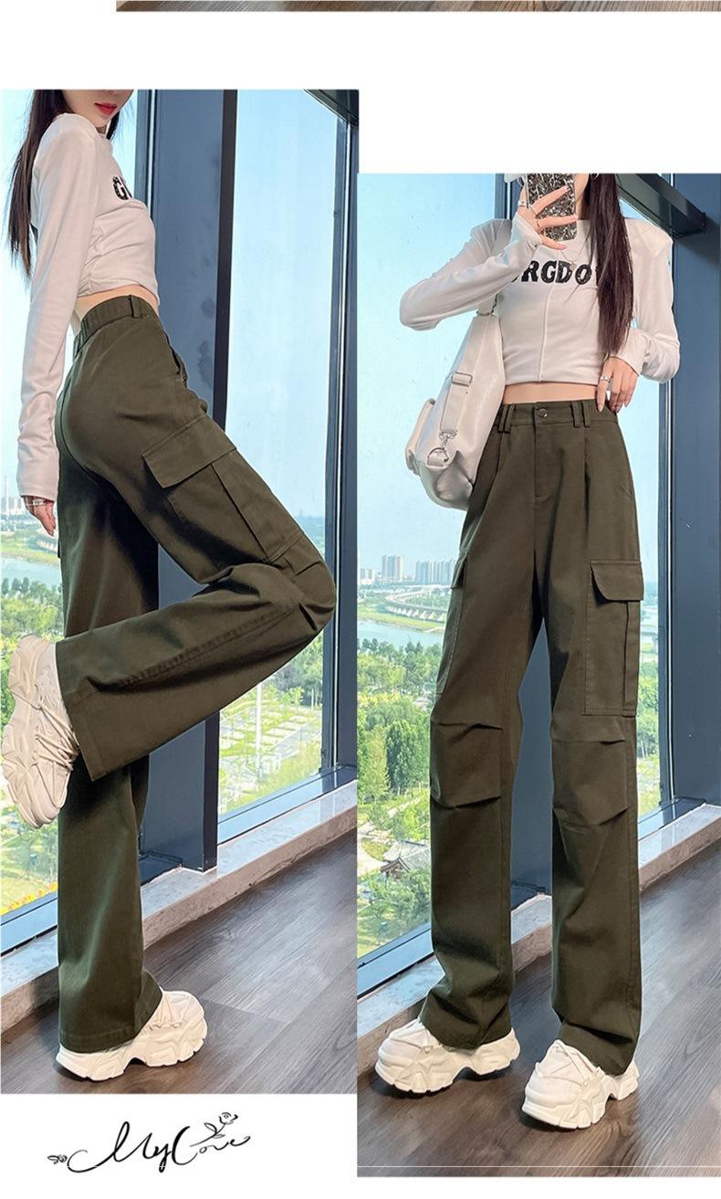 Pantalones Cargo Rectos Americanos para Mujer 2025 Primavera y Otoño Nuevo Cintura Alta Sueltos Casual Petite Pierna Ancha