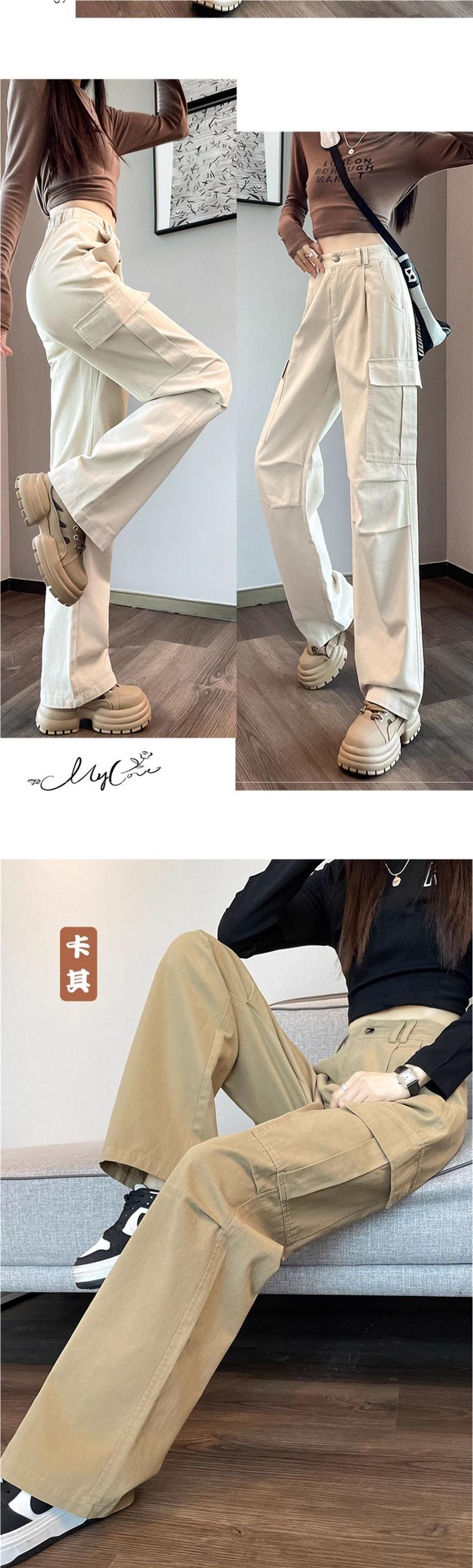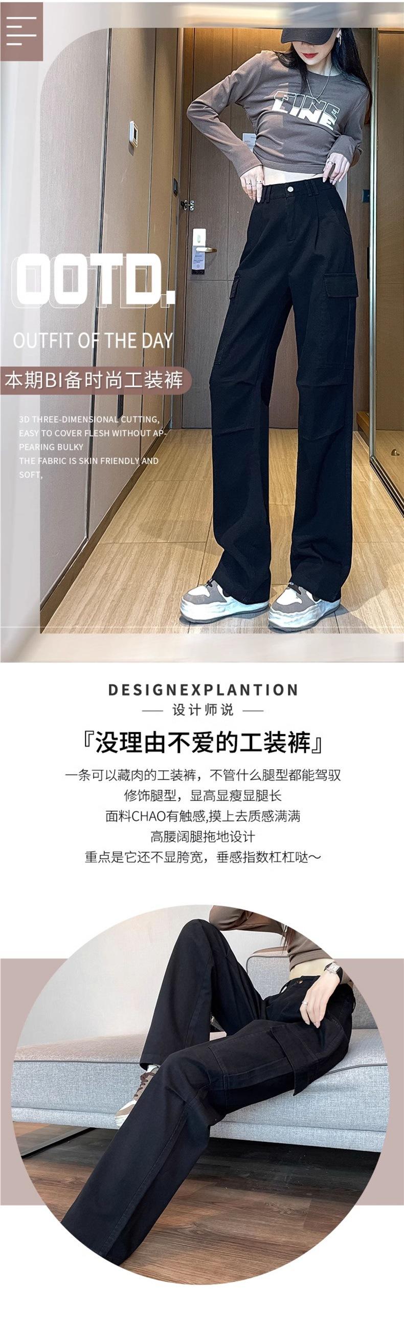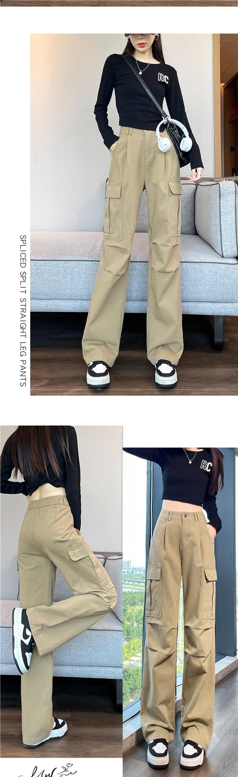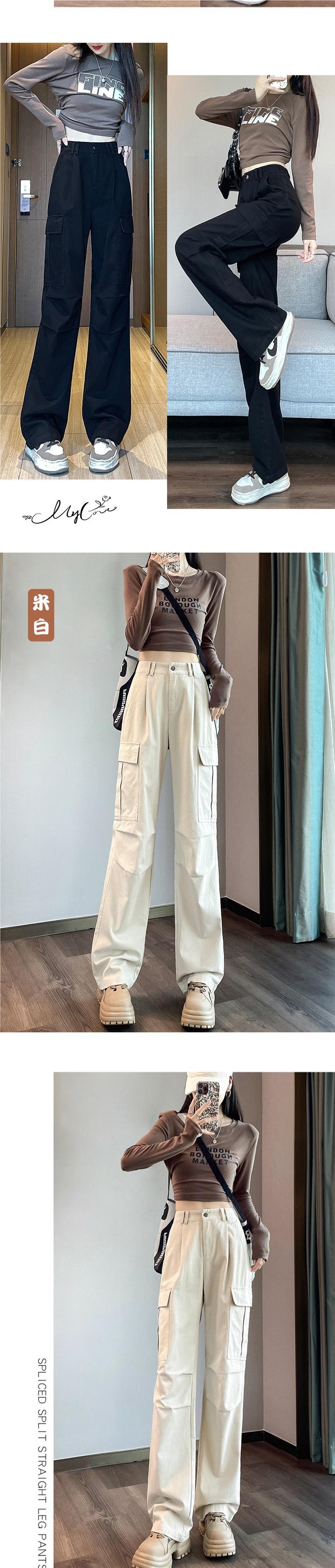Pantalones Cargo Rectos Americanos para Mujer 2025 Primavera y Otoño Nuevo Cintura Alta Sueltos Casual Petite Pierna Ancha
