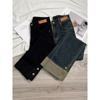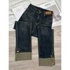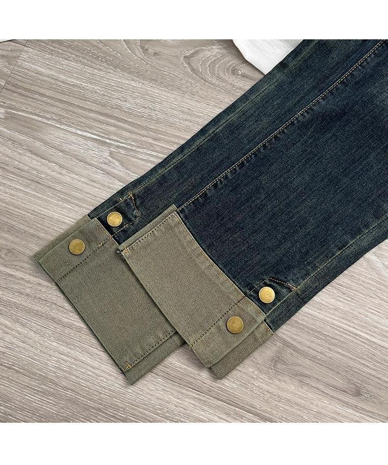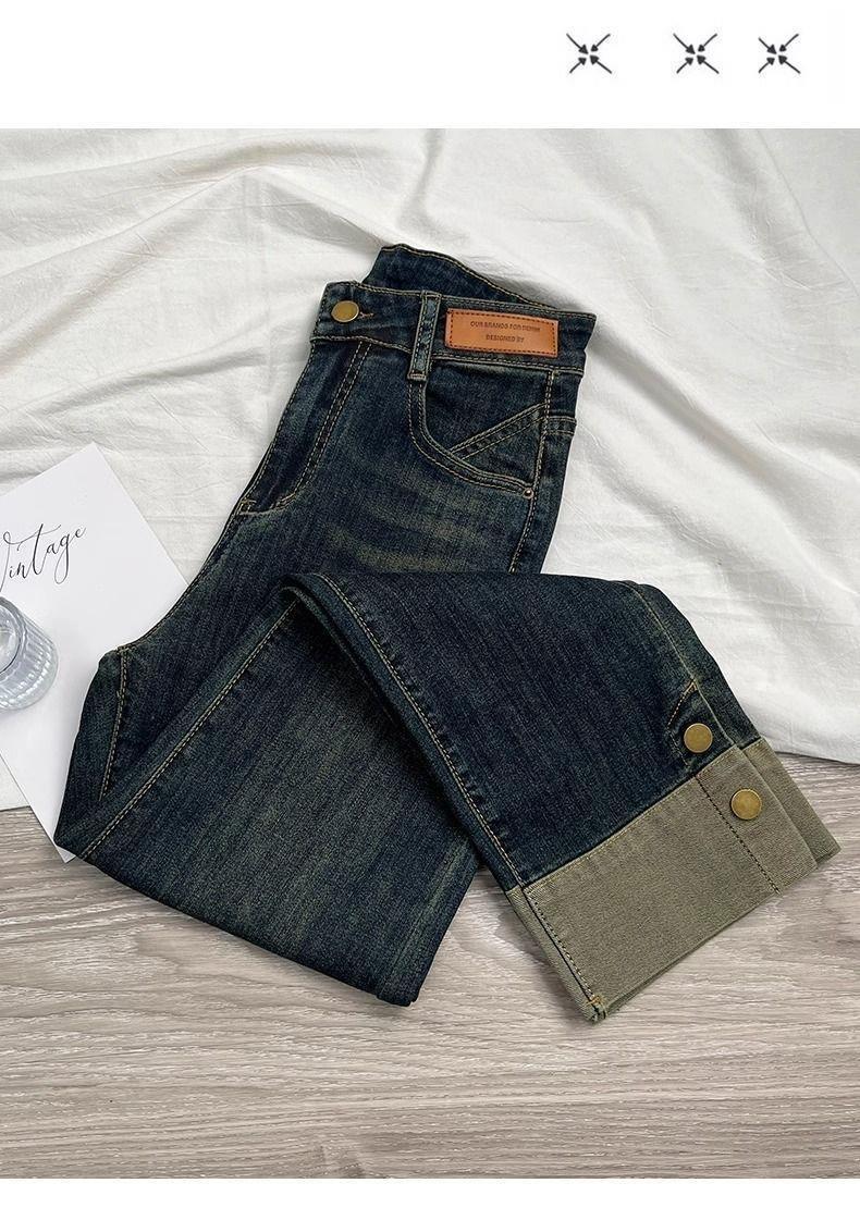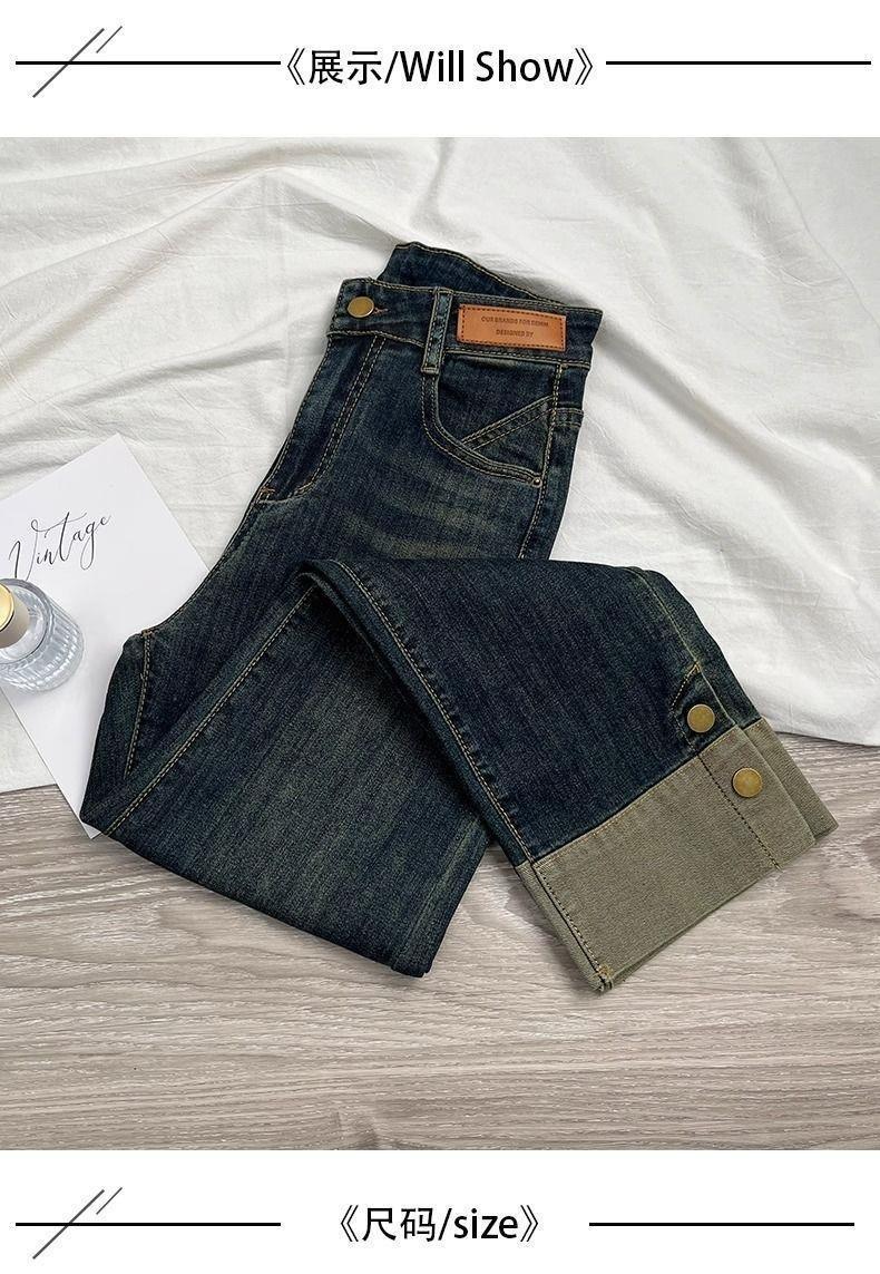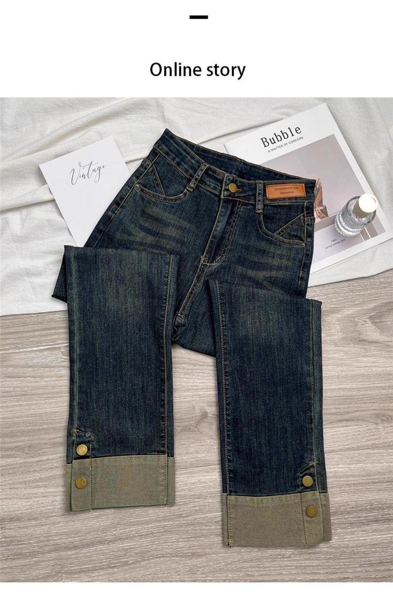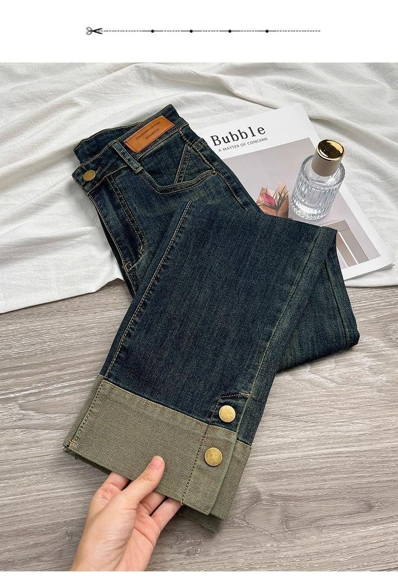 Jeans Patchwork Colorblock Retro Dobladillo Enrollado Cortos Pierna Recta Mujer Primavera Otoño Petite