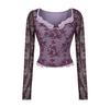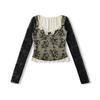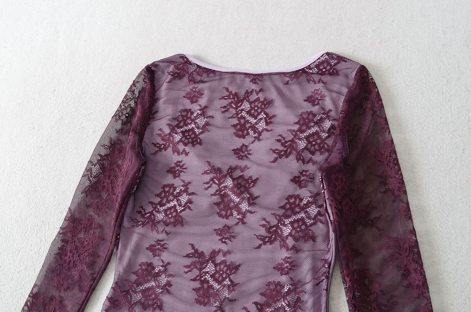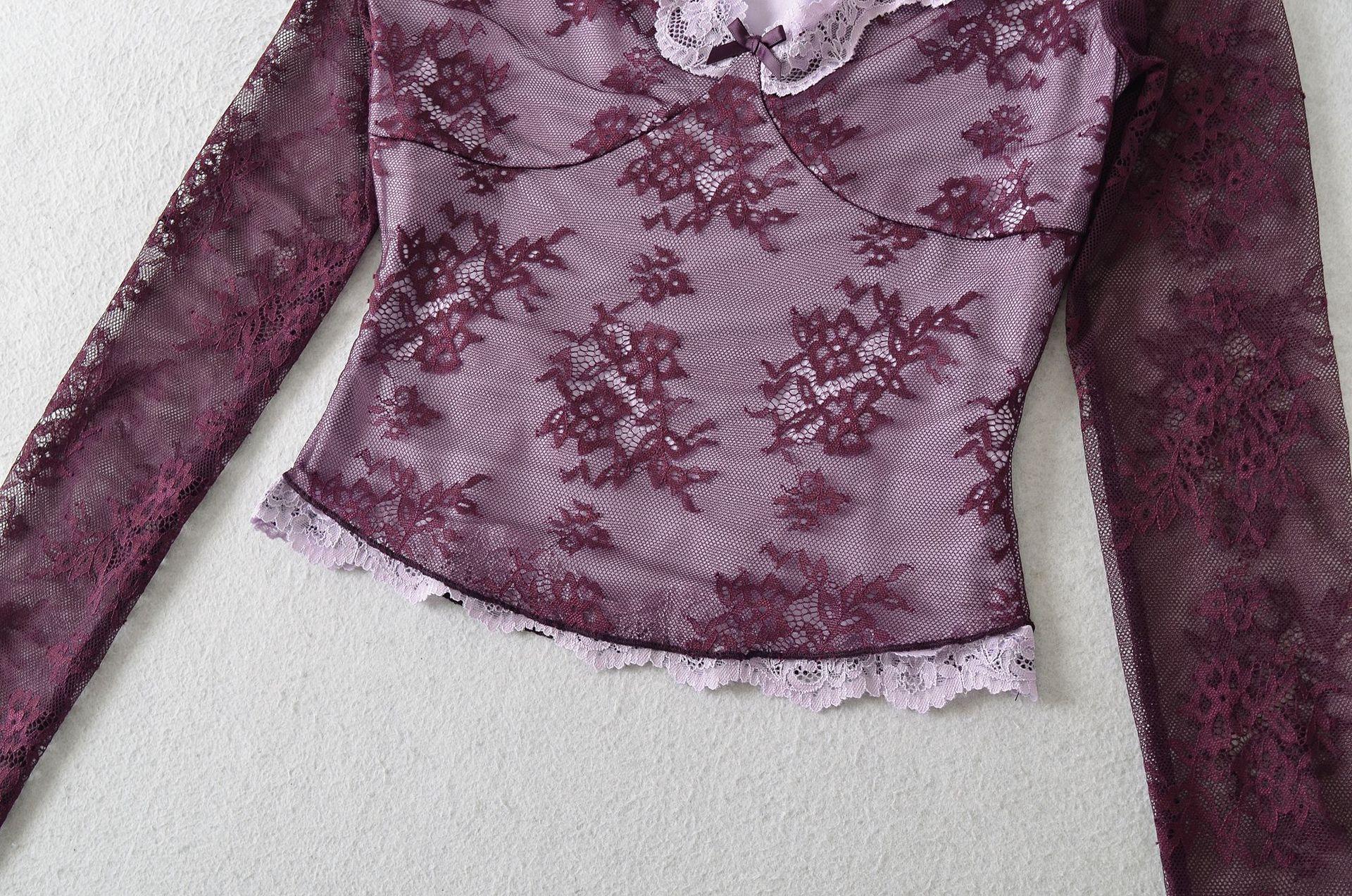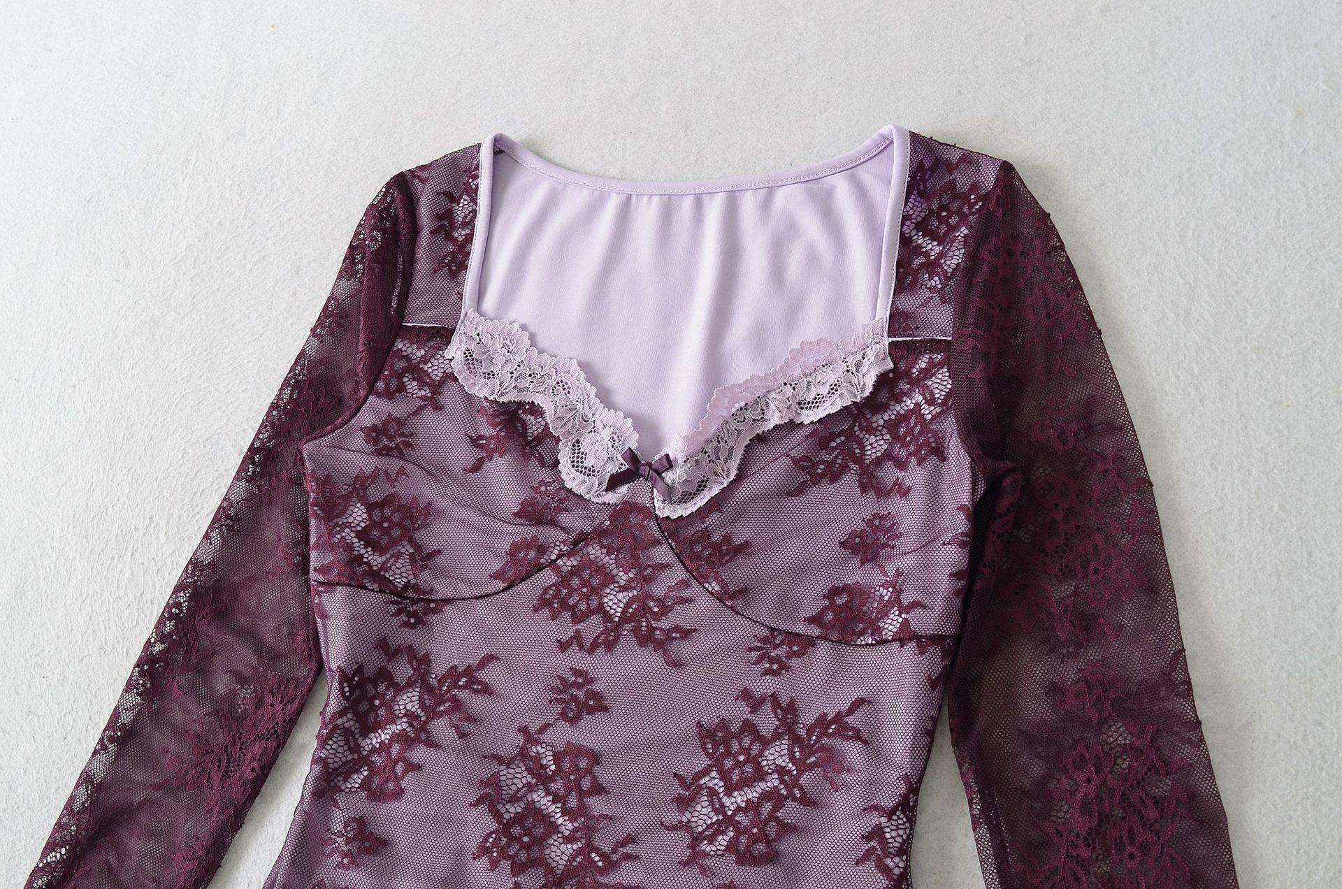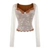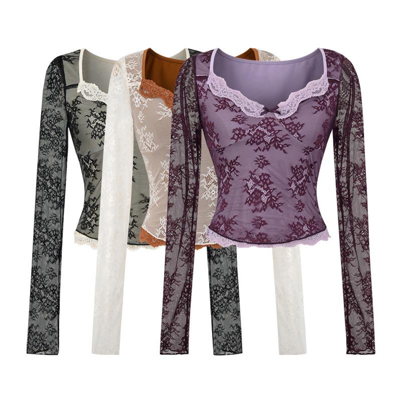 Venta al por mayor de ropa de mujer transfronteriza Estilo europeo y americano 2025 Principios de otoño Nuevo top sexy de manga larga con encaje patchwork y cuello cuadrado para mujer