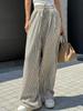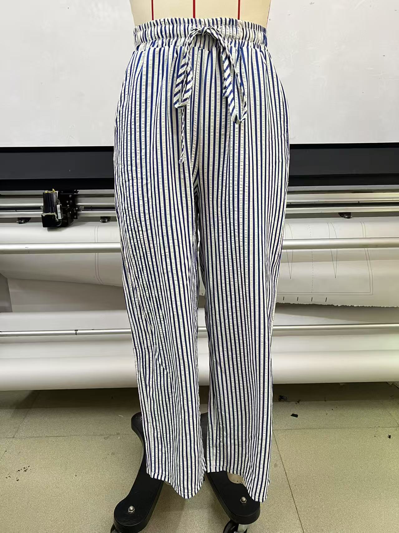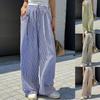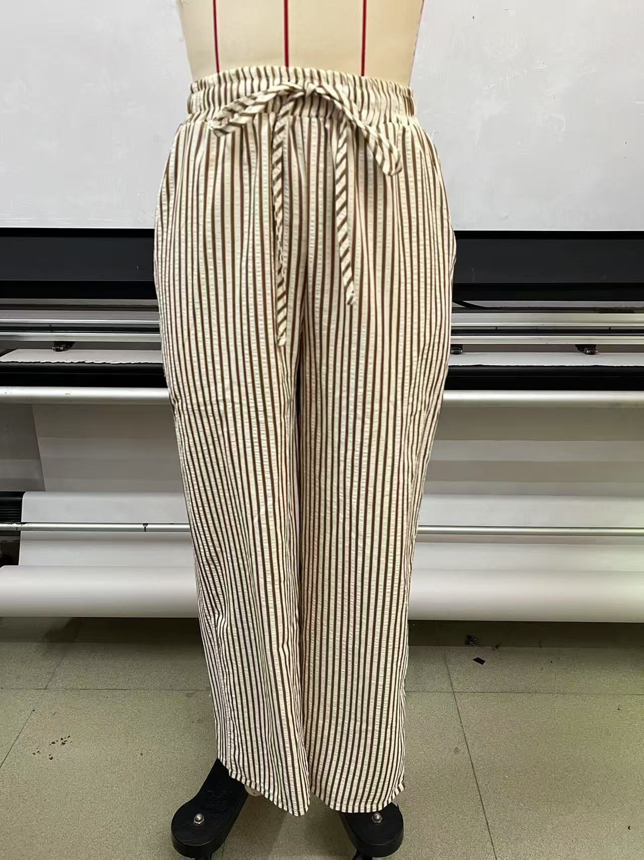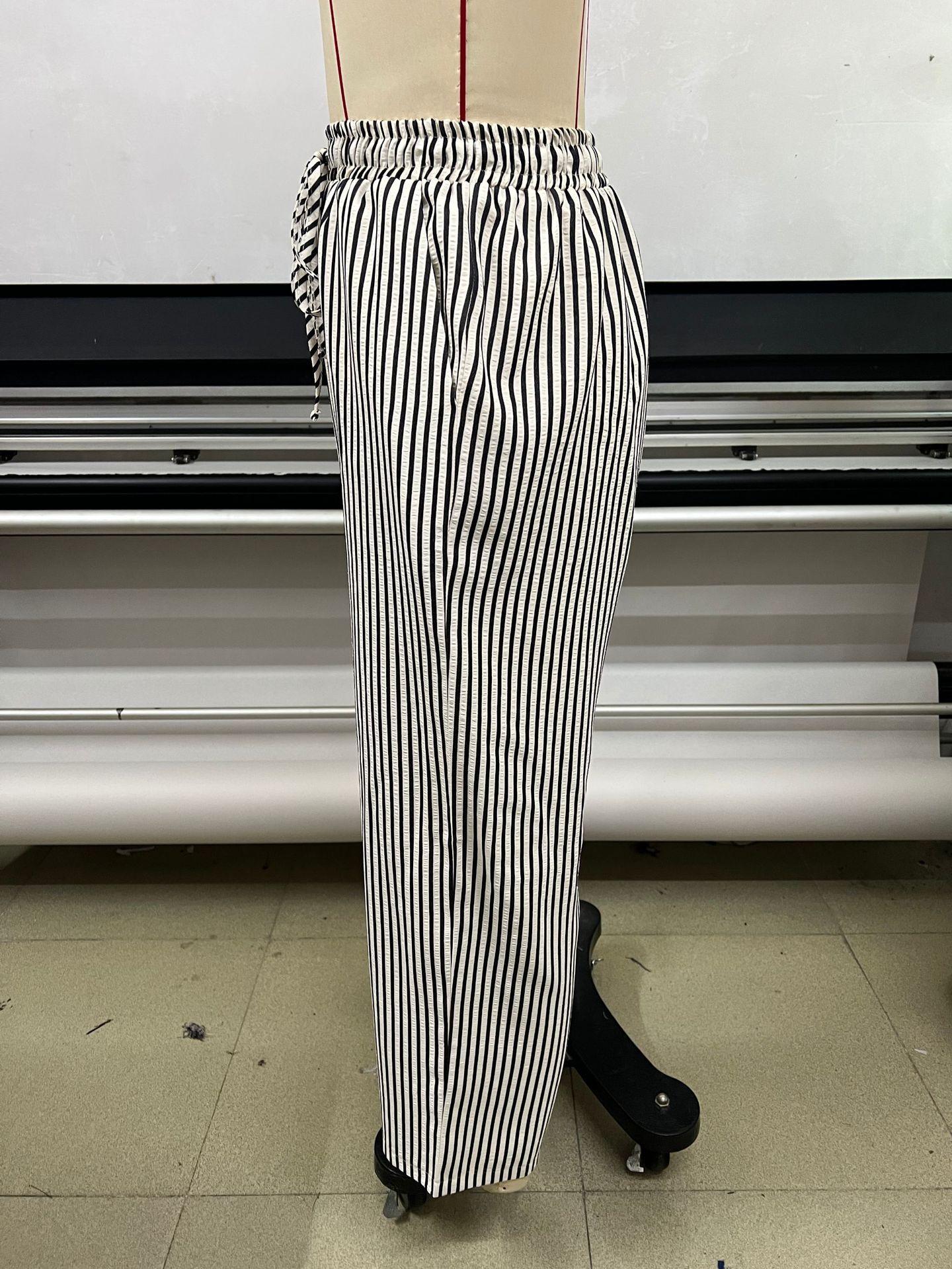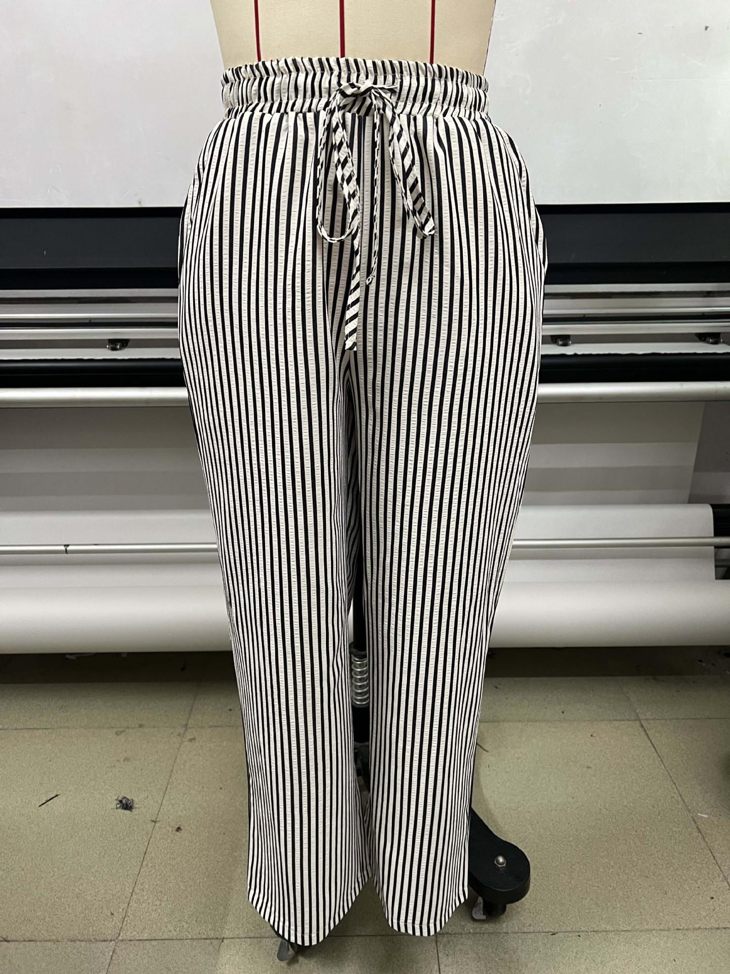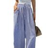 2025 Europeo y Americano Transfronterizo Amazon Nuevo Pantalón Rayado de Pierna Ancha Bolsillos con Cordón Casual Pantalón Largo Pantalón de Pierna Recta Ropa de Mujer