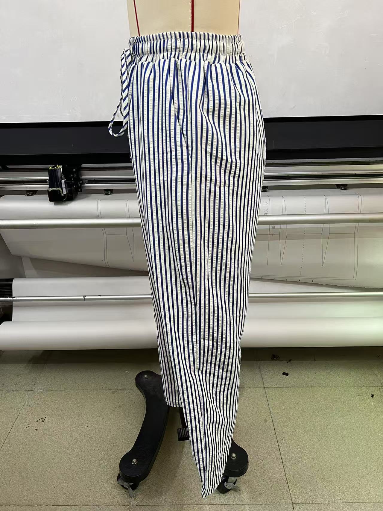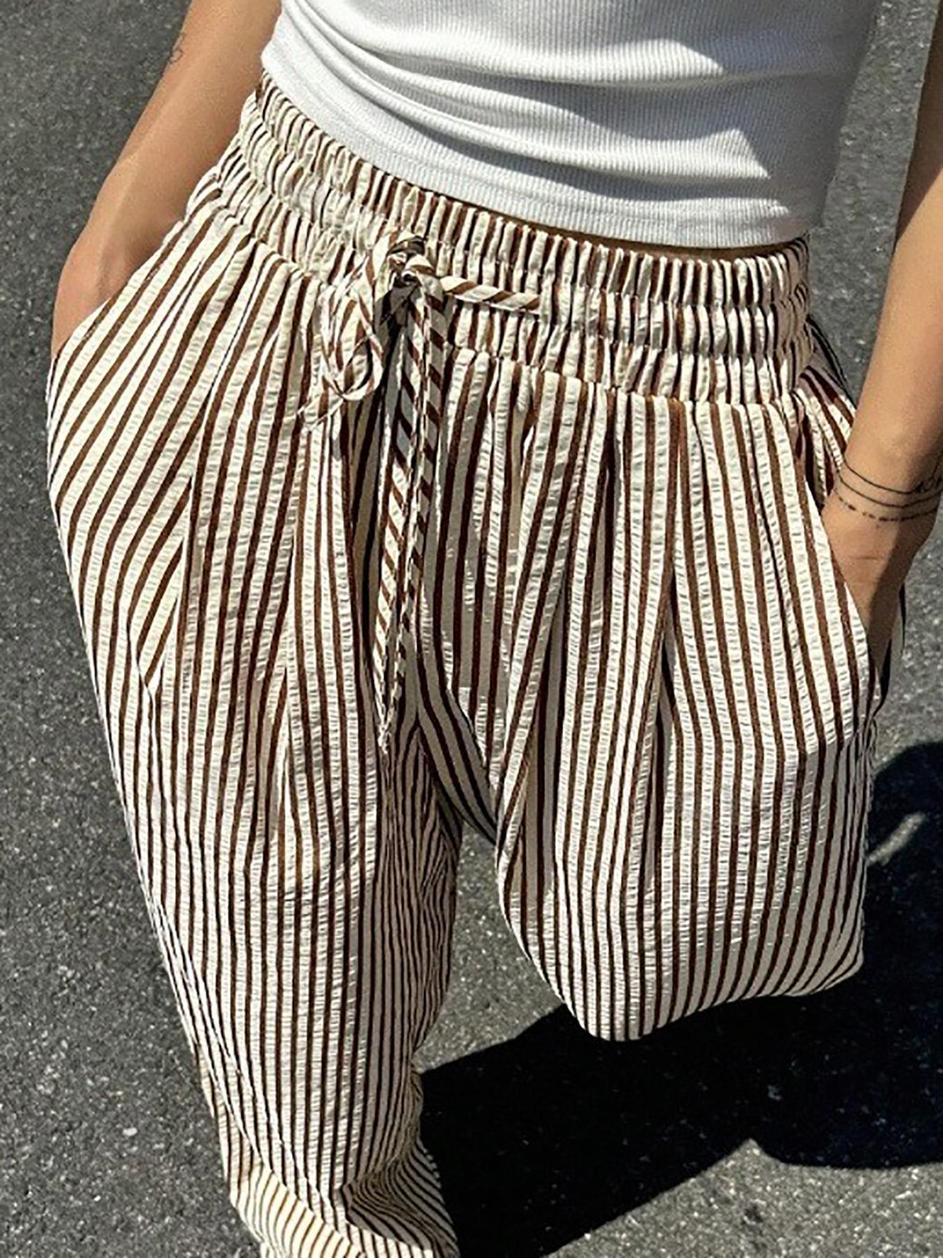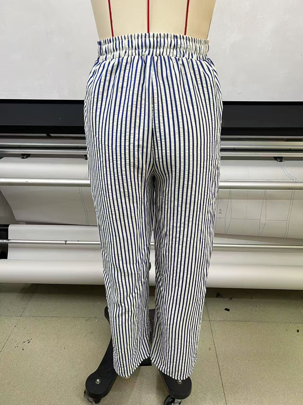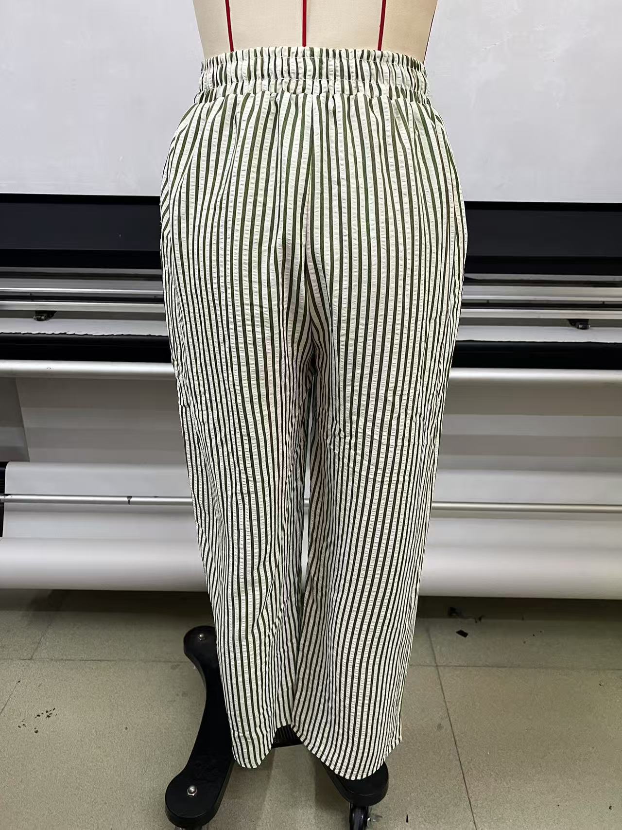 2025 Europeo y Americano Transfronterizo Amazon Nuevo Pantalón Rayado de Pierna Ancha Bolsillos con Cordón Casual Pantalón Largo Pantalón de Pierna Recta Ropa de Mujer