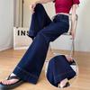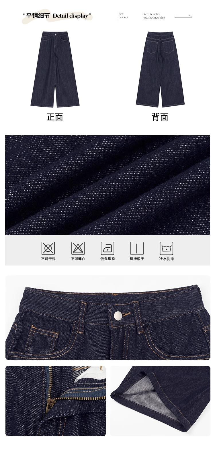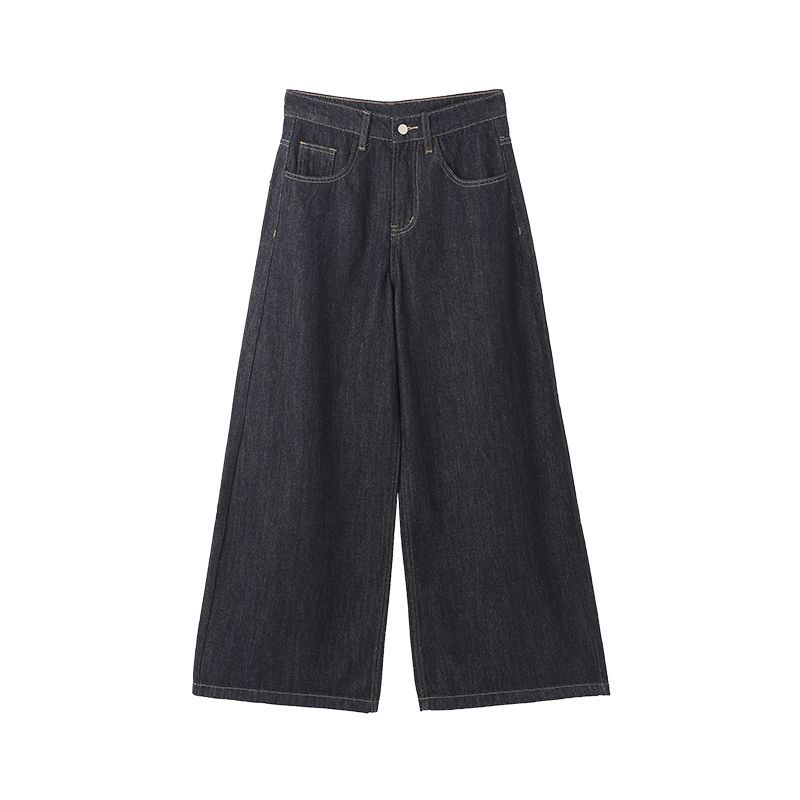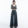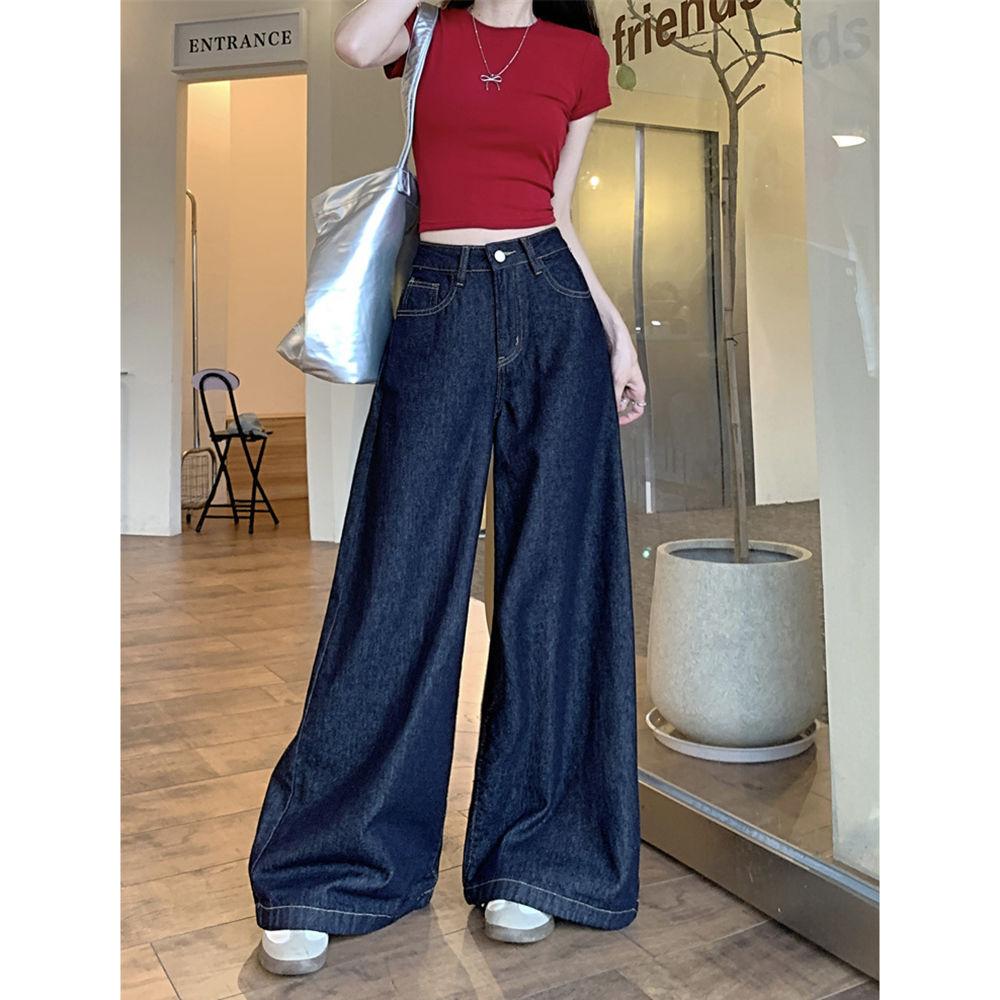 Pantalones azul oscuro que cubren la cadera y estilizan de pierna ancha con caída muestran piernas largas 2025 jeans de pierna recta holgados estilo americano para mujer