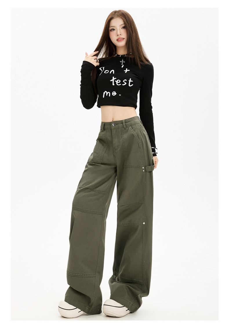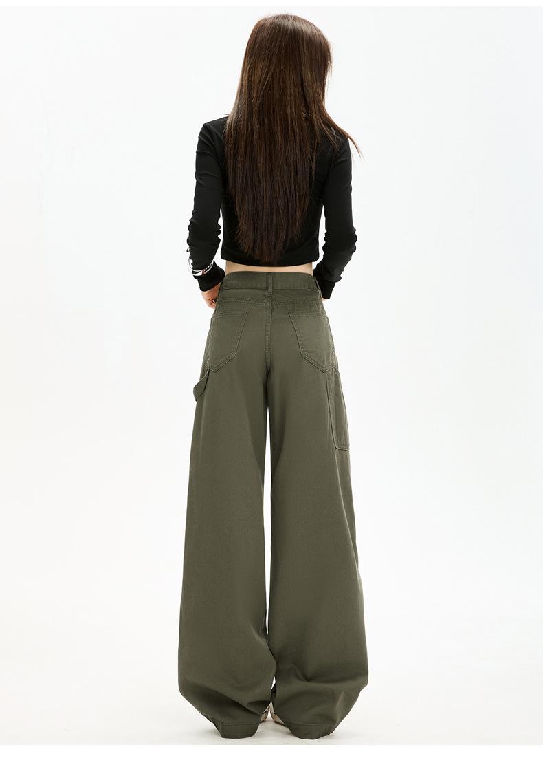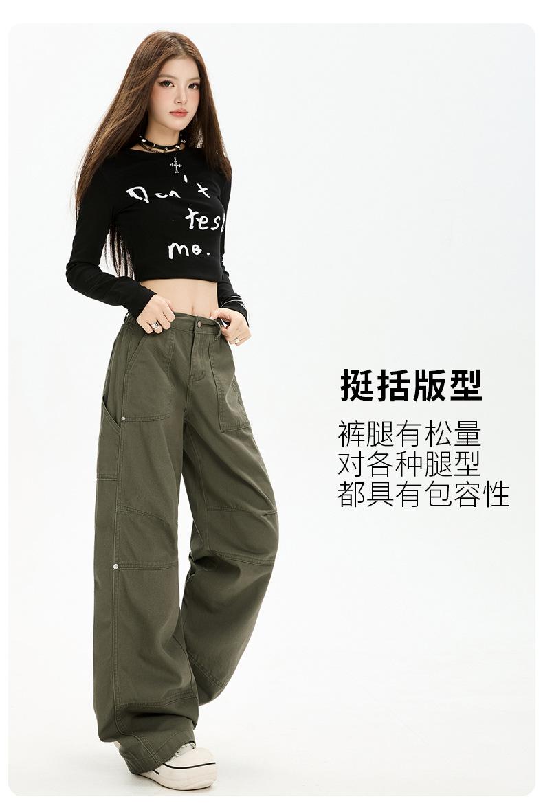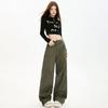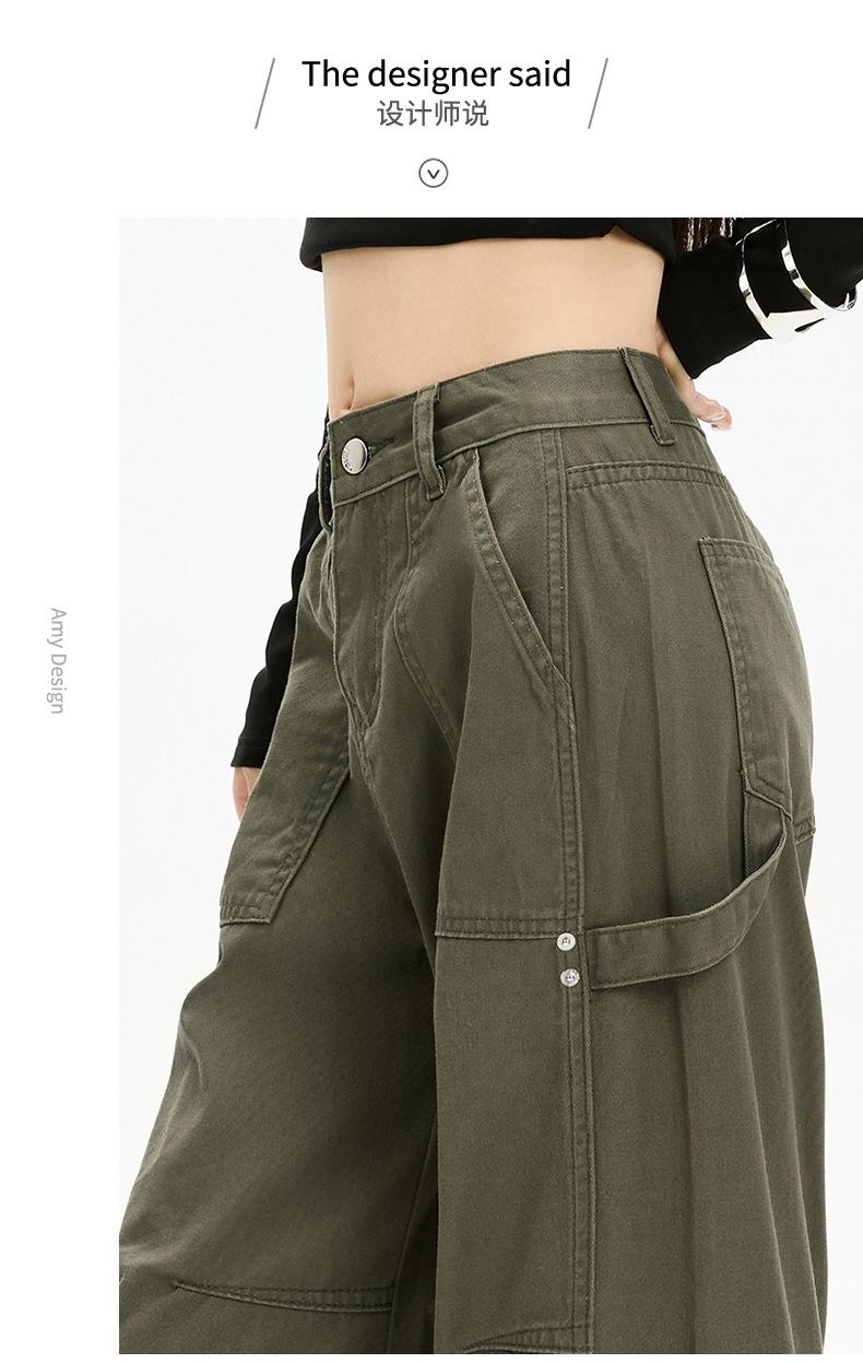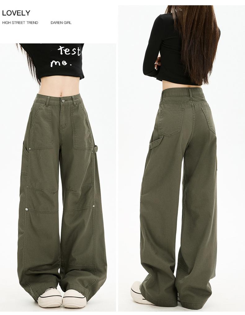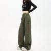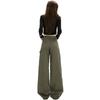 Otoño Nuevo Pantalón de Trabajo Mujer Cintura Alta Adelgazante Holgado Versátil Diseño Multibolsillos Chica Caliente Pierna Recta Pierna Ancha Pantalón Casual