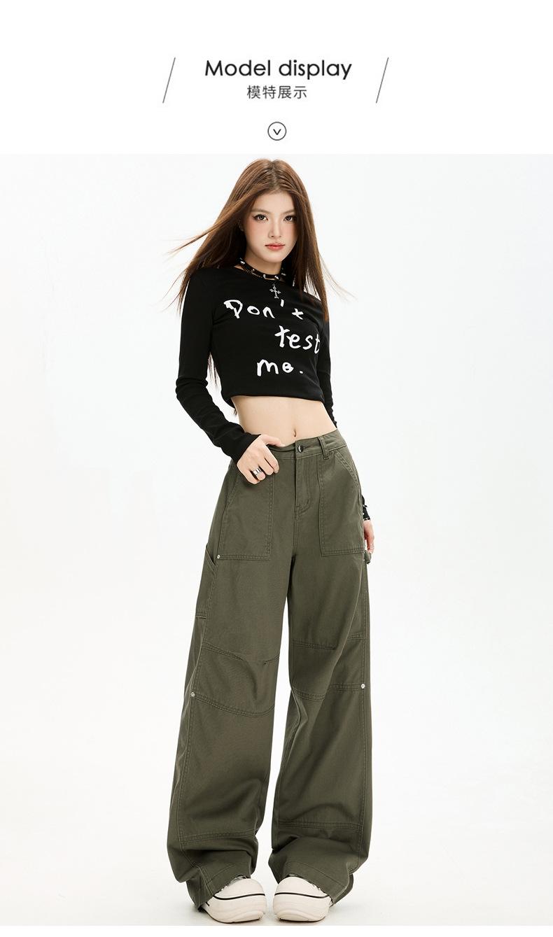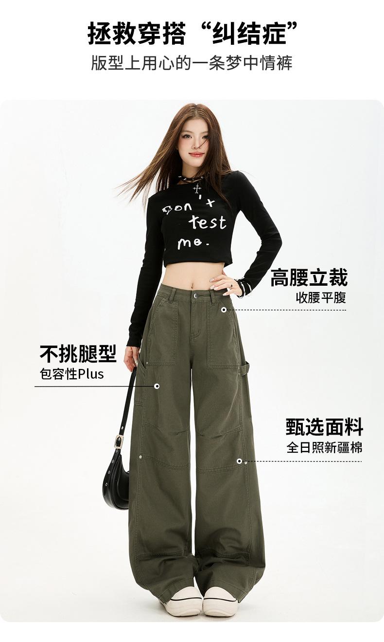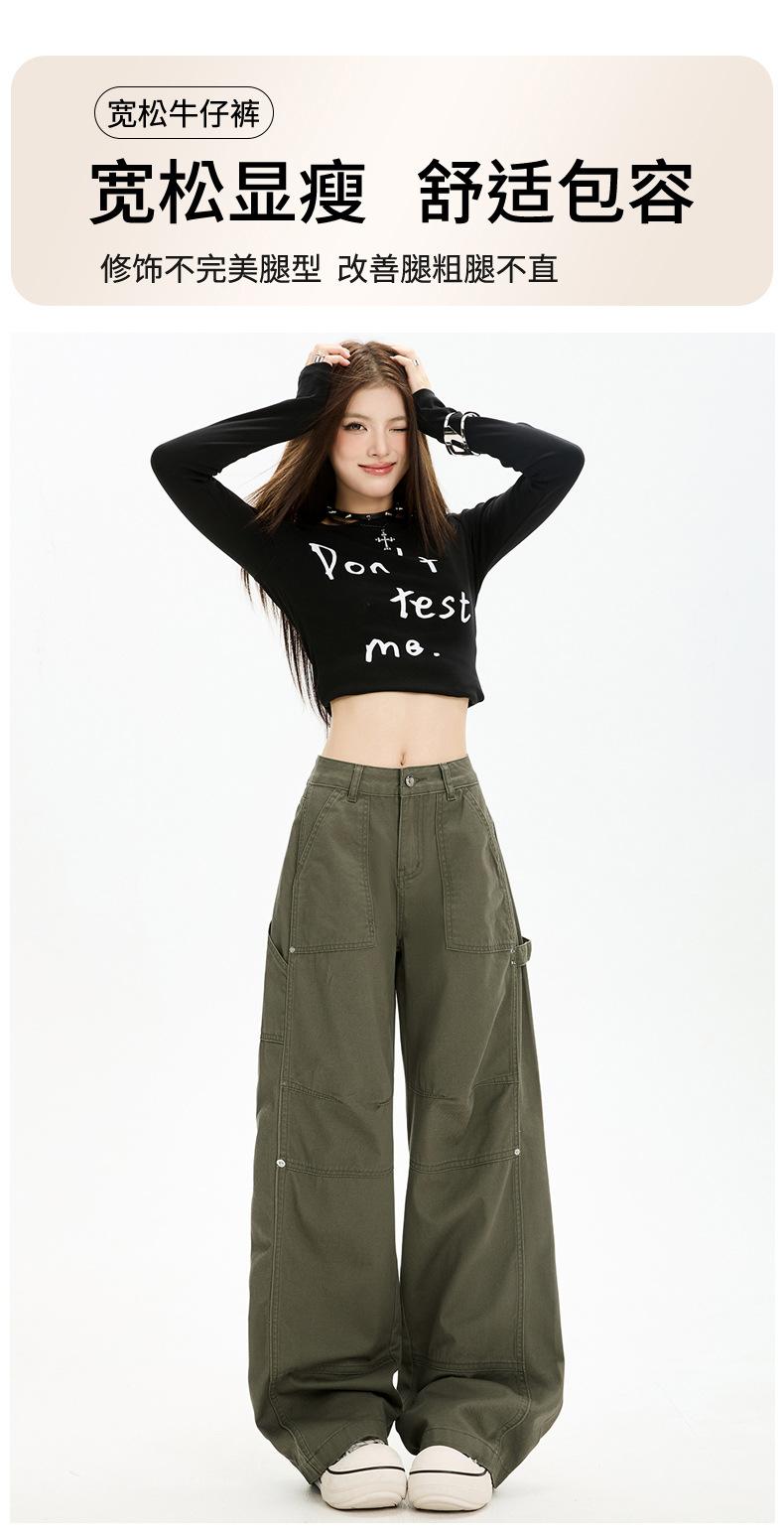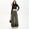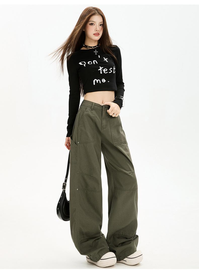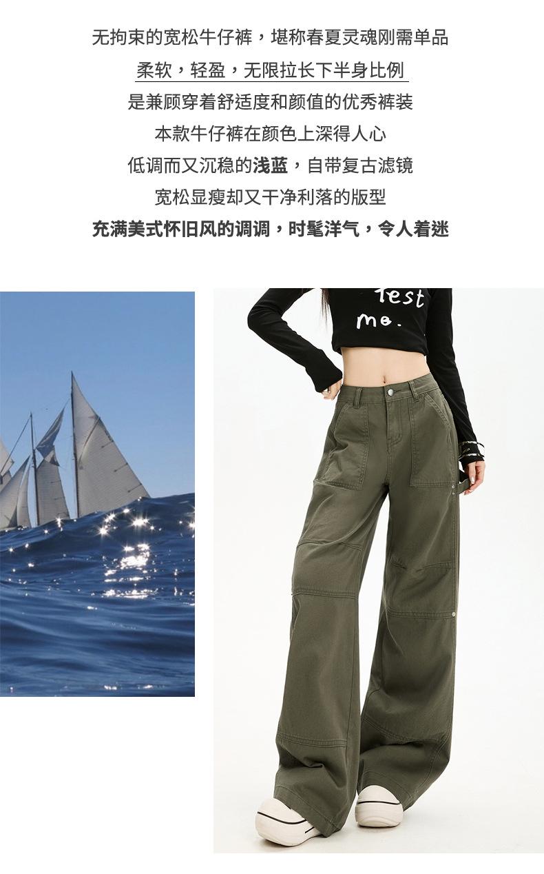 Otoño Nuevo Pantalón de Trabajo Mujer Cintura Alta Adelgazante Holgado Versátil Diseño Multibolsillos Chica Caliente Pierna Recta Pierna Ancha Pantalón Casual