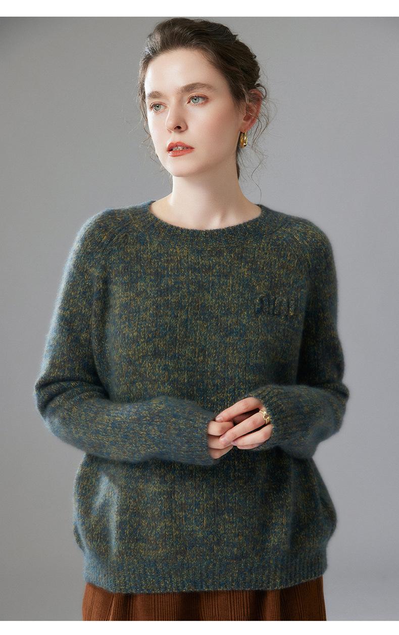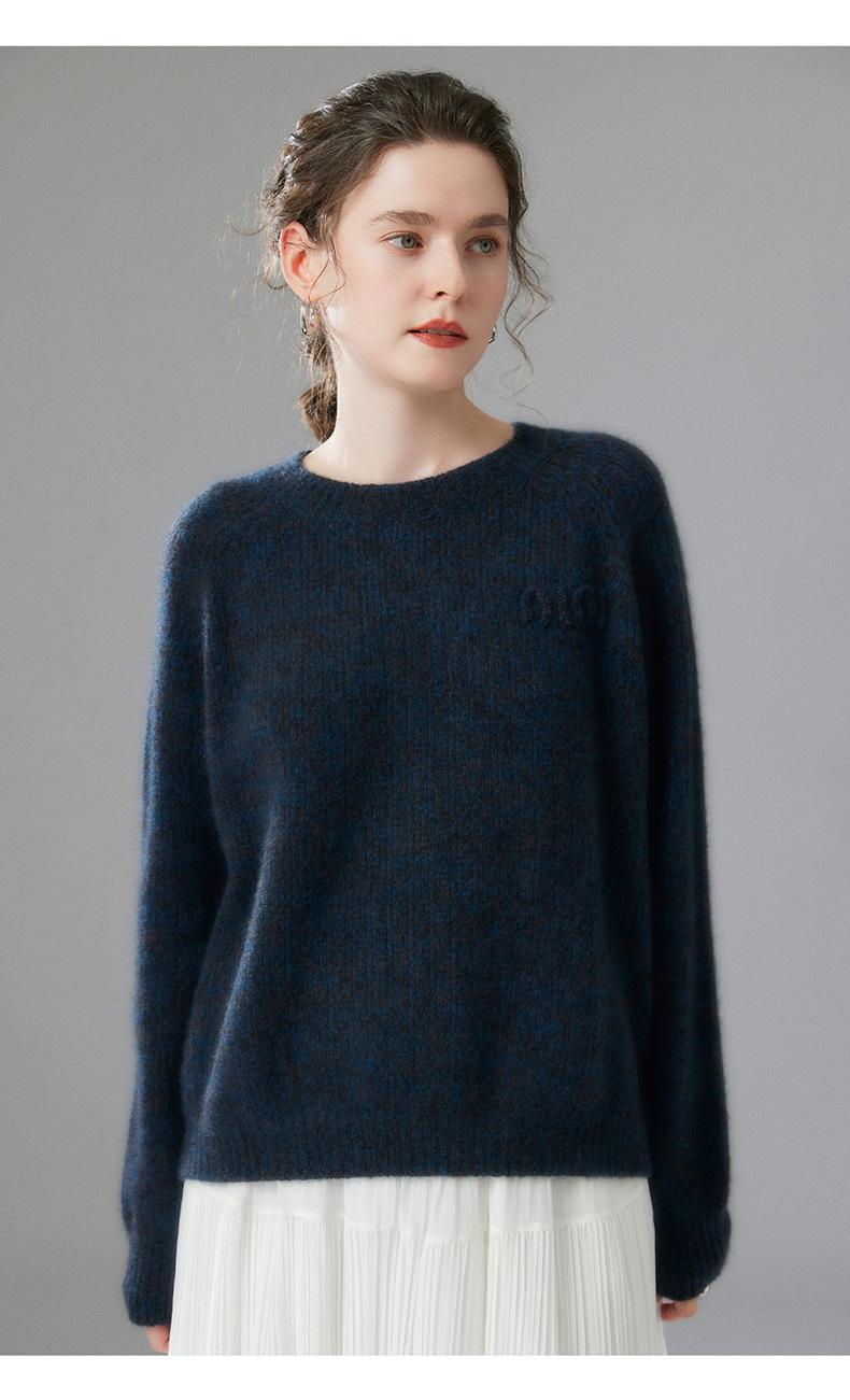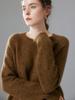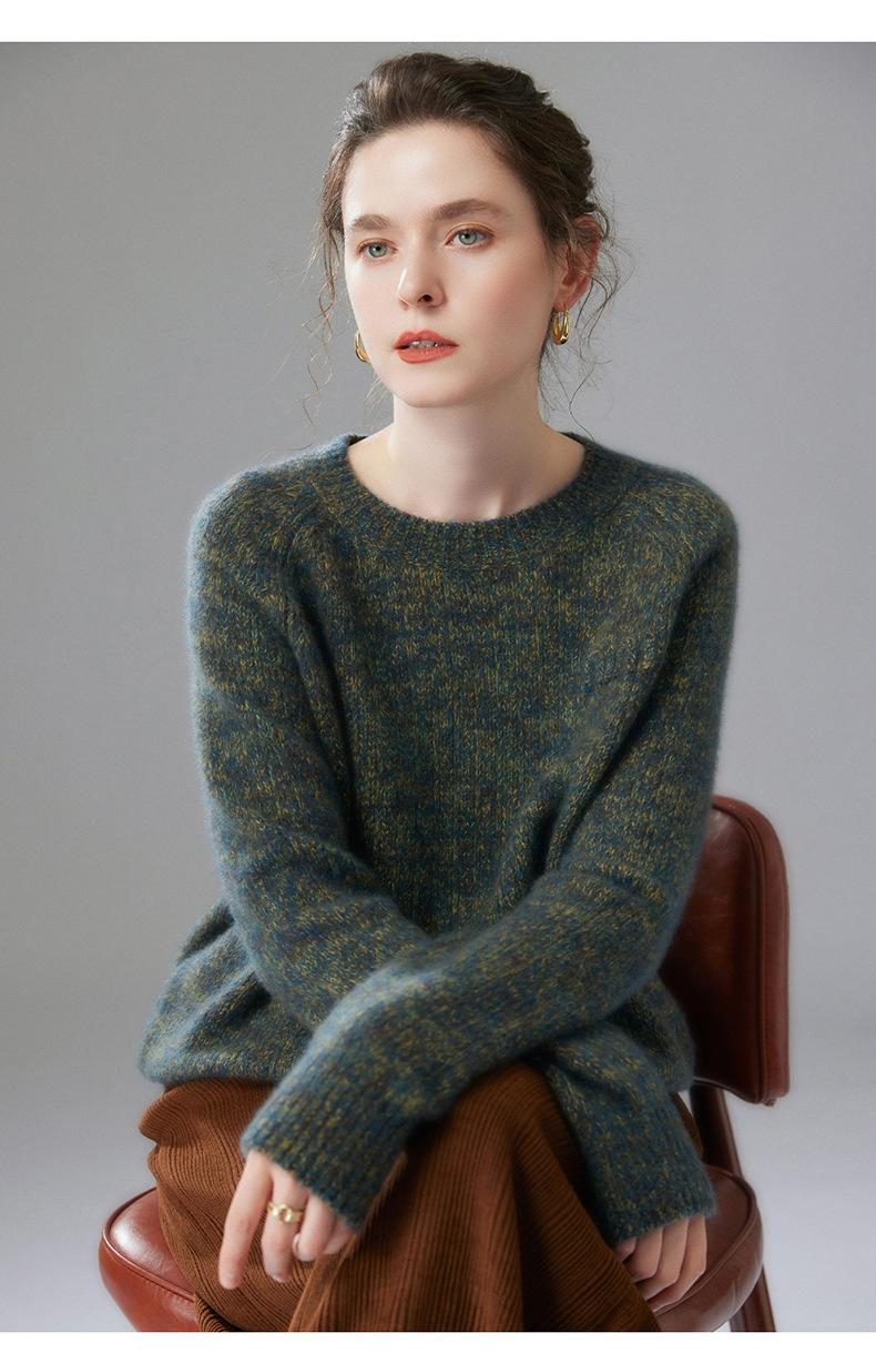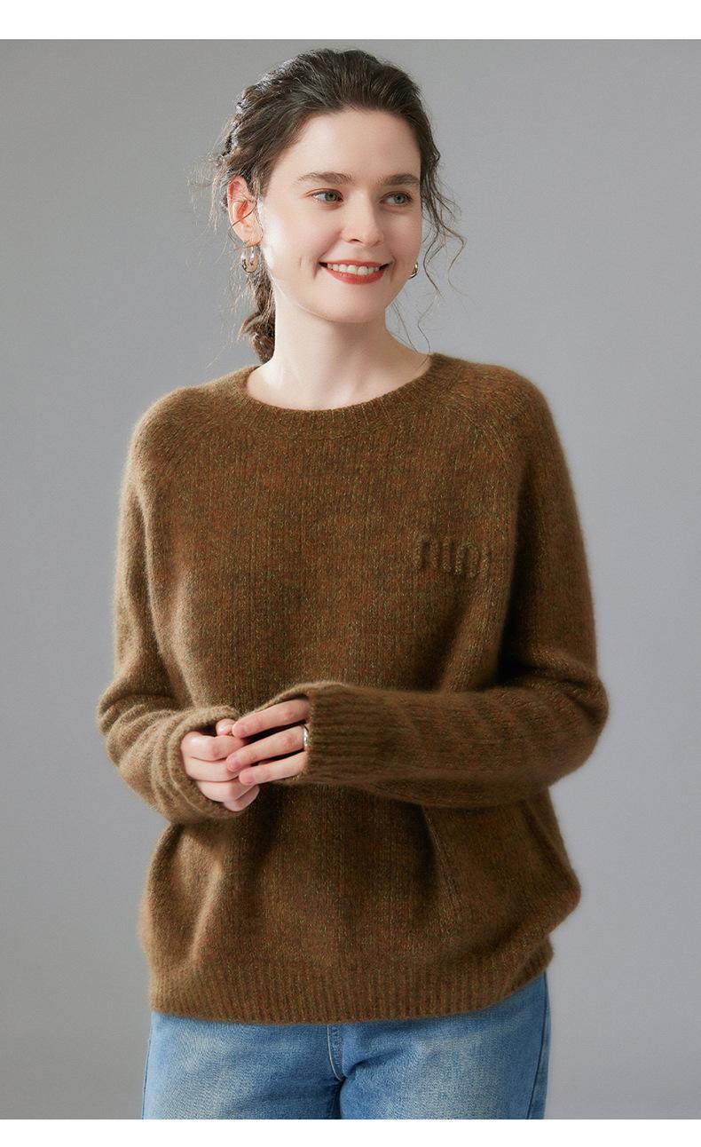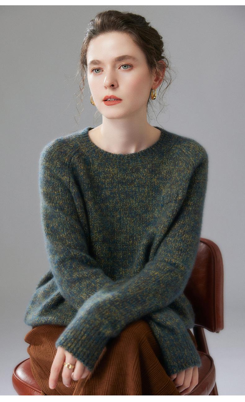 Sencillo y versátil cuello redondo manga raglán color sólido cachemira camisa básica de punto para mujer suéter grueso holgado adelgazante