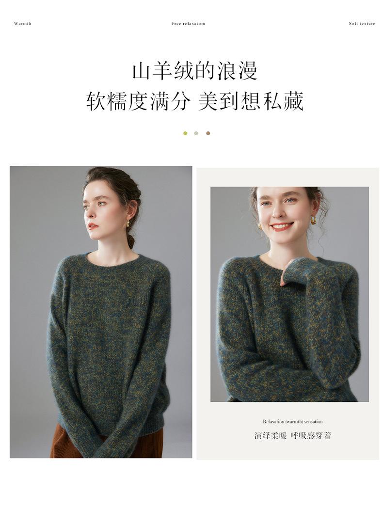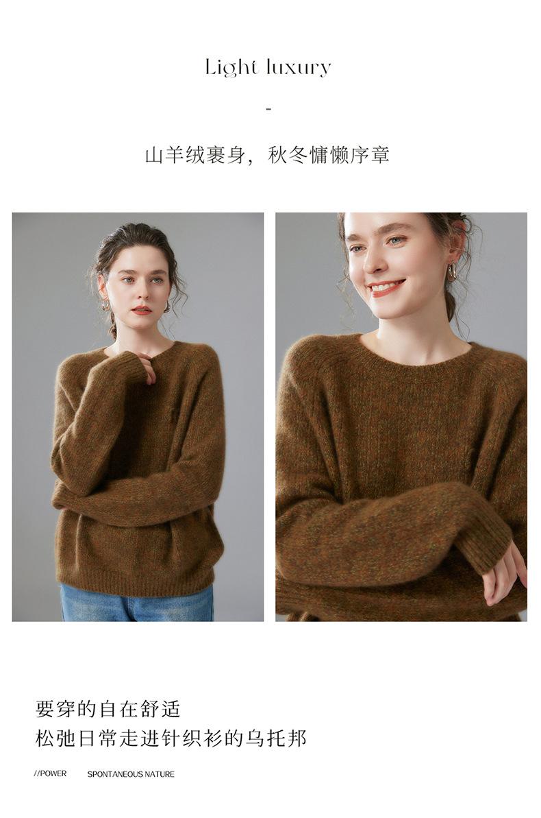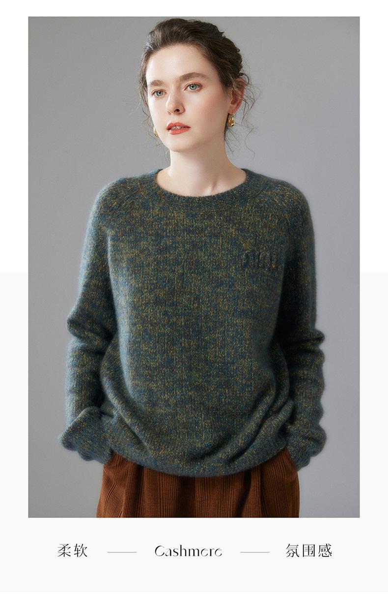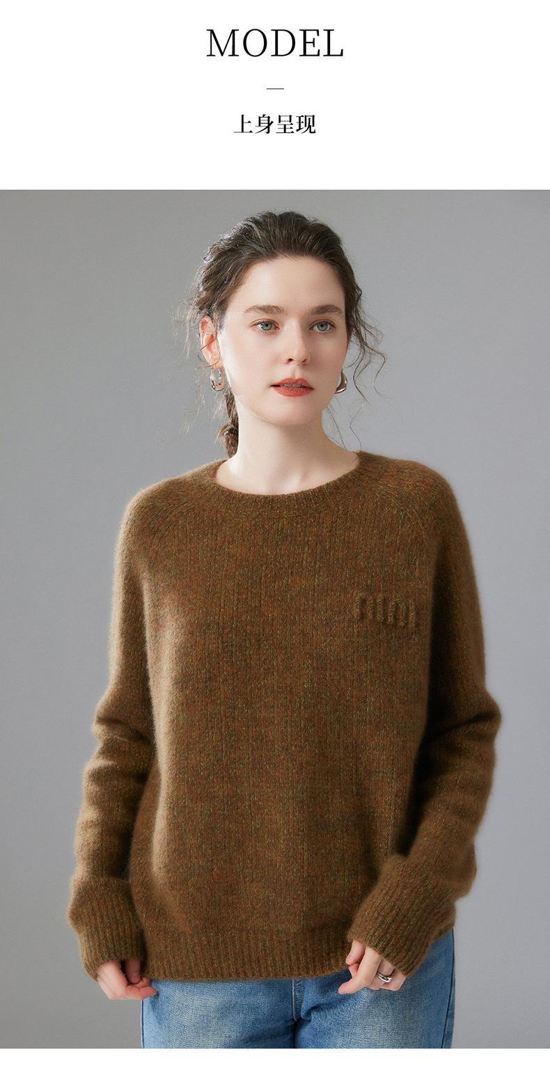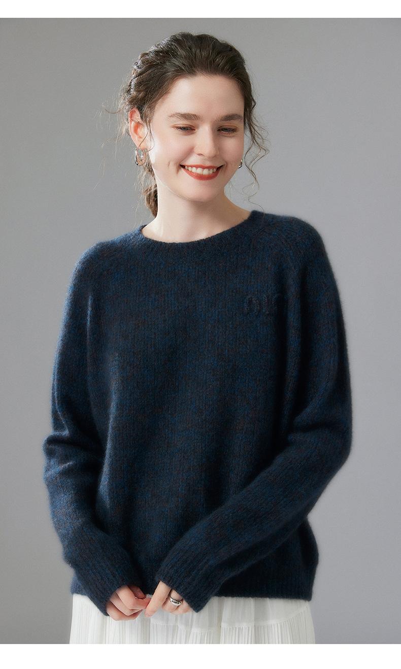Sencillo y versátil cuello redondo manga raglán color sólido cachemira camisa básica de punto para mujer suéter grueso holgado adelgazante