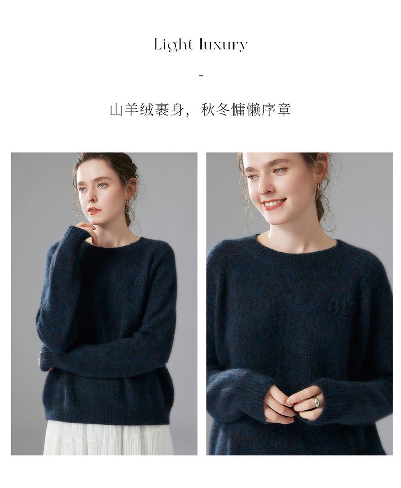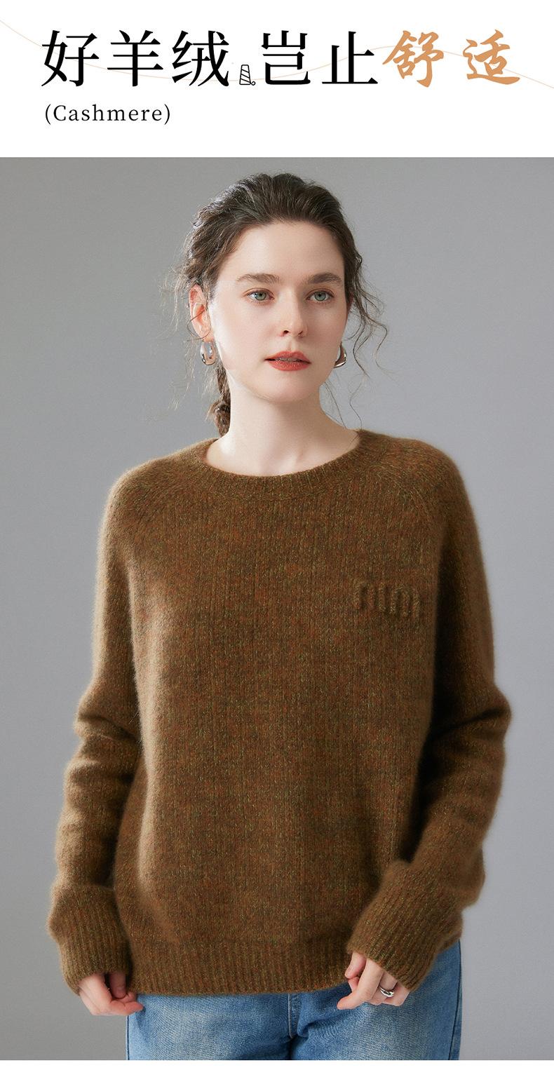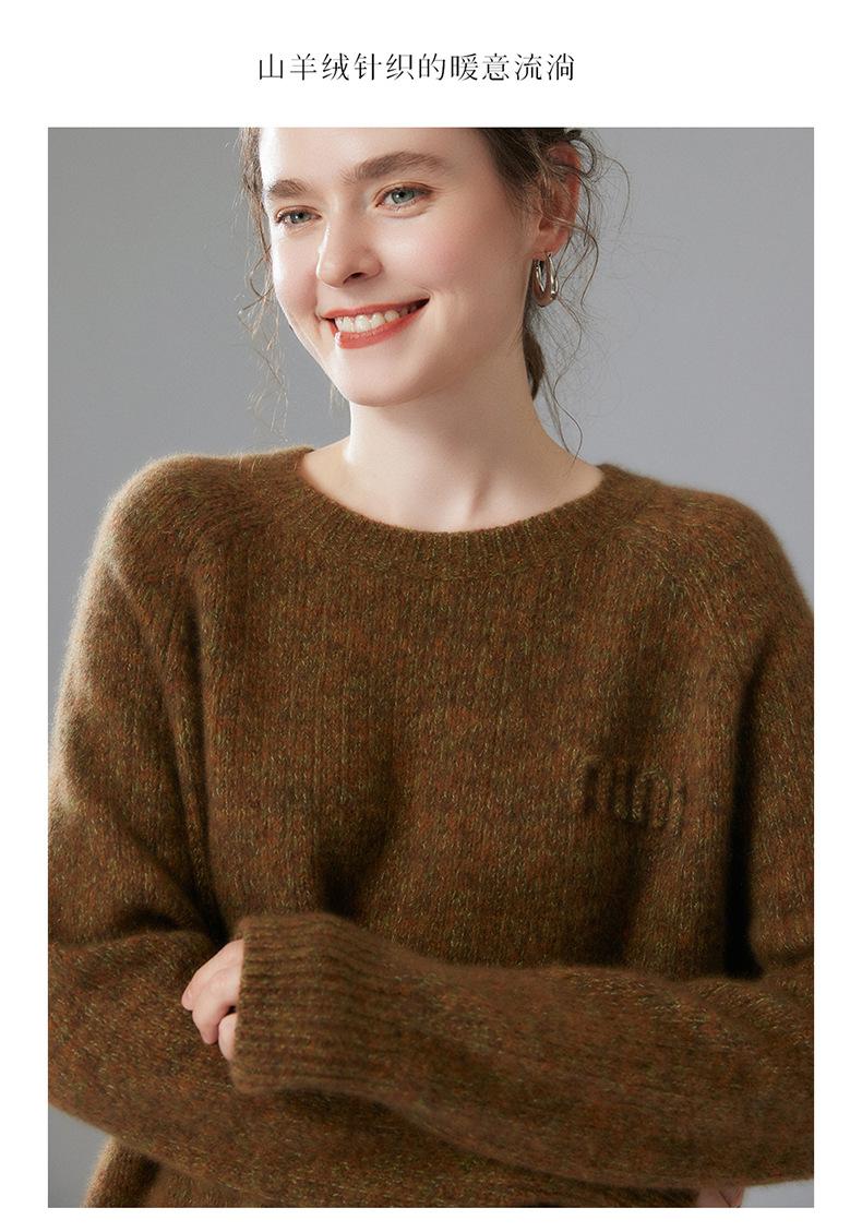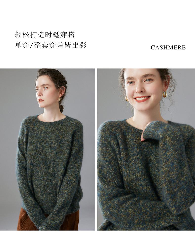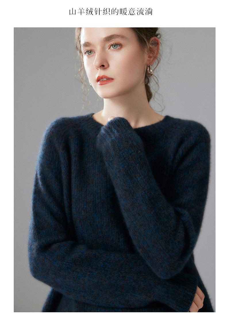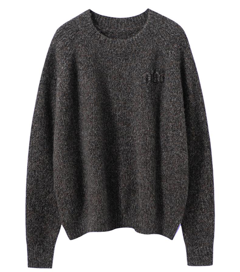 Sencillo y versátil cuello redondo manga raglán color sólido cachemira camisa básica de punto para mujer suéter grueso holgado adelgazante