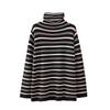 Camiseta de Manga Larga a Rayas de Cuello Alto para Mujer Otoño e Invierno Nueva Elegante Ajustada en Capas Cuello Tortuga Base Camiseta Ins