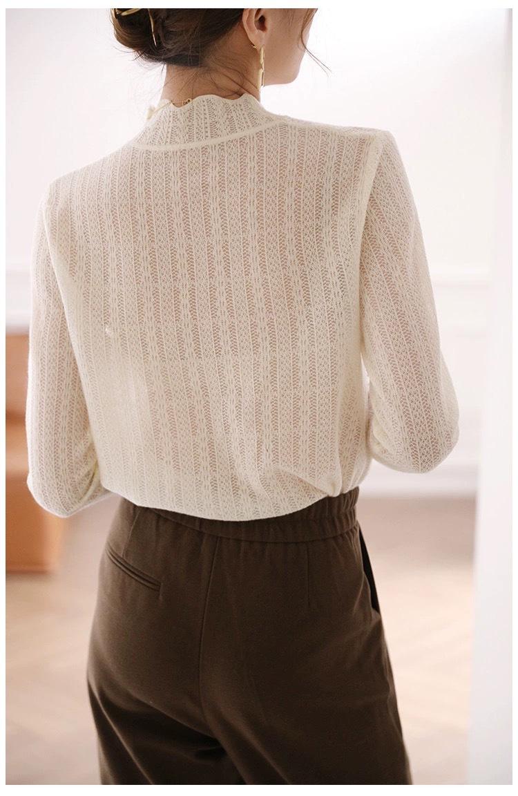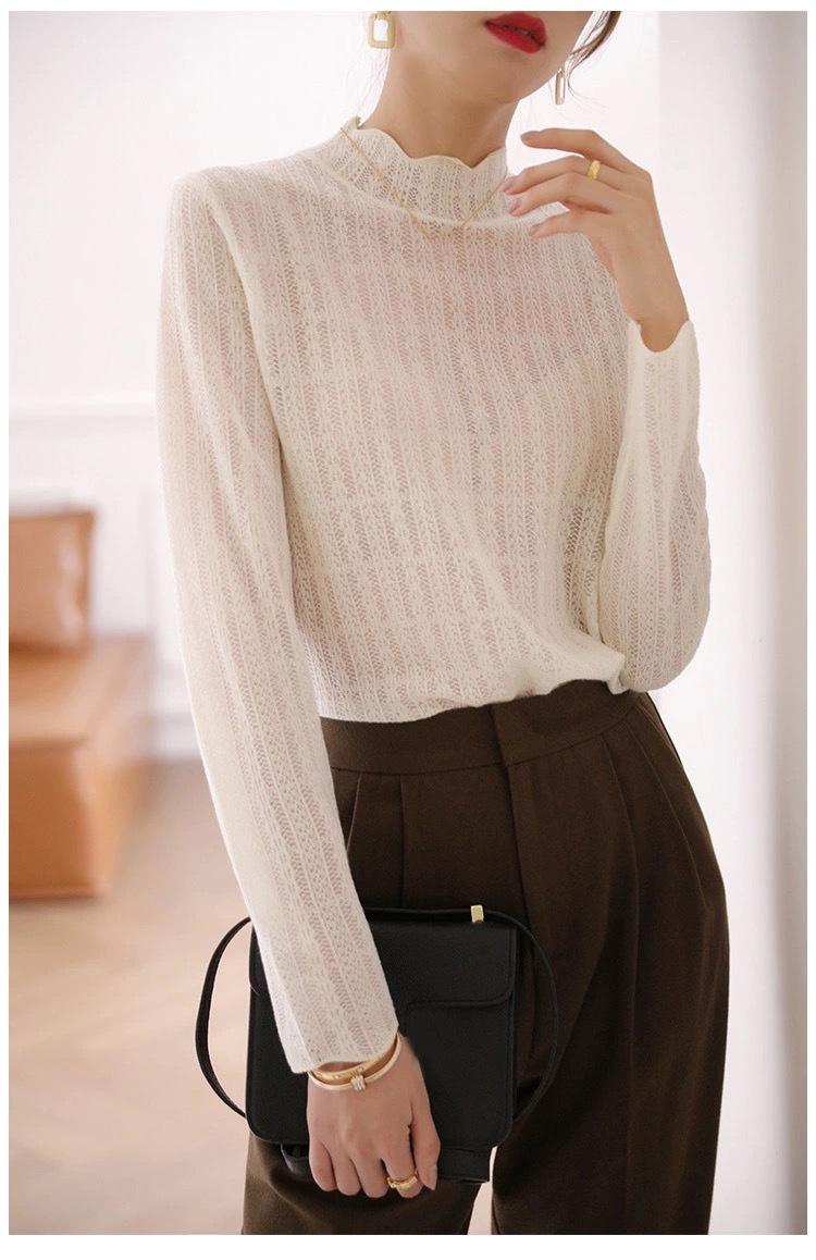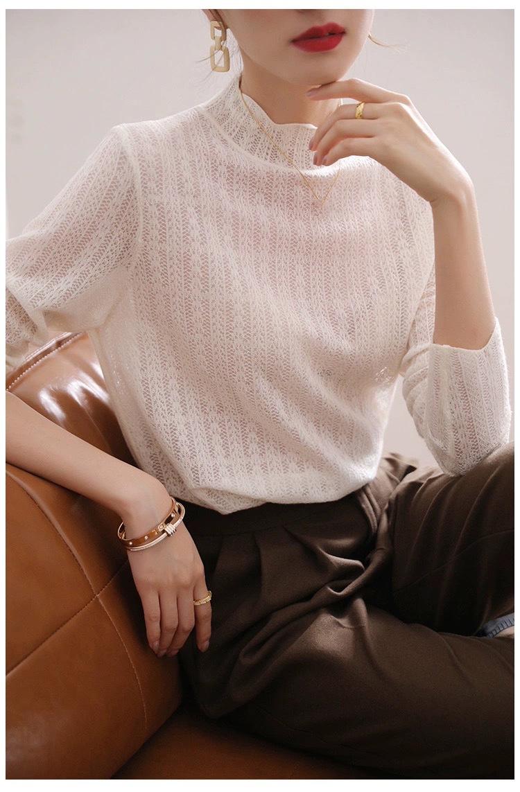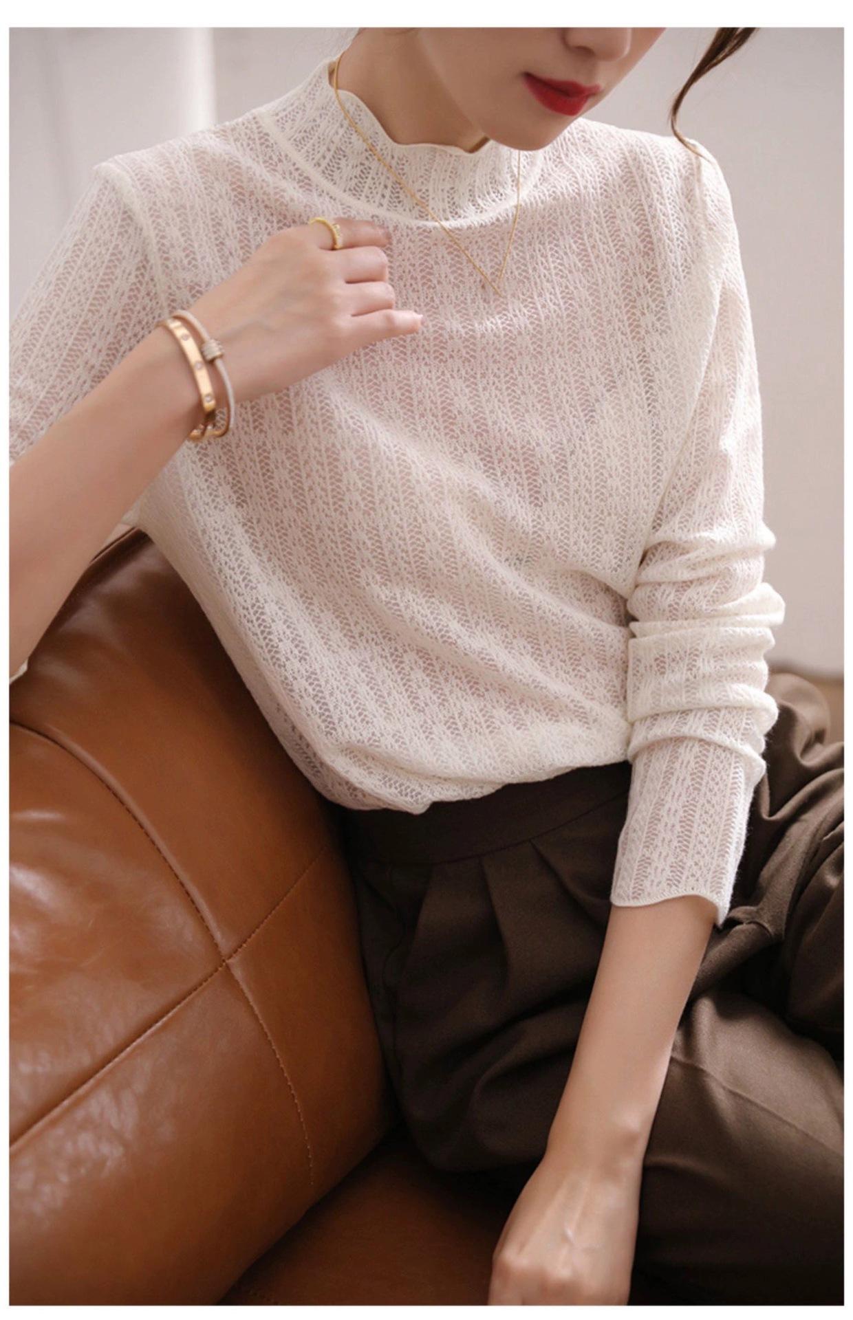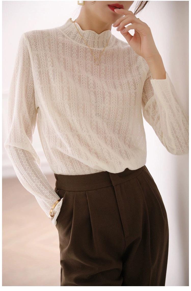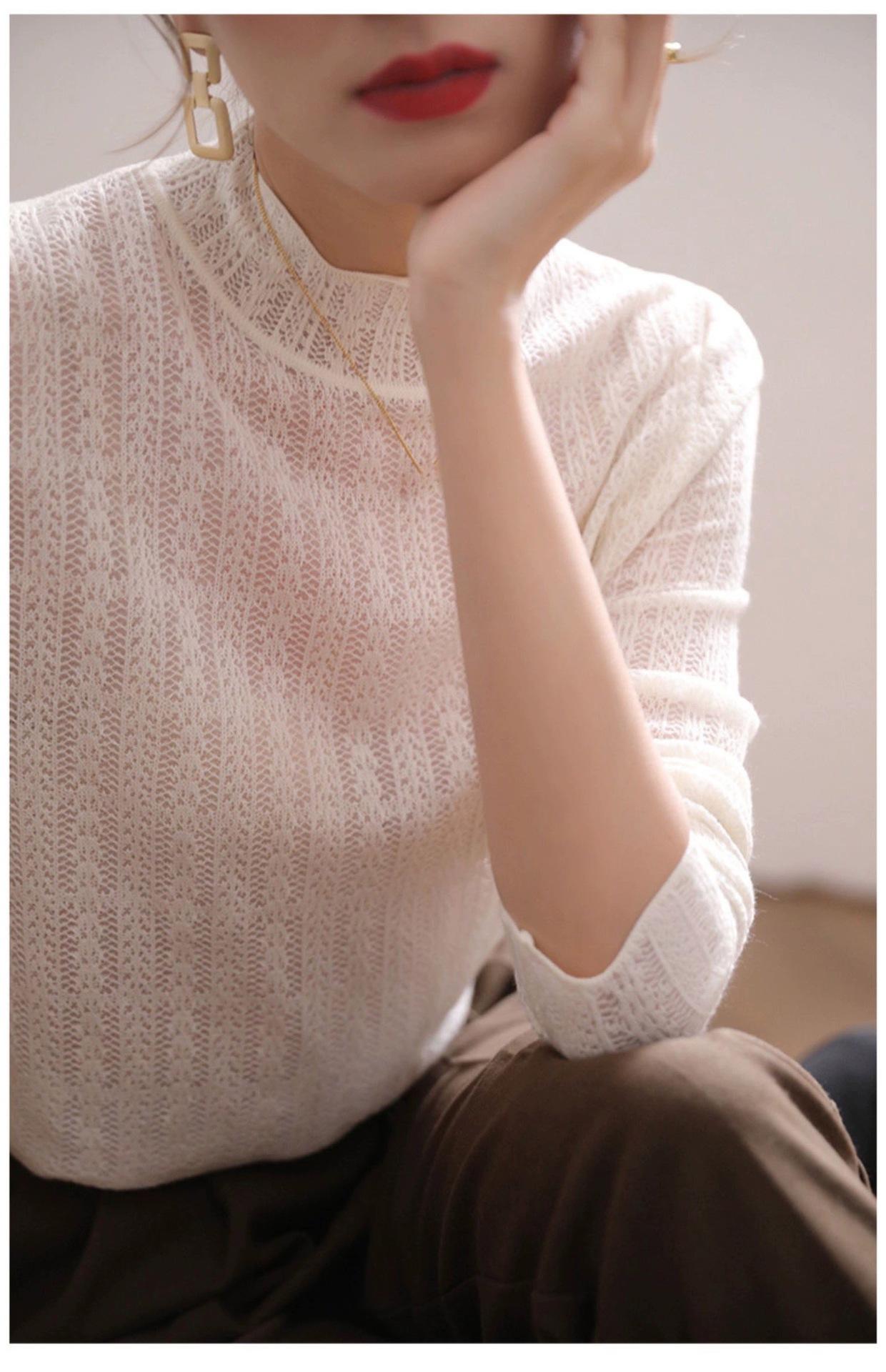 Tejido de punto básico estilo francés transfronterizo para mujer, moda de otoño, calado, versátil, holgado, adelgazante, suéter tipo jersey, top interior