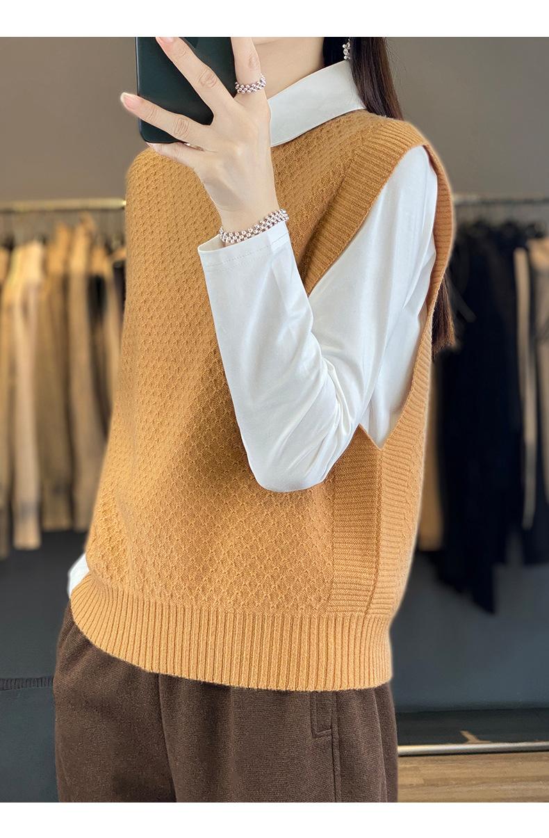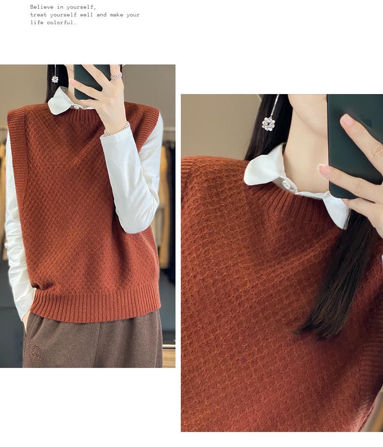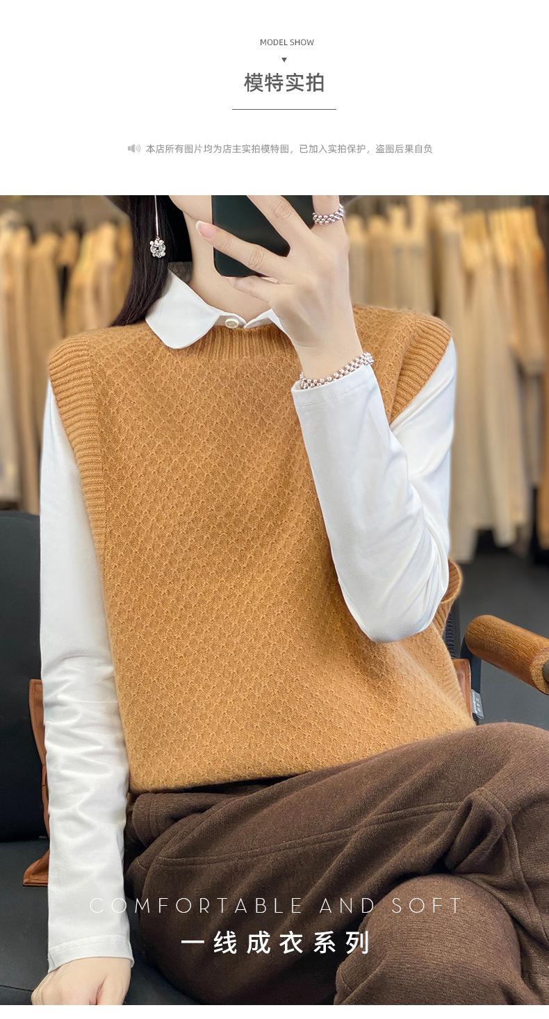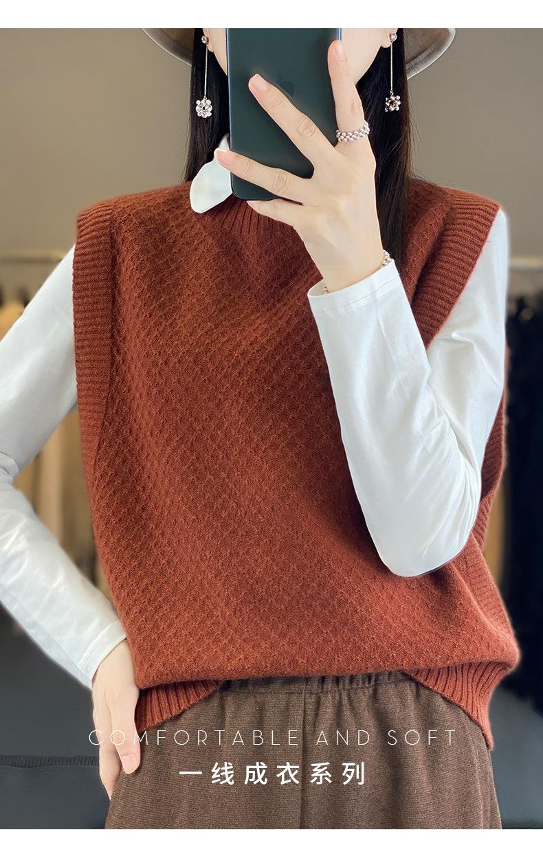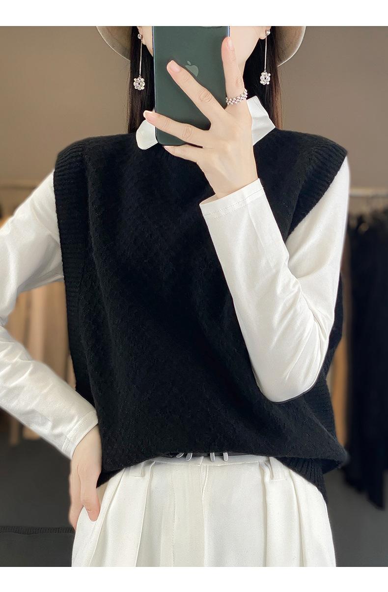 Chaleco de Punto de Lana Pura Estilo Nuevo de Principios de Otoño 2025 Suéter para Mujer Color Sólido Argyle Sin Mangas Camiseta Interior de una Línea Camiseta de Tirantes