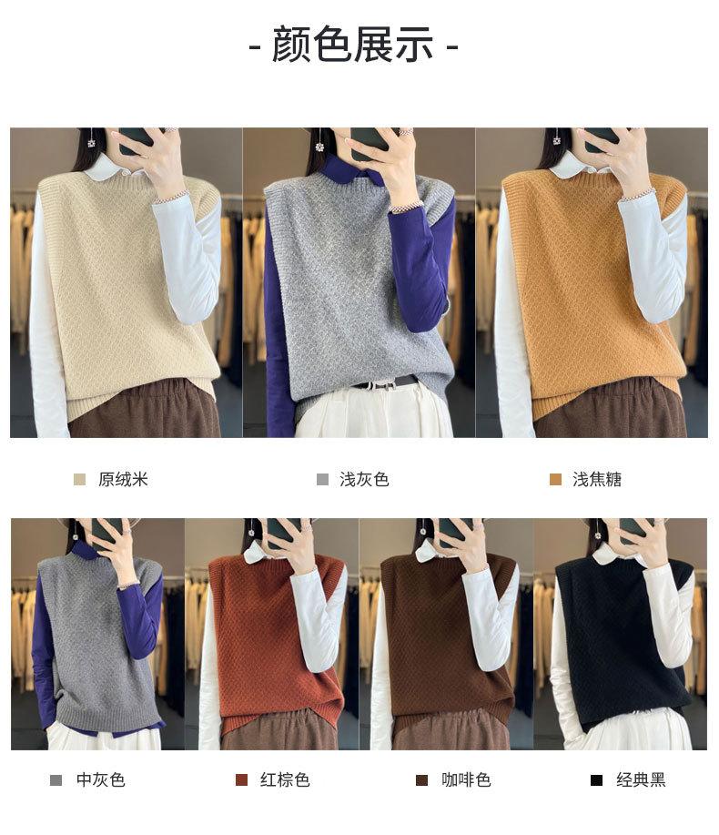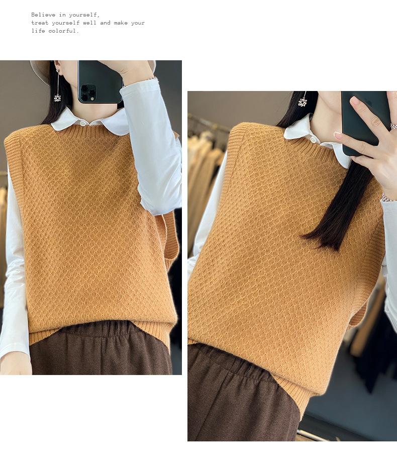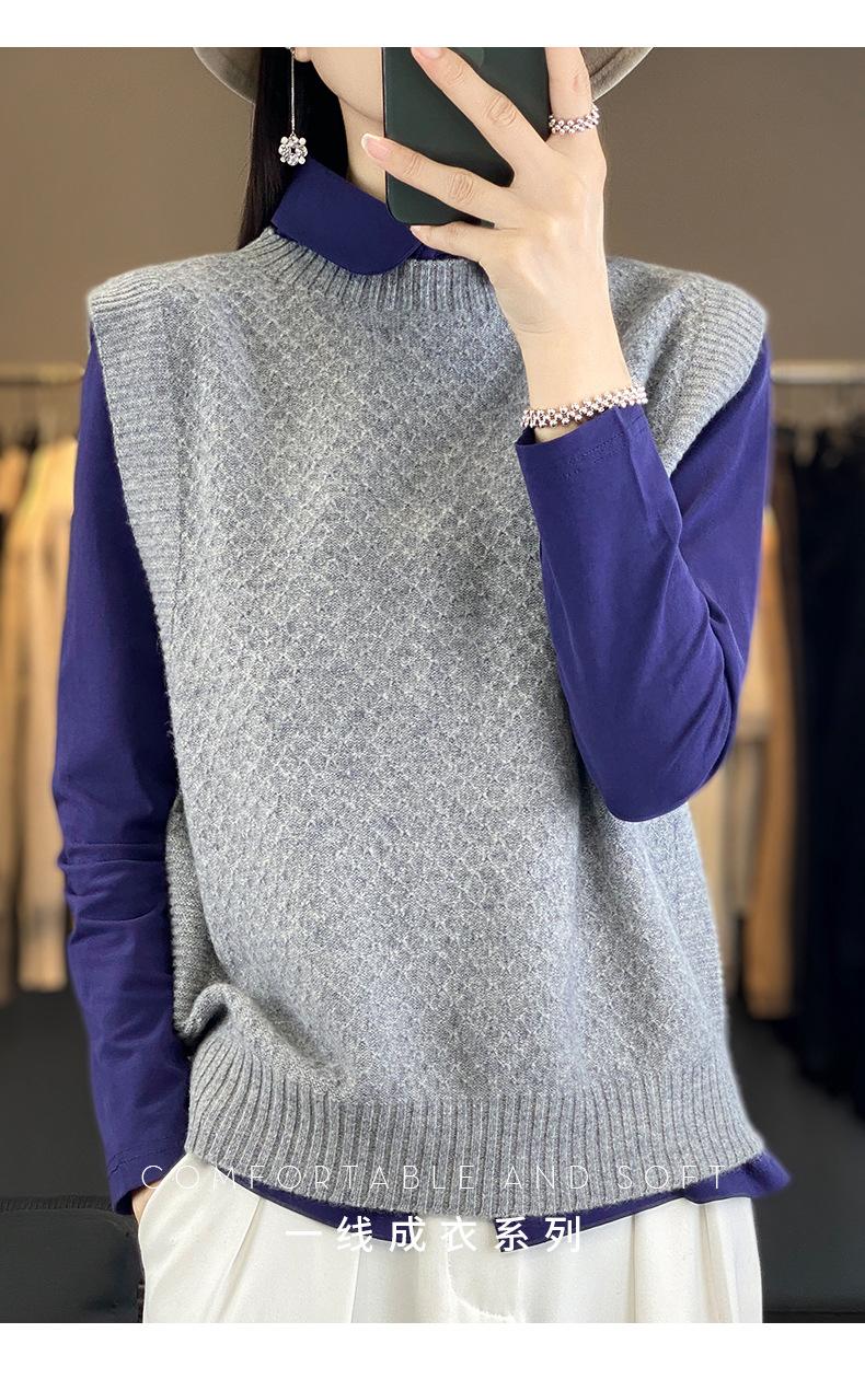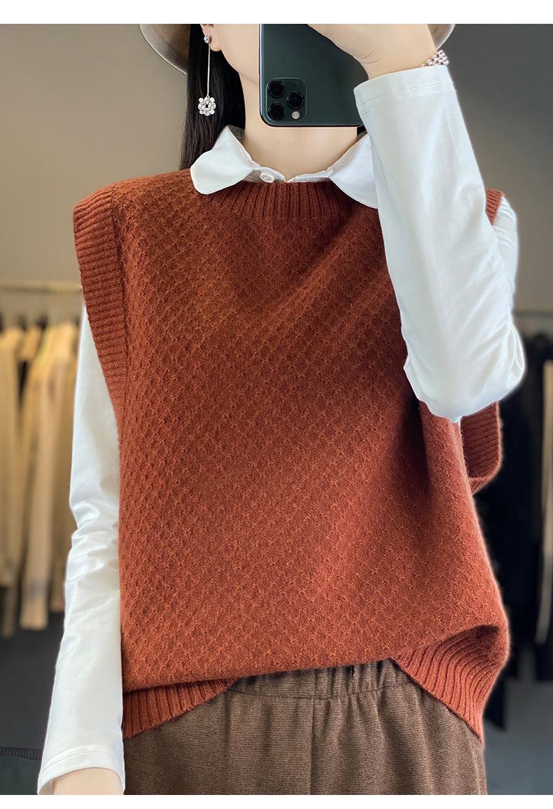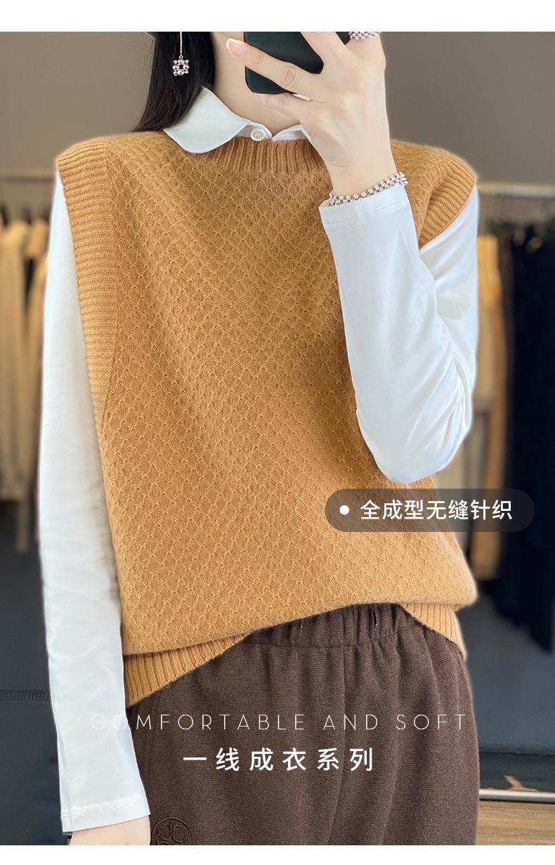 Chaleco de Punto de Lana Pura Estilo Nuevo de Principios de Otoño 2025 Suéter para Mujer Color Sólido Argyle Sin Mangas Camiseta Interior de una Línea Camiseta de Tirantes