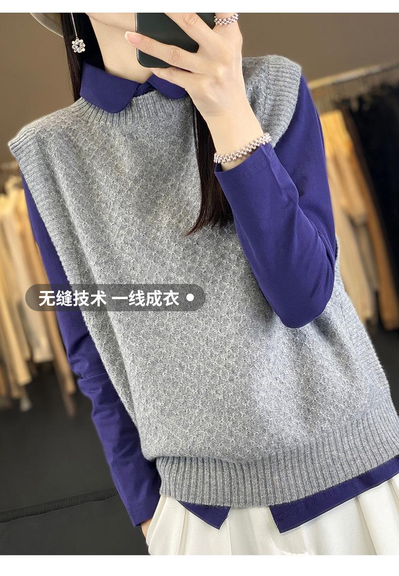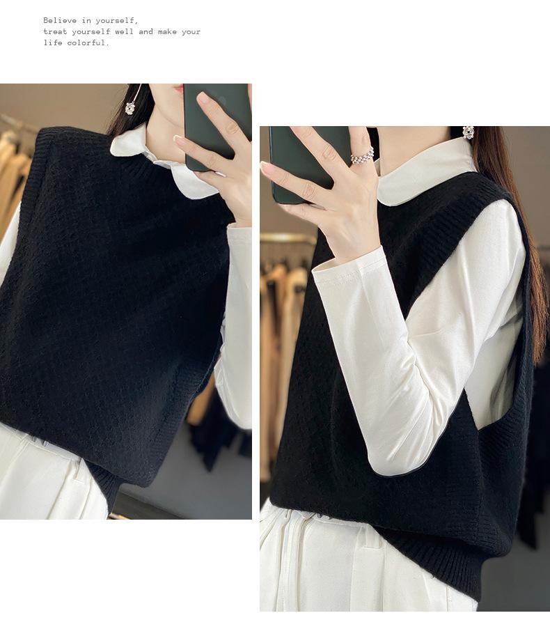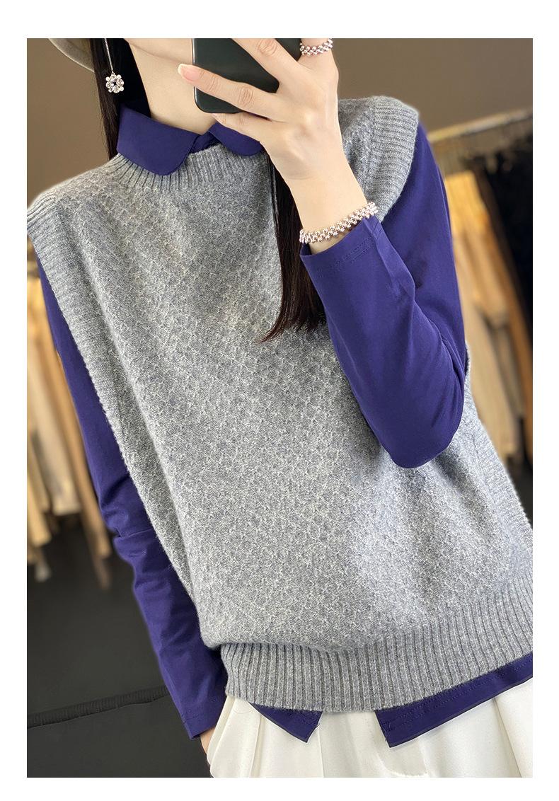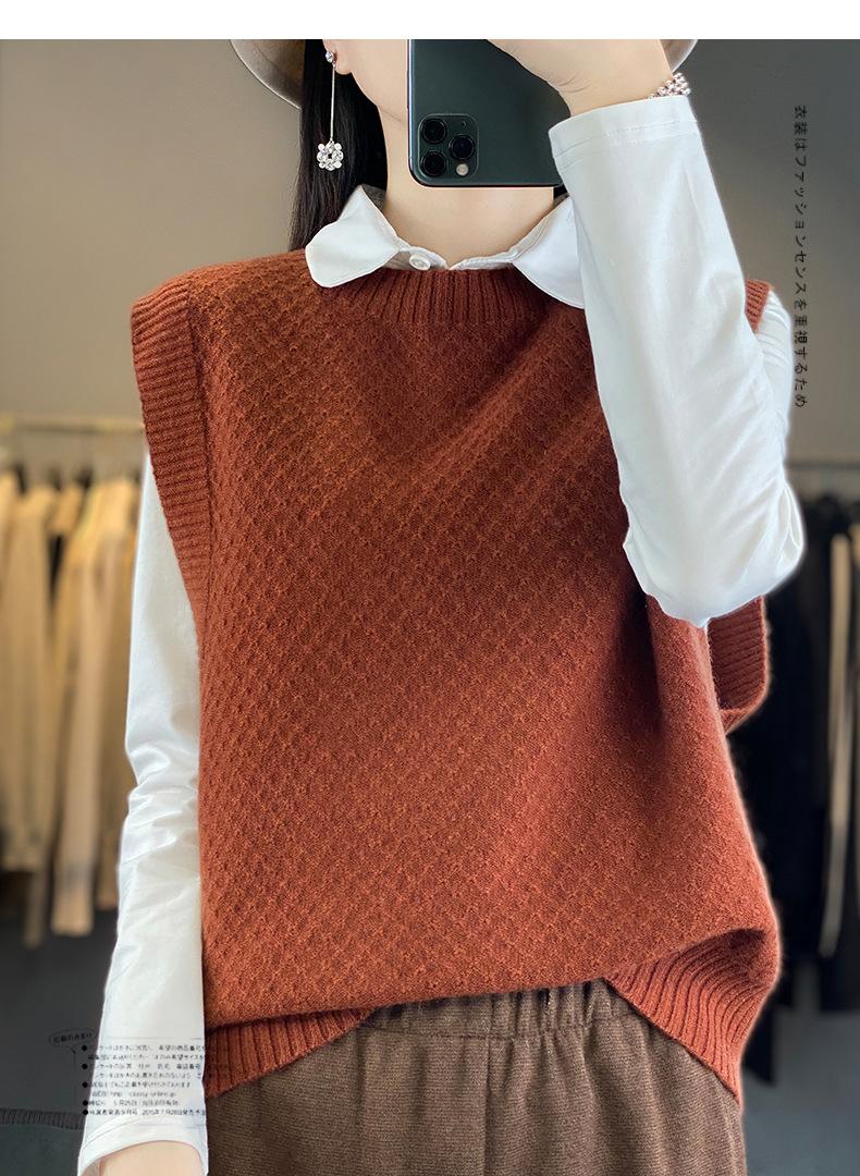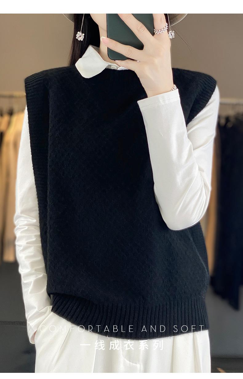 Chaleco de Punto de Lana Pura Estilo Nuevo de Principios de Otoño 2025 Suéter para Mujer Color Sólido Argyle Sin Mangas Camiseta Interior de una Línea Camiseta de Tirantes