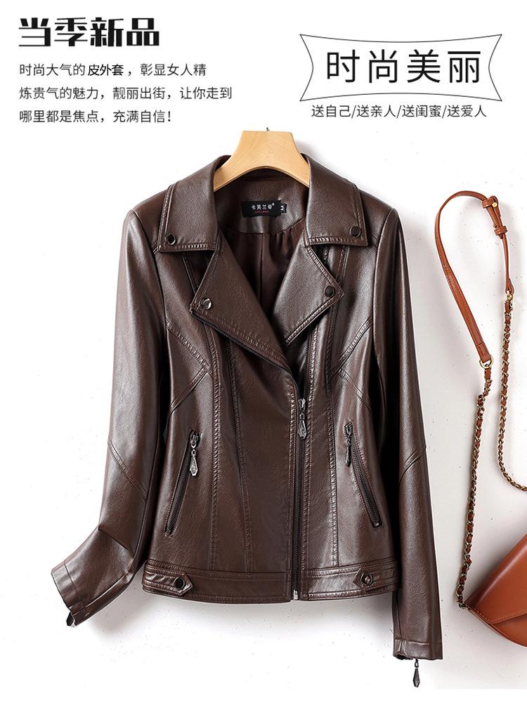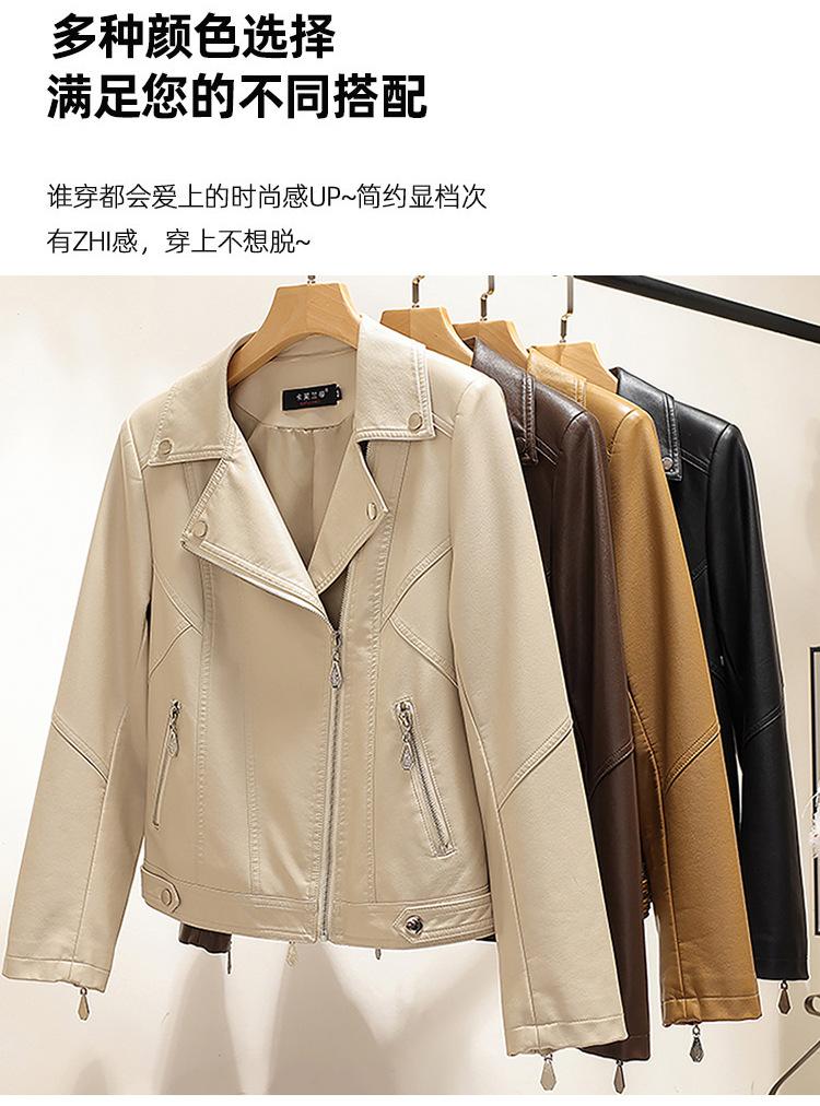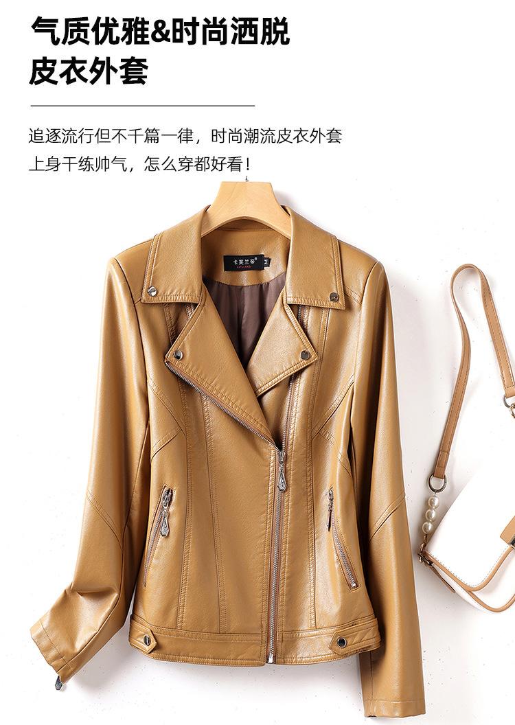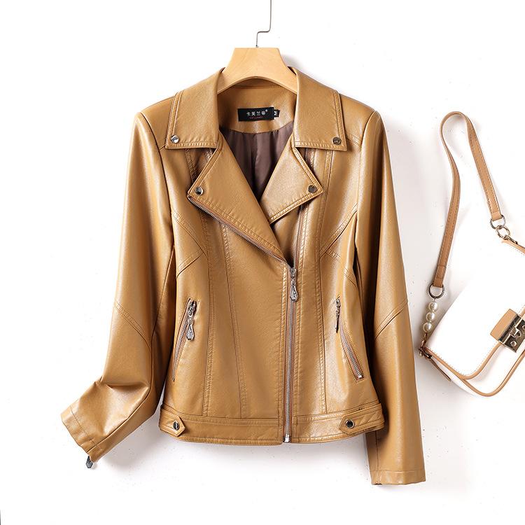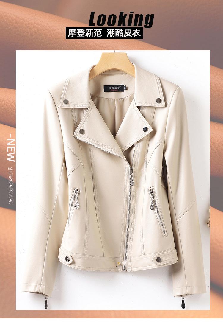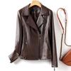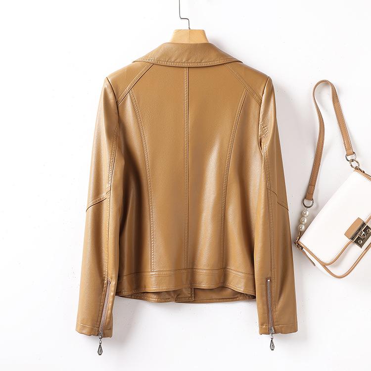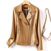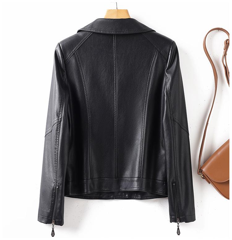 2025 Primavera y Otoño Nuevo Cuero Genuino Chaqueta de Cuero para Mujer Corta Ajustada Petite Chaqueta de Motocicleta Chaqueta de Piel de Oveja Abrigo Adelgazante