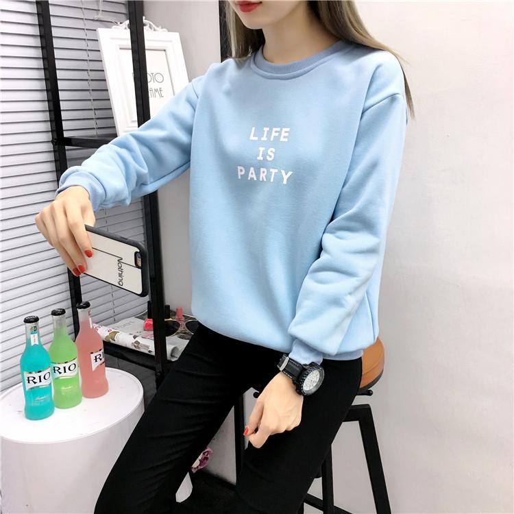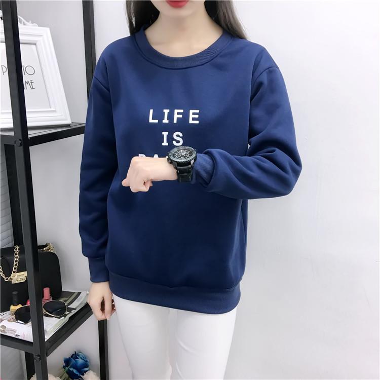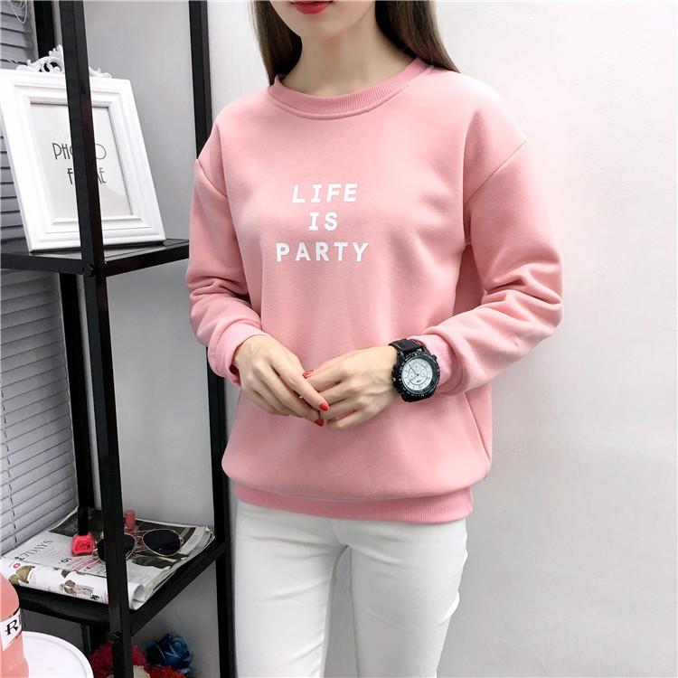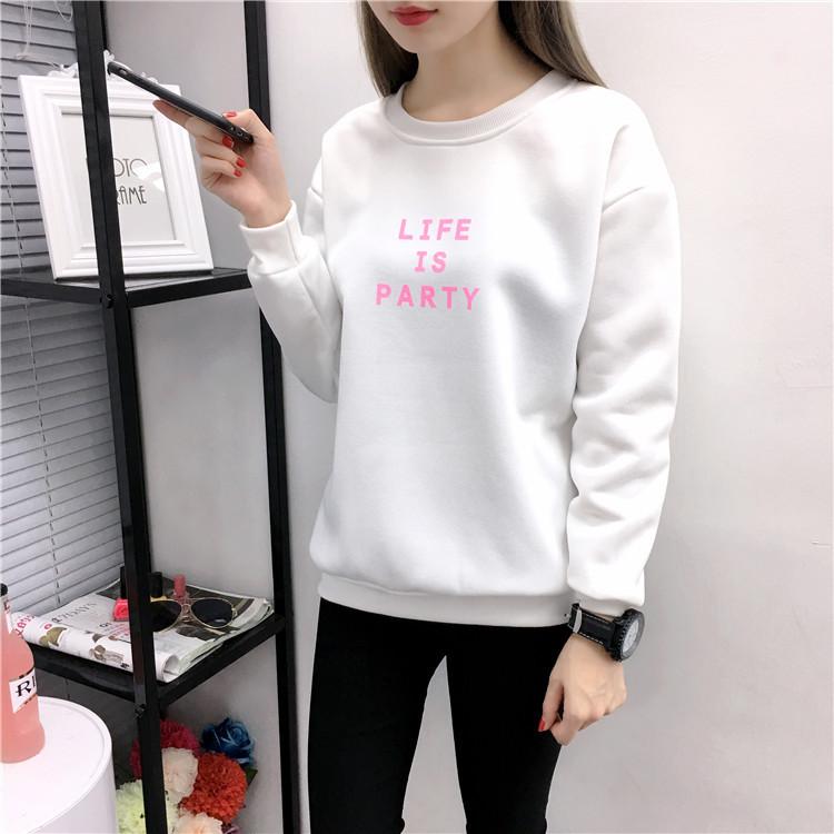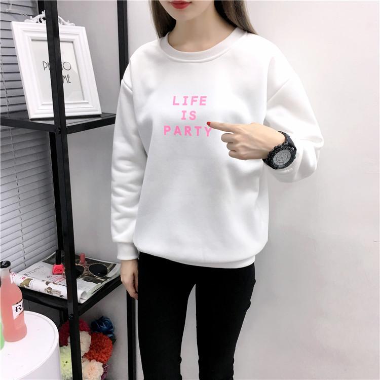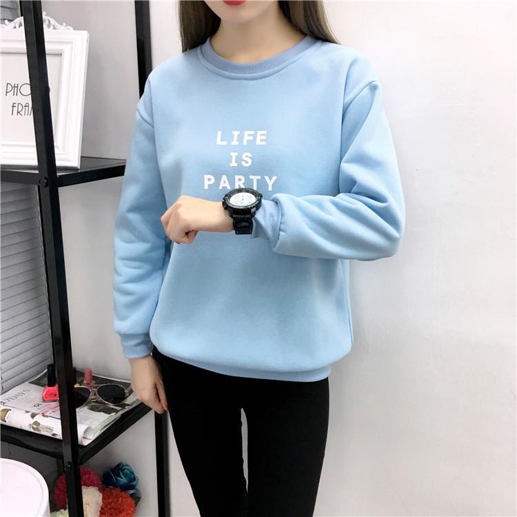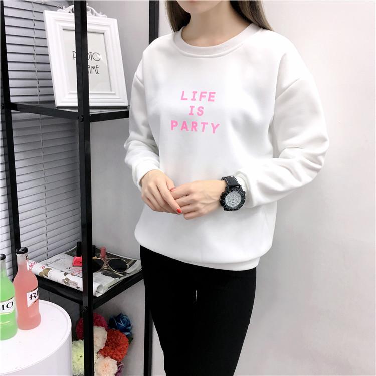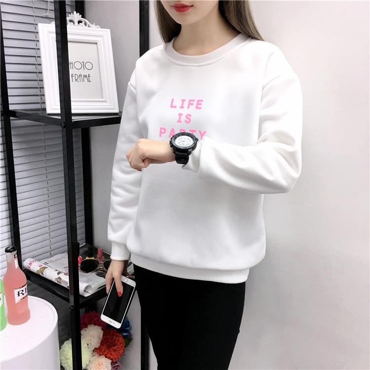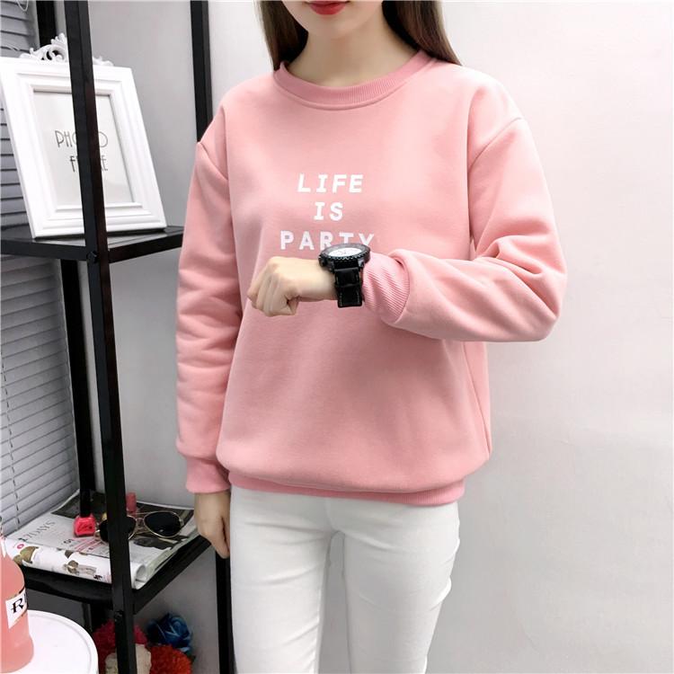 Ropa de Mujer al por Mayor 2025 Nuevo Estilo Coreano Otoño e Invierno Estampado de Letras Suelto Manga Larga con Forro Polar Grueso Sudadera de Estudiante para Mujer