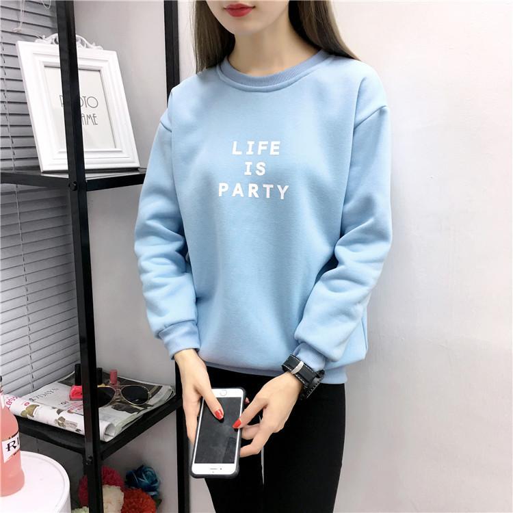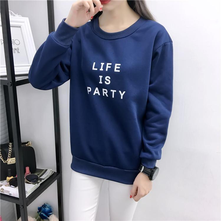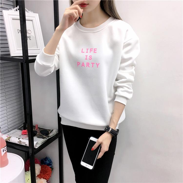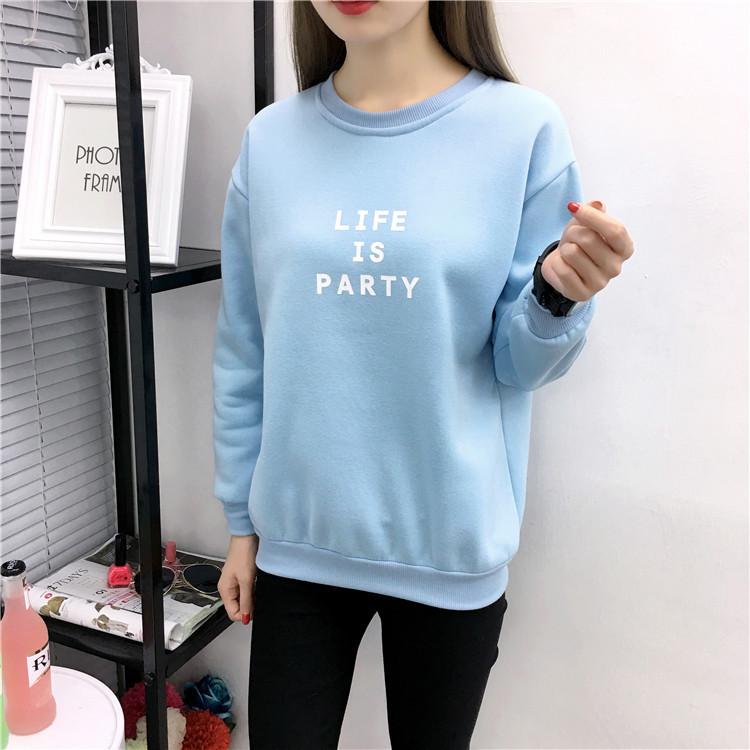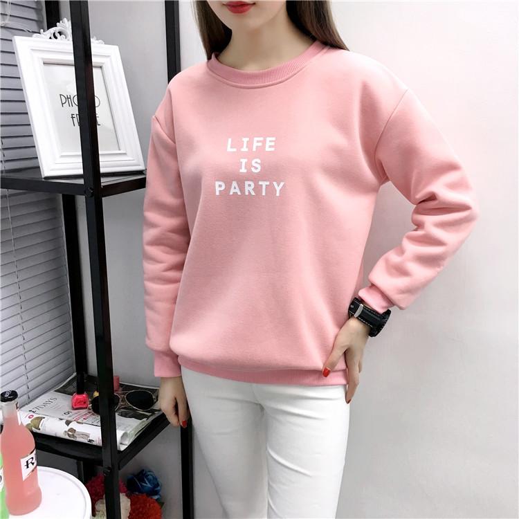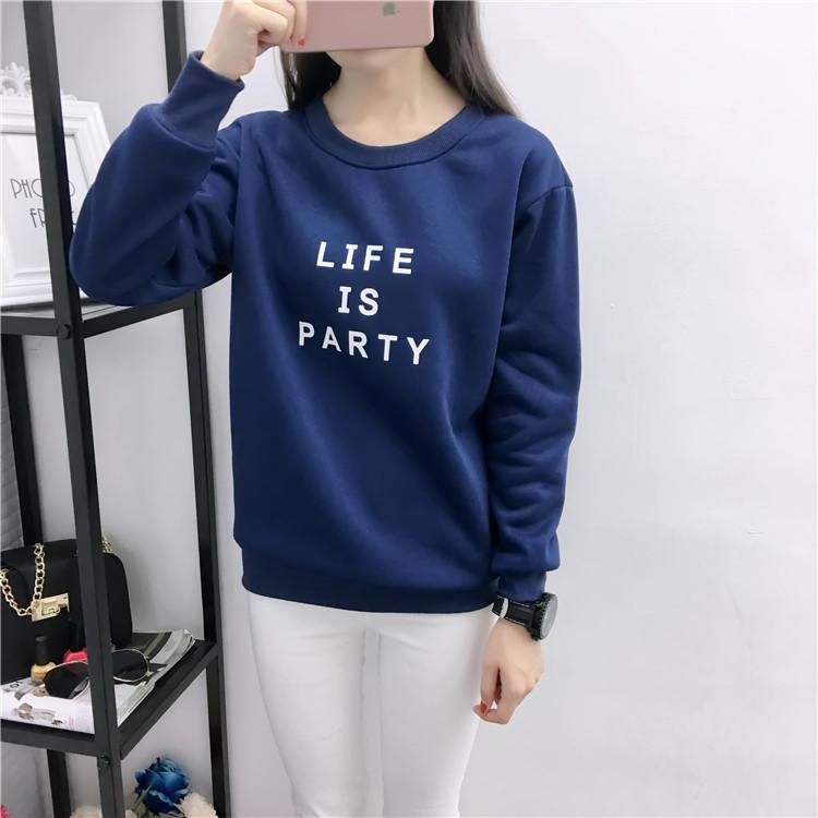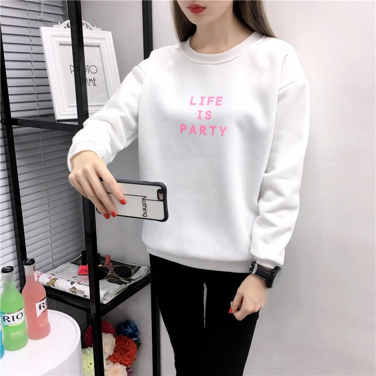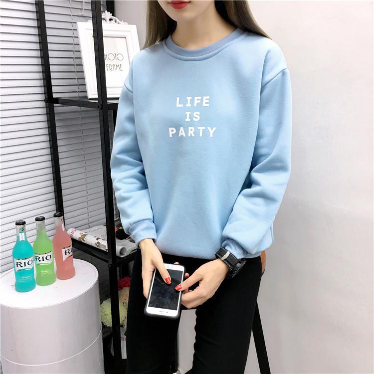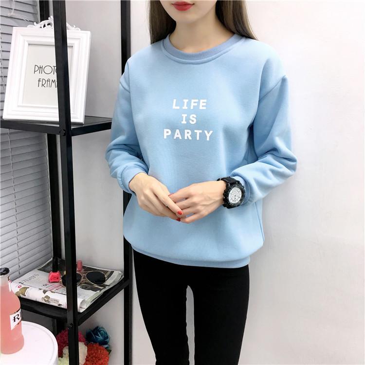 Ropa de Mujer al por Mayor 2025 Nuevo Estilo Coreano Otoño e Invierno Estampado de Letras Suelto Manga Larga con Forro Polar Grueso Sudadera de Estudiante para Mujer