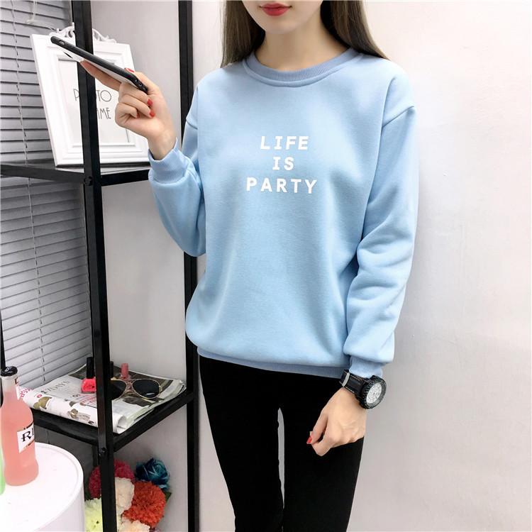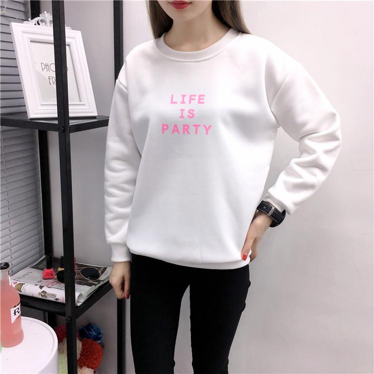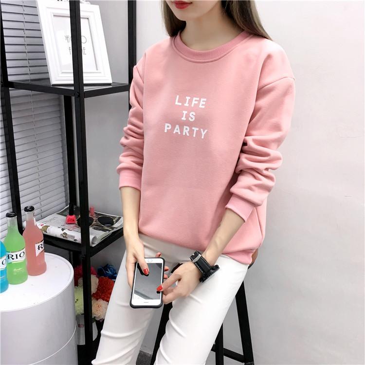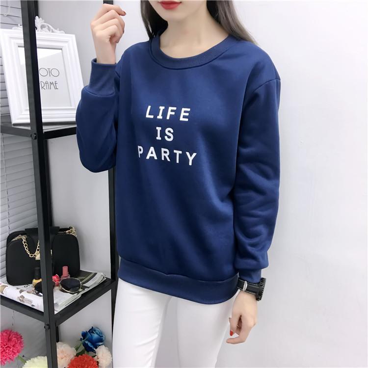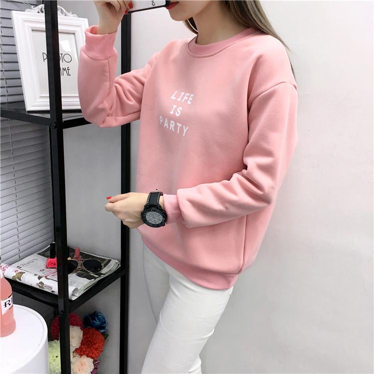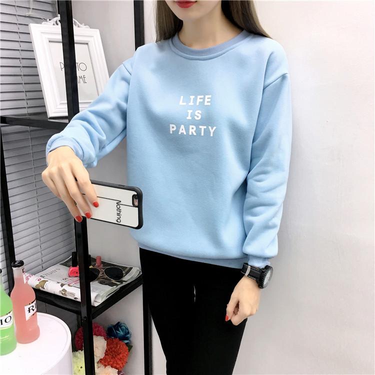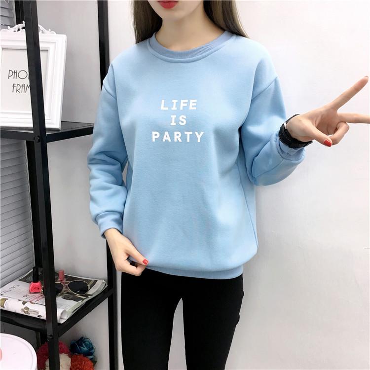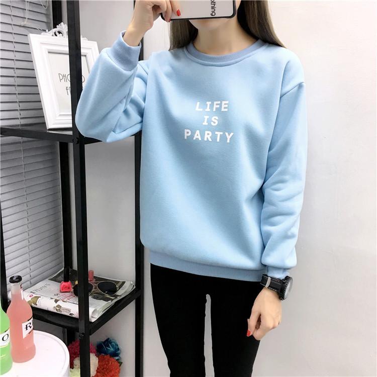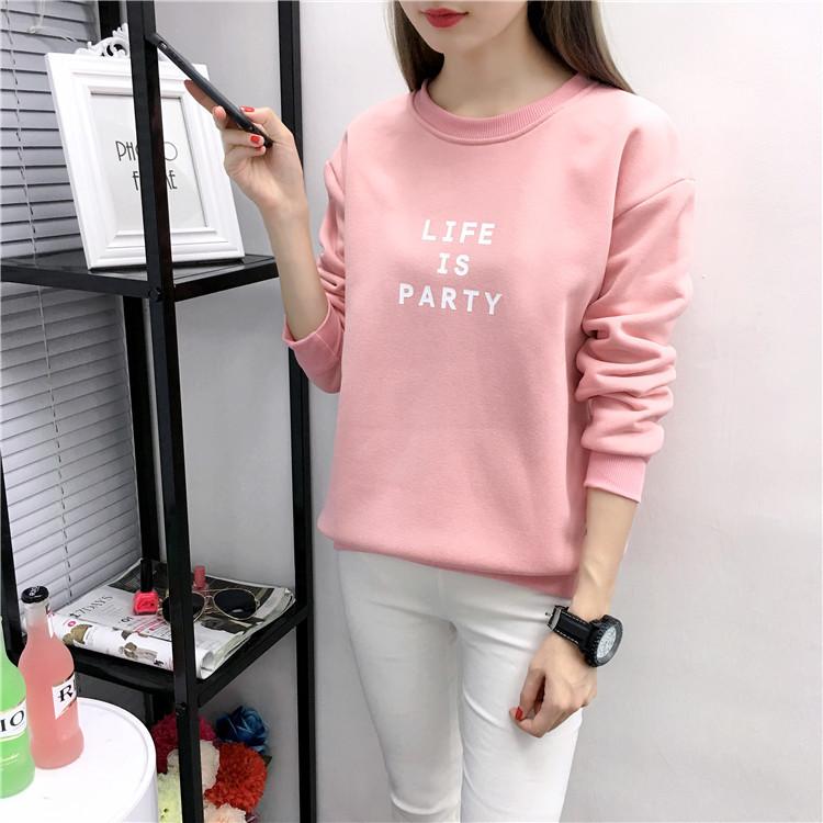 Ropa de Mujer al por Mayor 2025 Nuevo Estilo Coreano Otoño e Invierno Estampado de Letras Suelto Manga Larga con Forro Polar Grueso Sudadera de Estudiante para Mujer