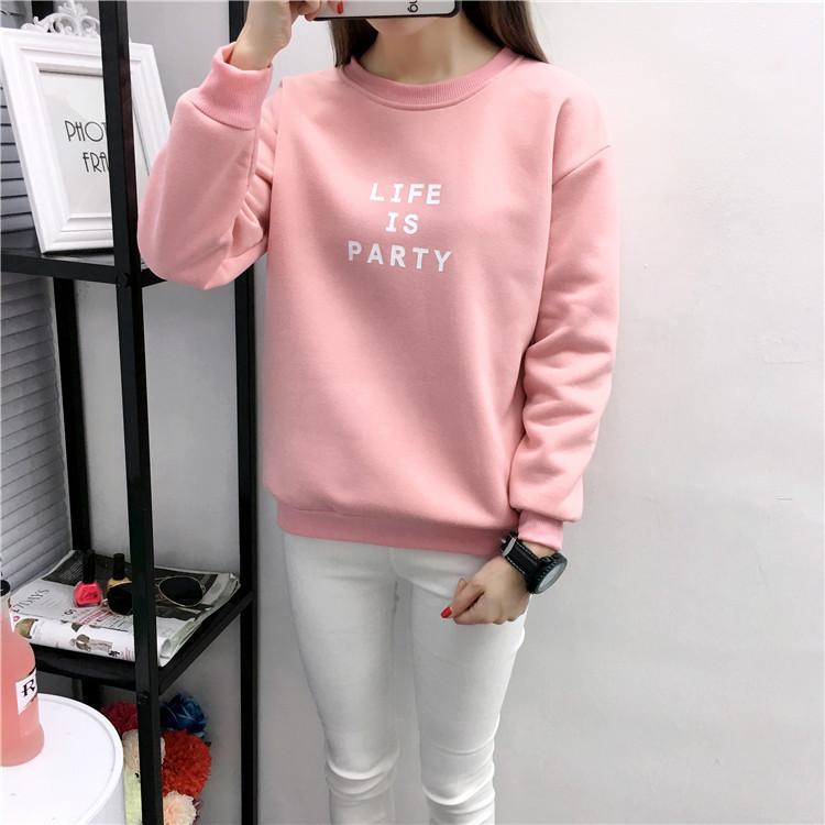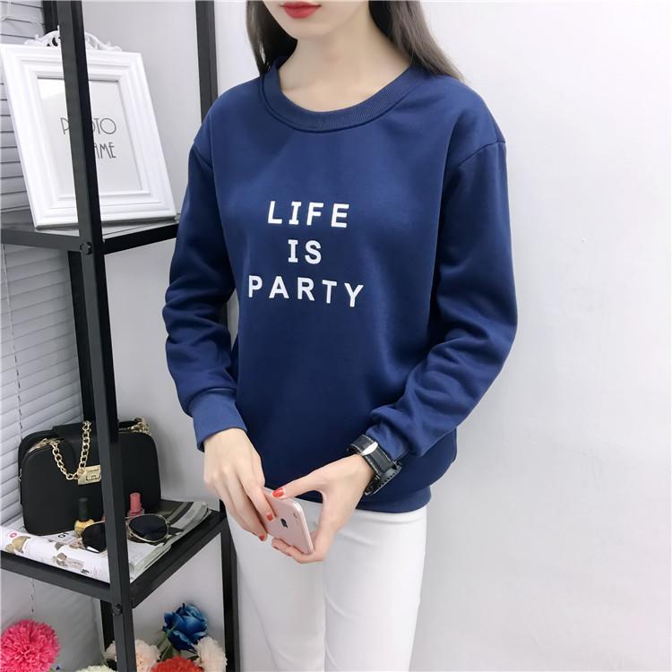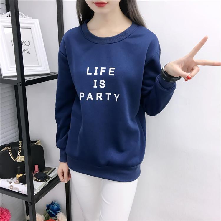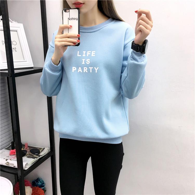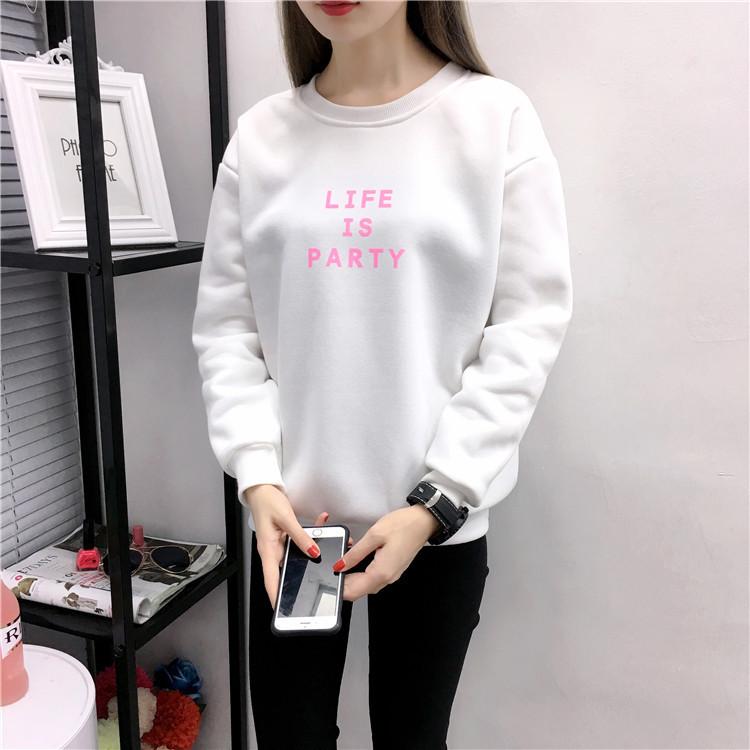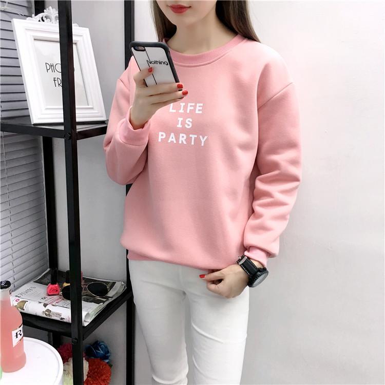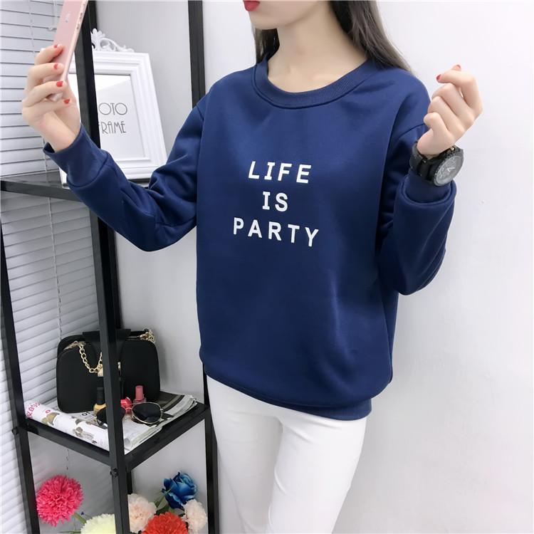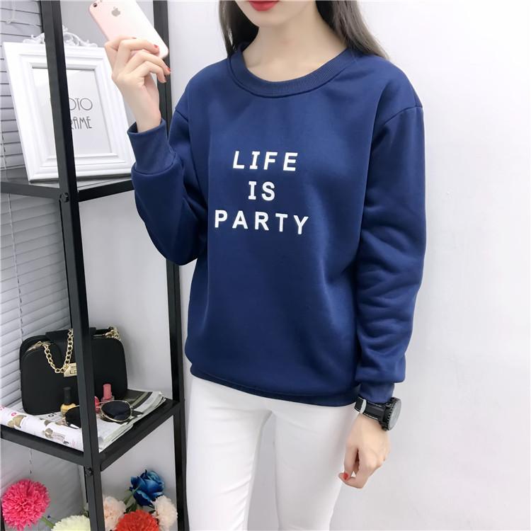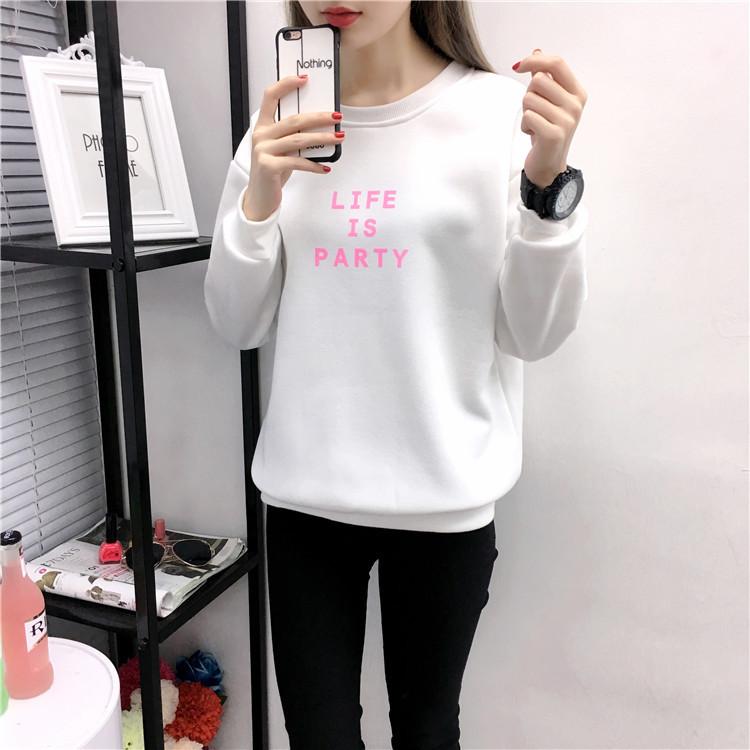 Ropa de Mujer al por Mayor 2025 Nuevo Estilo Coreano Otoño e Invierno Estampado de Letras Suelto Manga Larga con Forro Polar Grueso Sudadera de Estudiante para Mujer