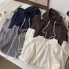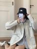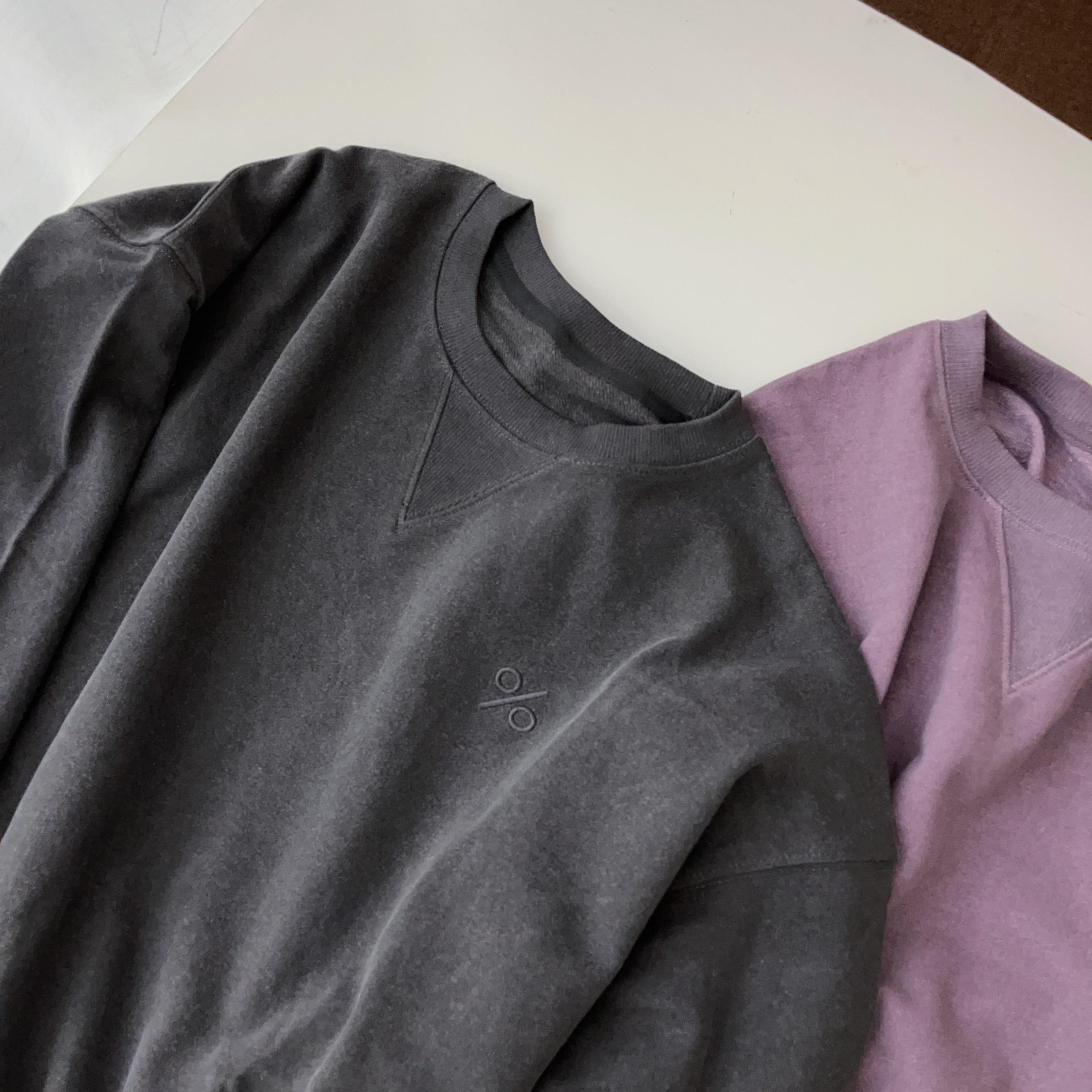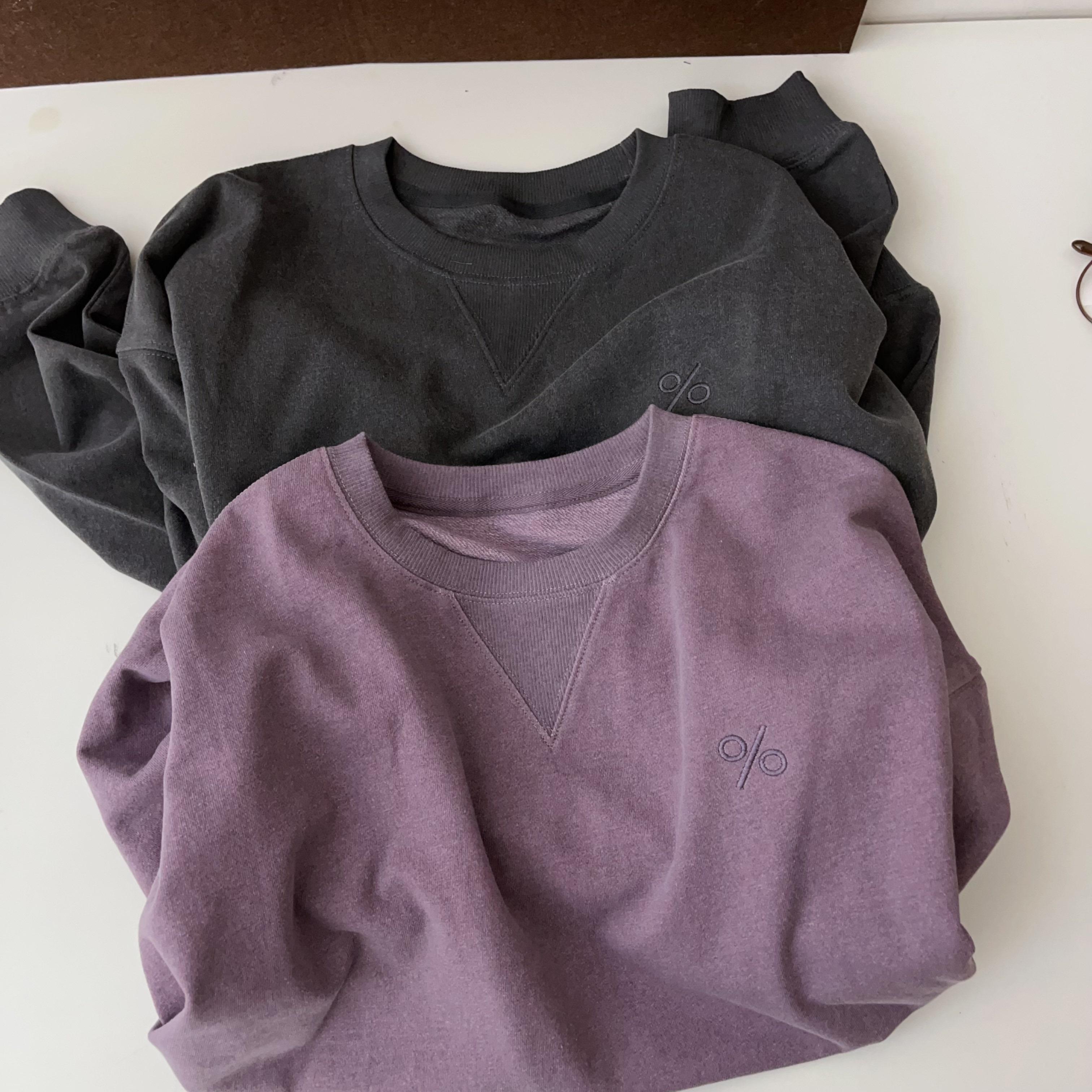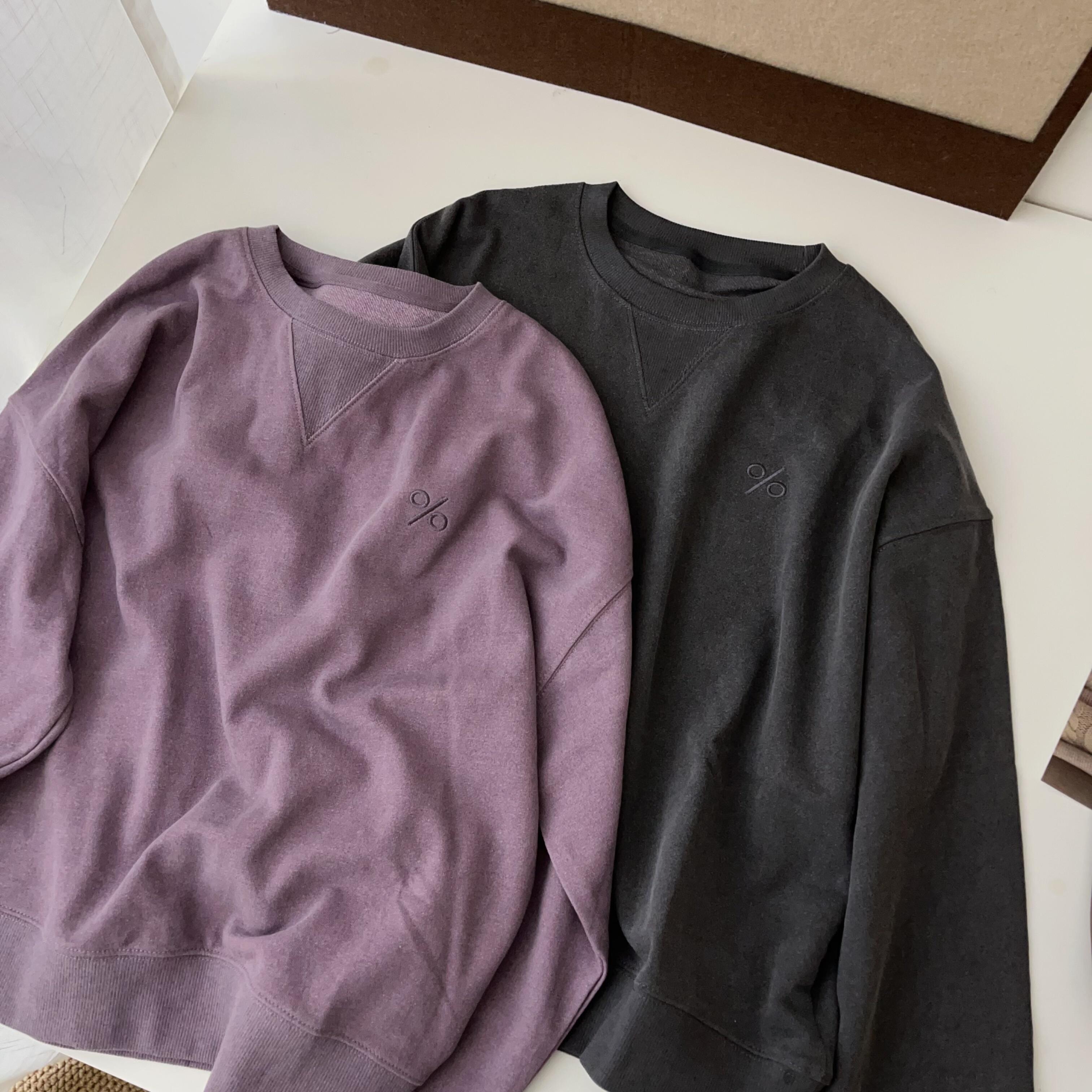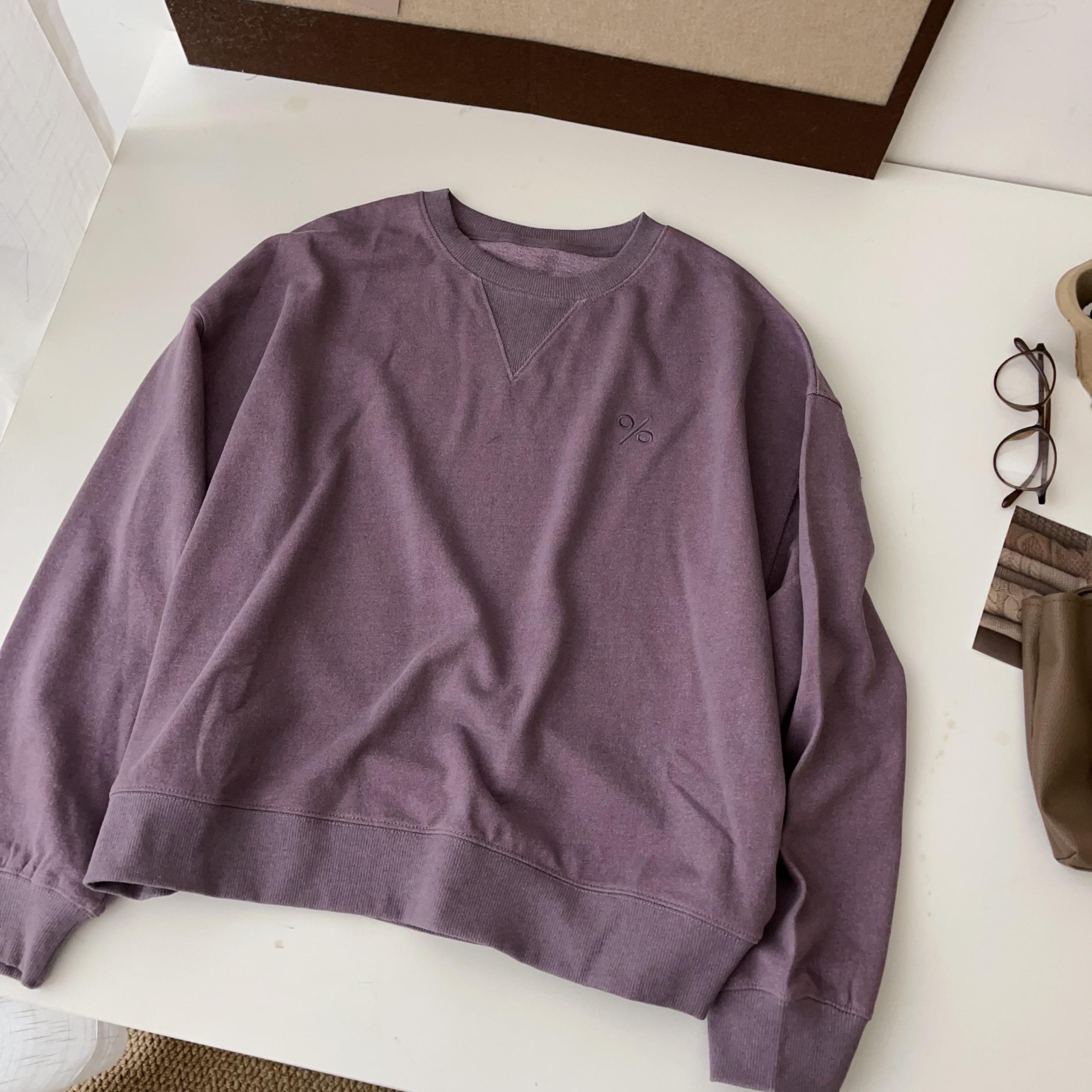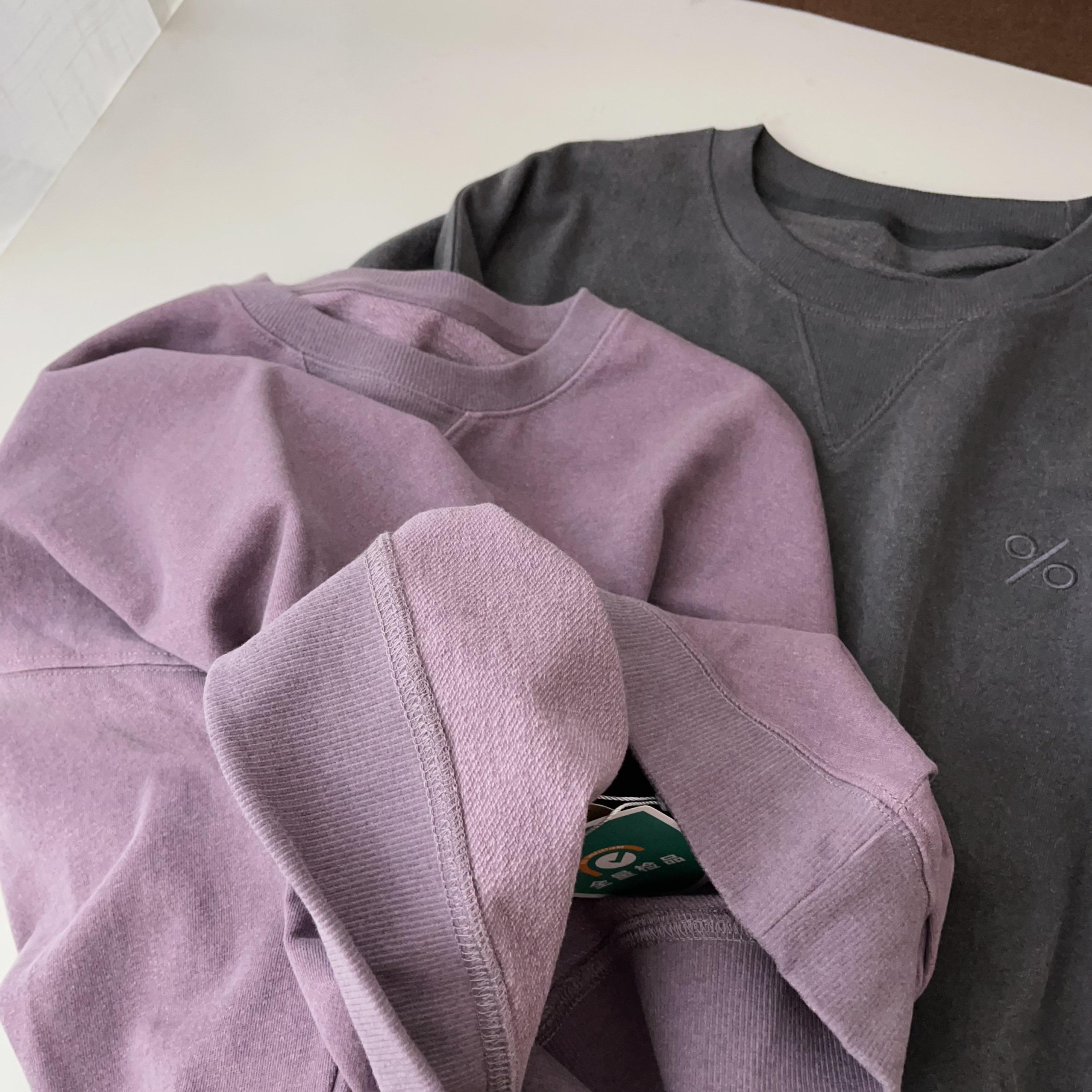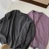 Sudadera de trabajo color púrpura ceniza lavado a la arena estilo coreano minimalista casual versátil cuello redondo para mujer holgada casual versátil top chaqueta para mujer