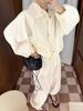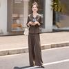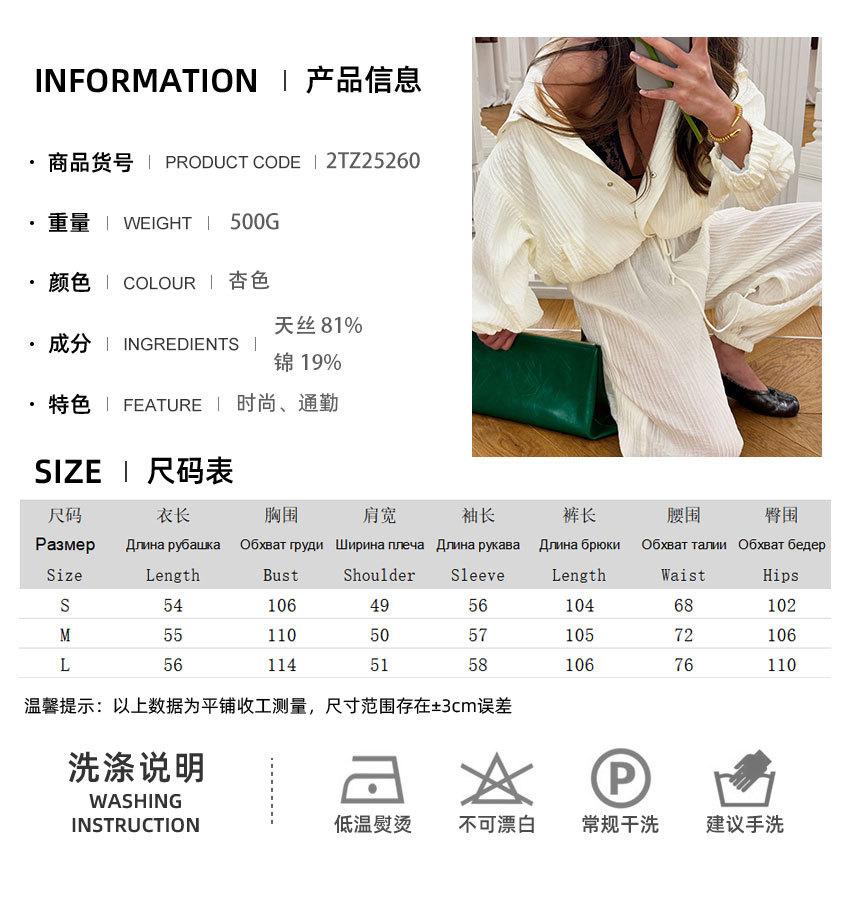 Conjunto de pantalón farol de manga larga con textura arrugada estilo ins coreano para mujer, diseño con sentido, temperamento, moda 2025, nuevo transfronterizo de otoño e invierno