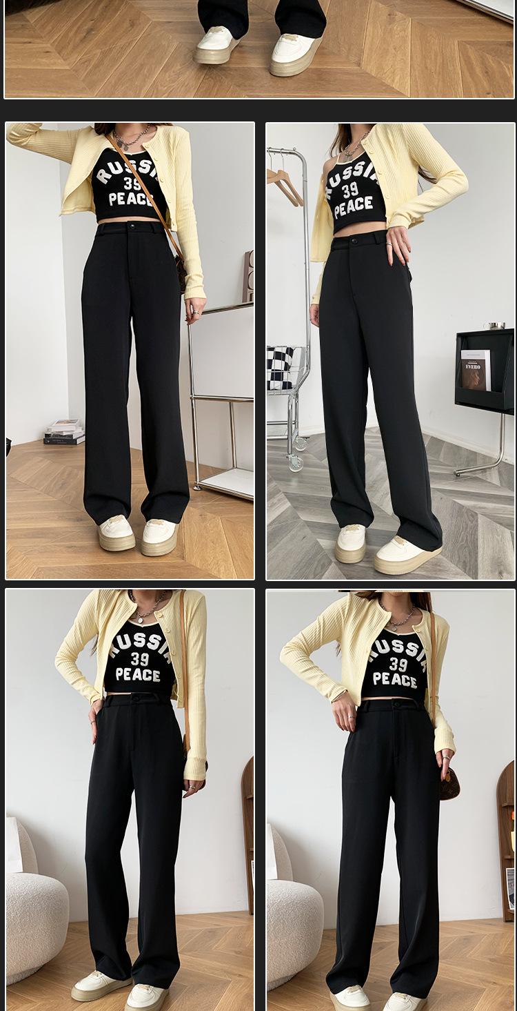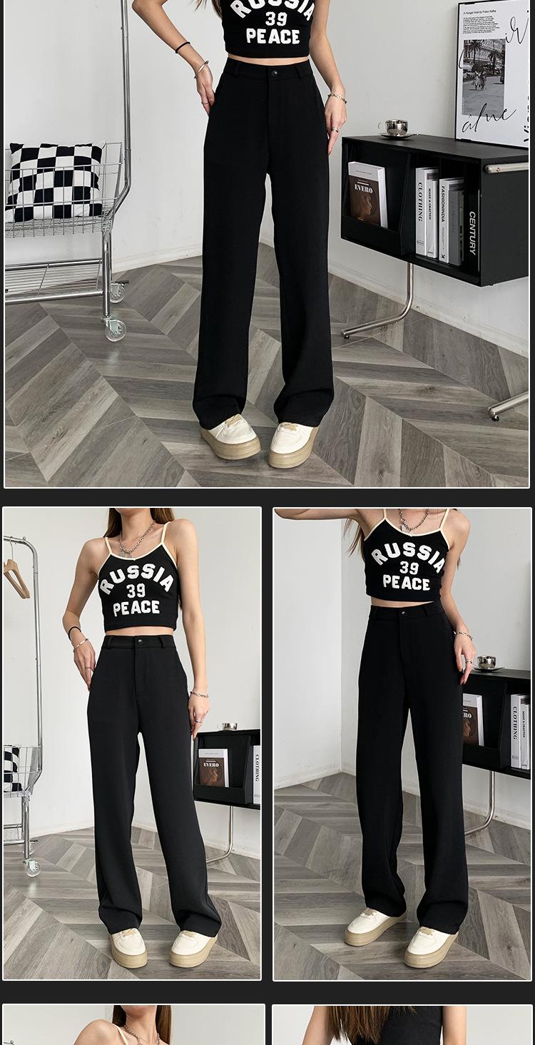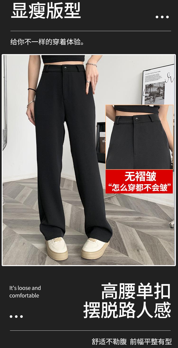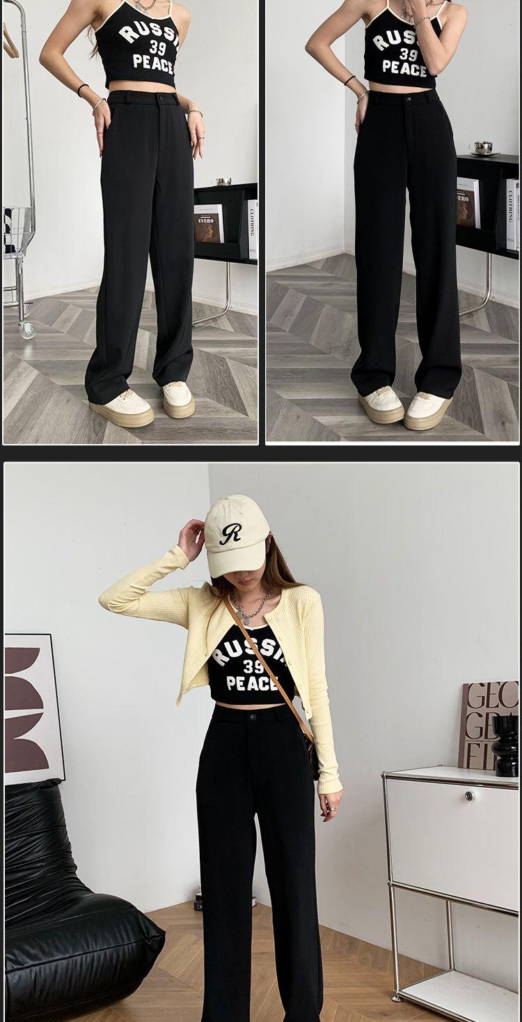 Pantalones de Traje para Mujer Verano Nuevo Pierna Recta Ajustado Verano Cintura Alta Caída Pierna Ancha Adelgazantes Negro Largo hasta el Piso Pantalones Casuales