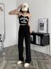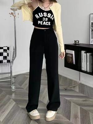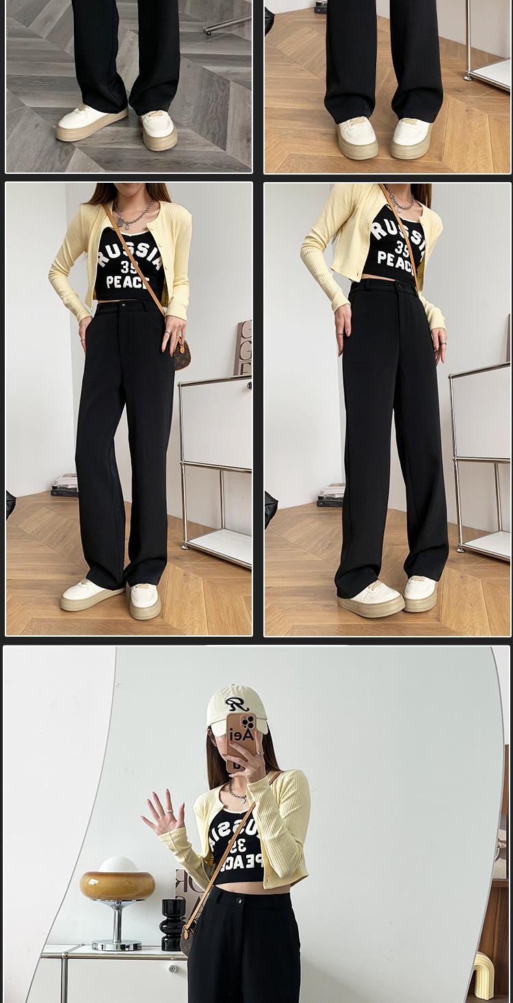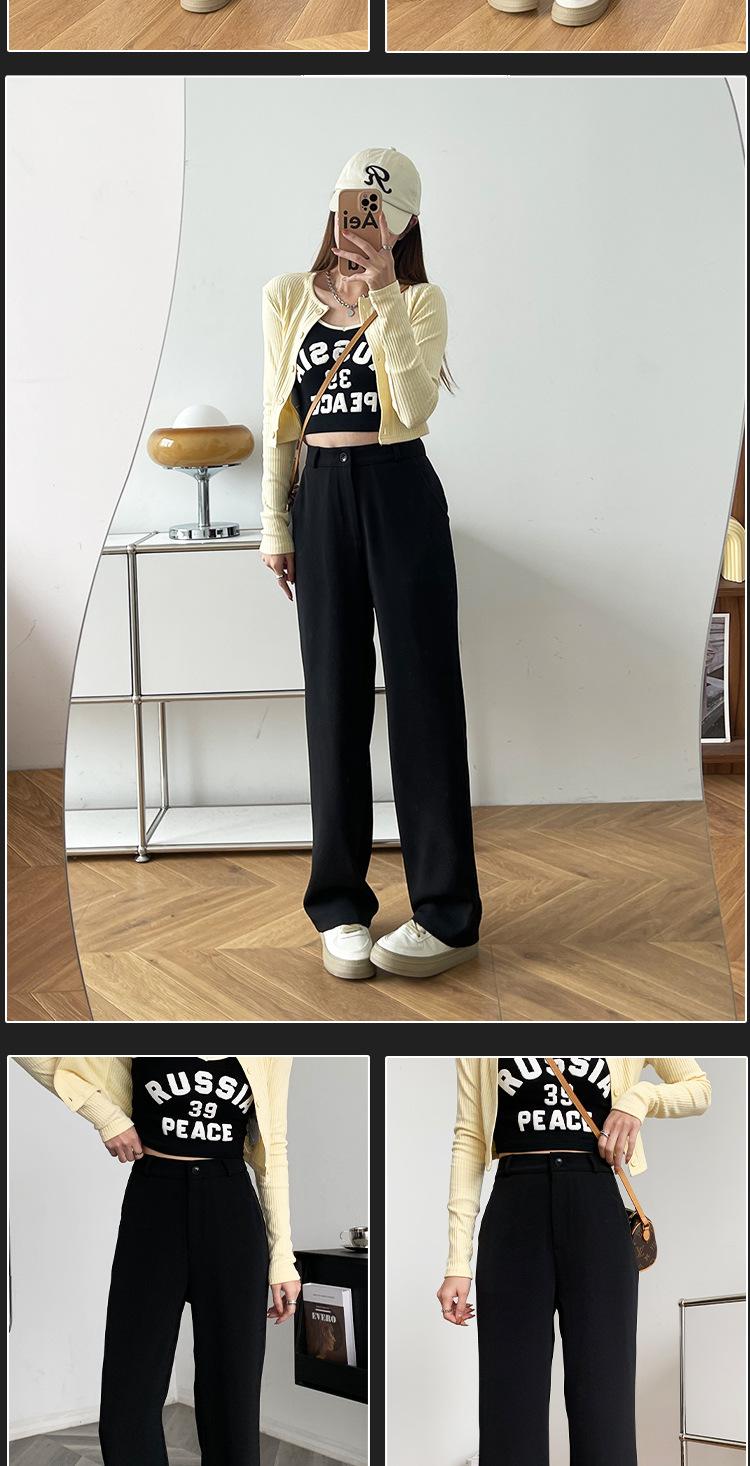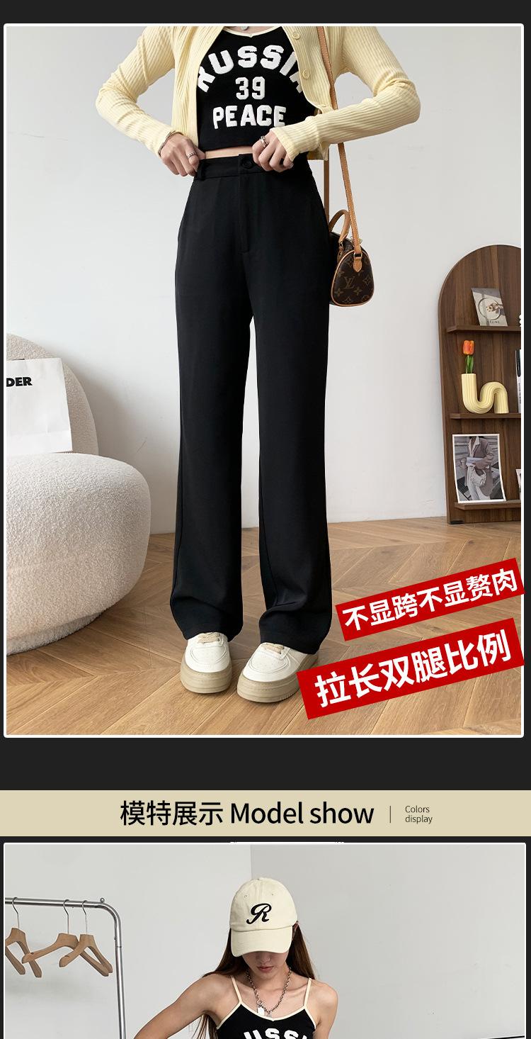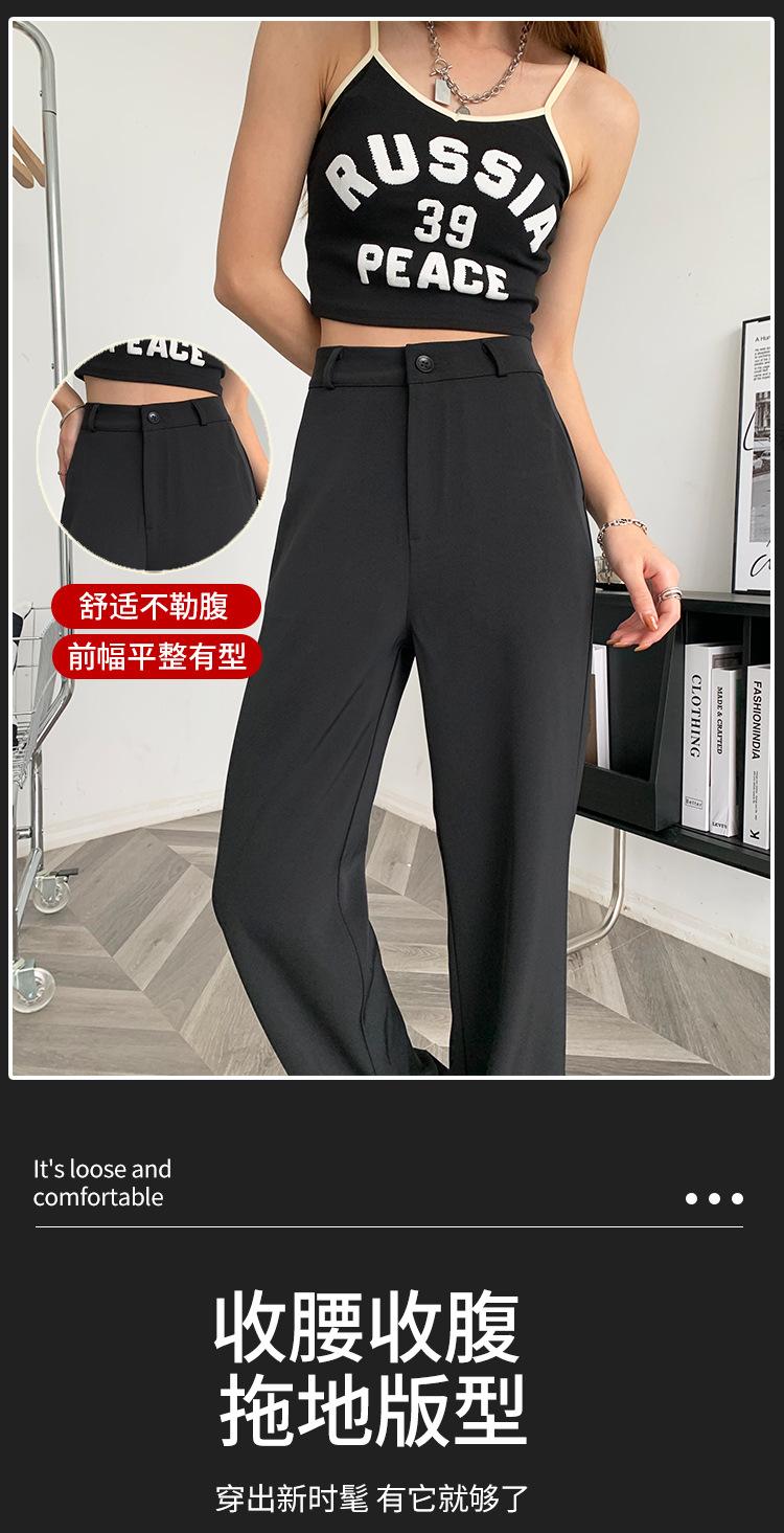 Pantalones de Traje para Mujer Verano Nuevo Pierna Recta Ajustado Verano Cintura Alta Caída Pierna Ancha Adelgazantes Negro Largo hasta el Piso Pantalones Casuales